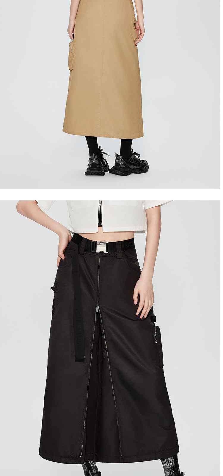 春装 休闲机能风中长款降落伞工装半身裙女 323535