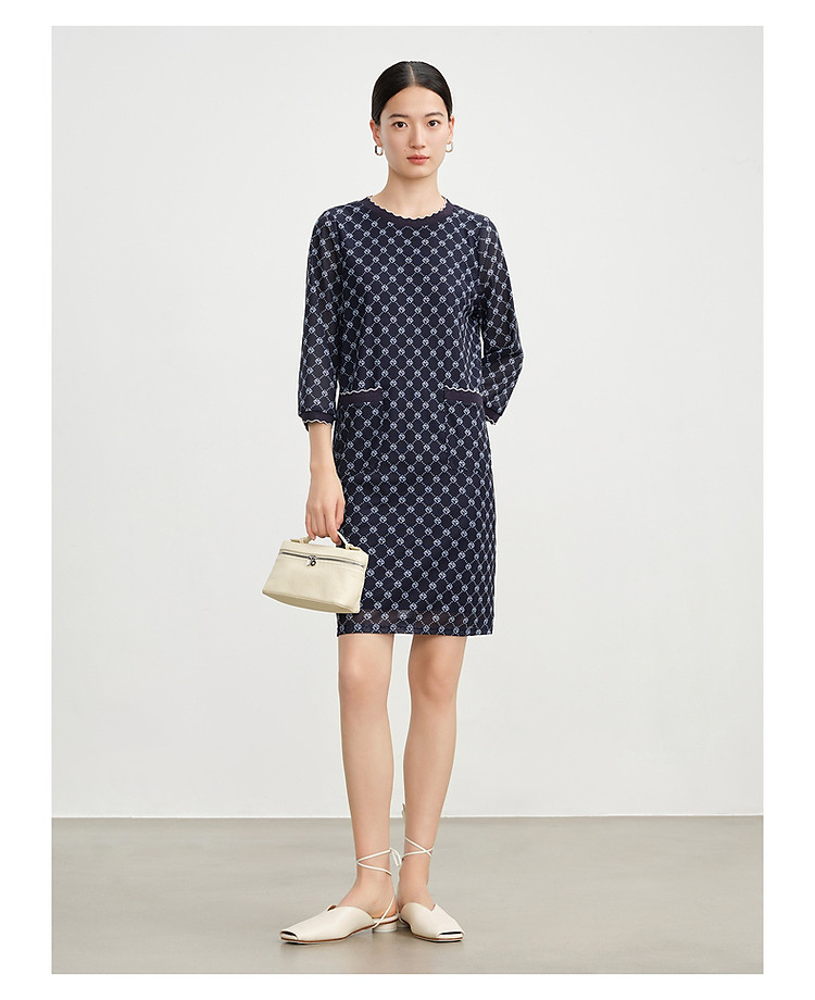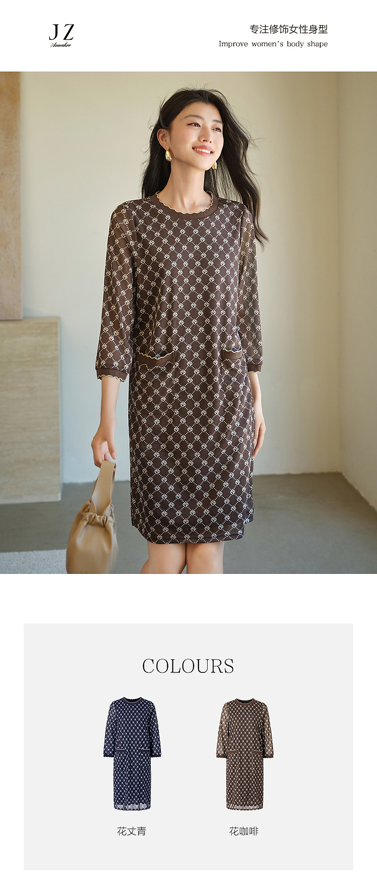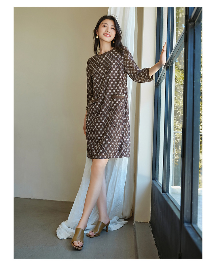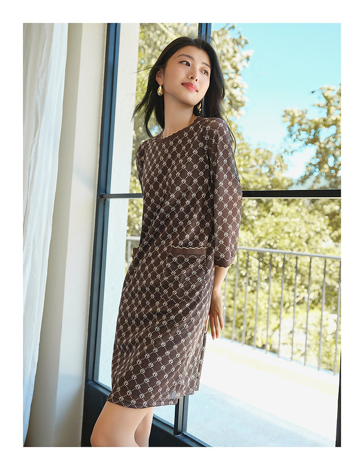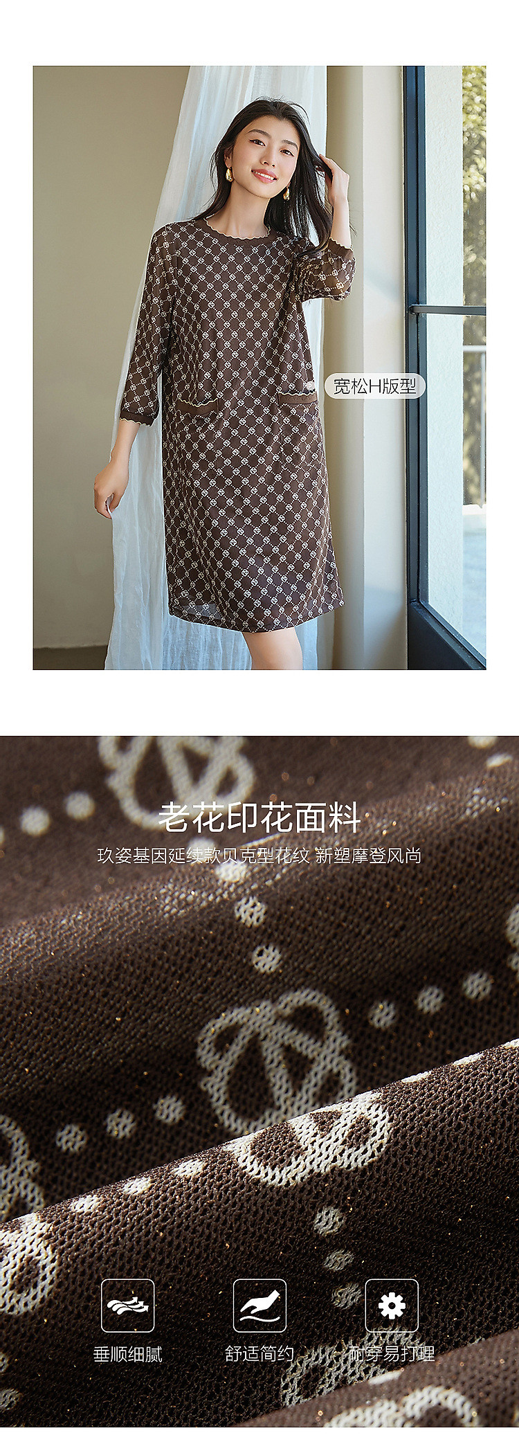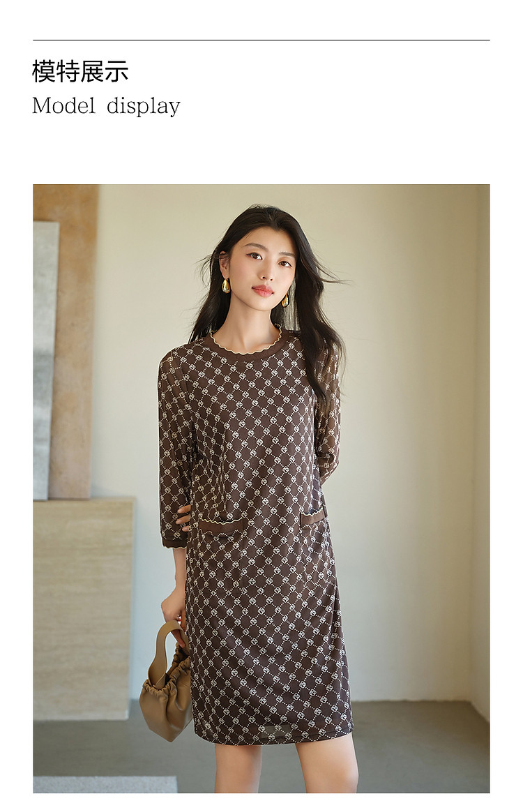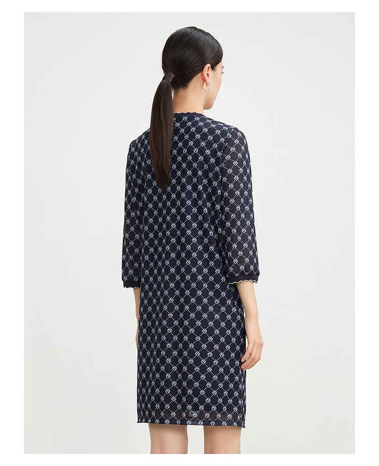 商品名称:玖姿旗下安娜蔻系列经典老花摩登印花直筒连衣裙女春季 330188