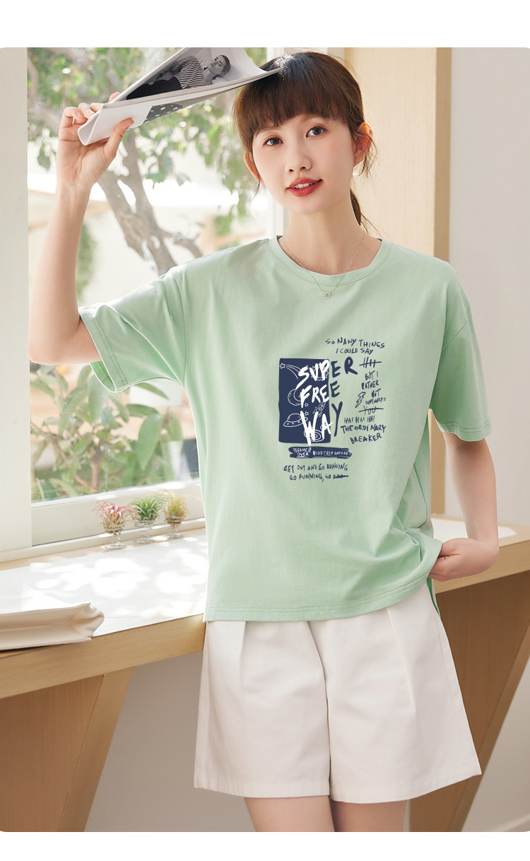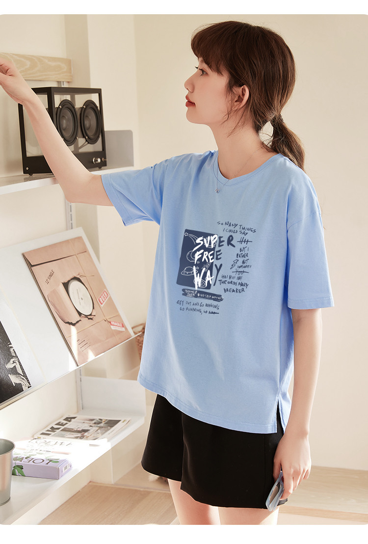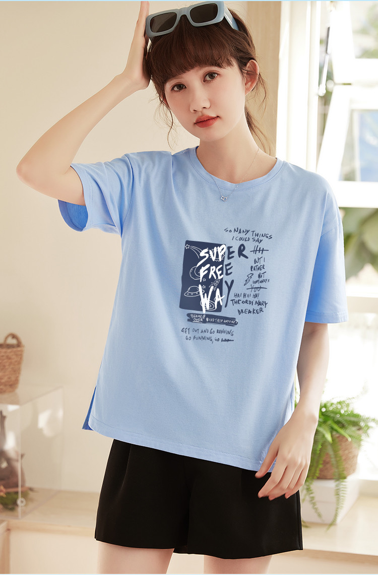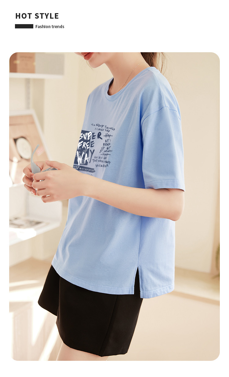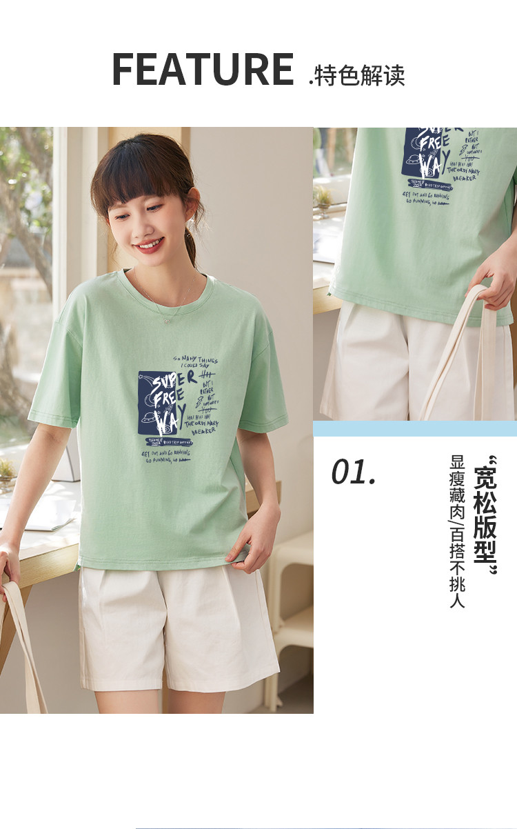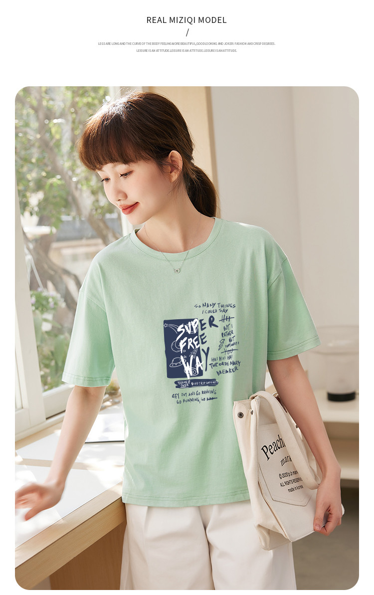 商品名称:米子旗夏季款圆领印花大码T恤女宽松休闲短袖上衣 808026