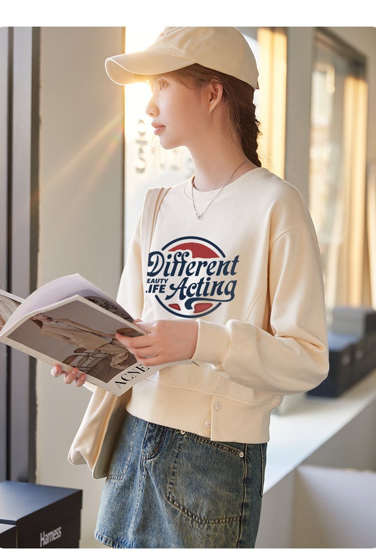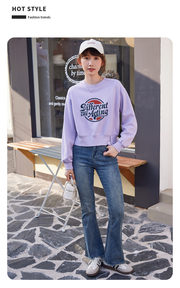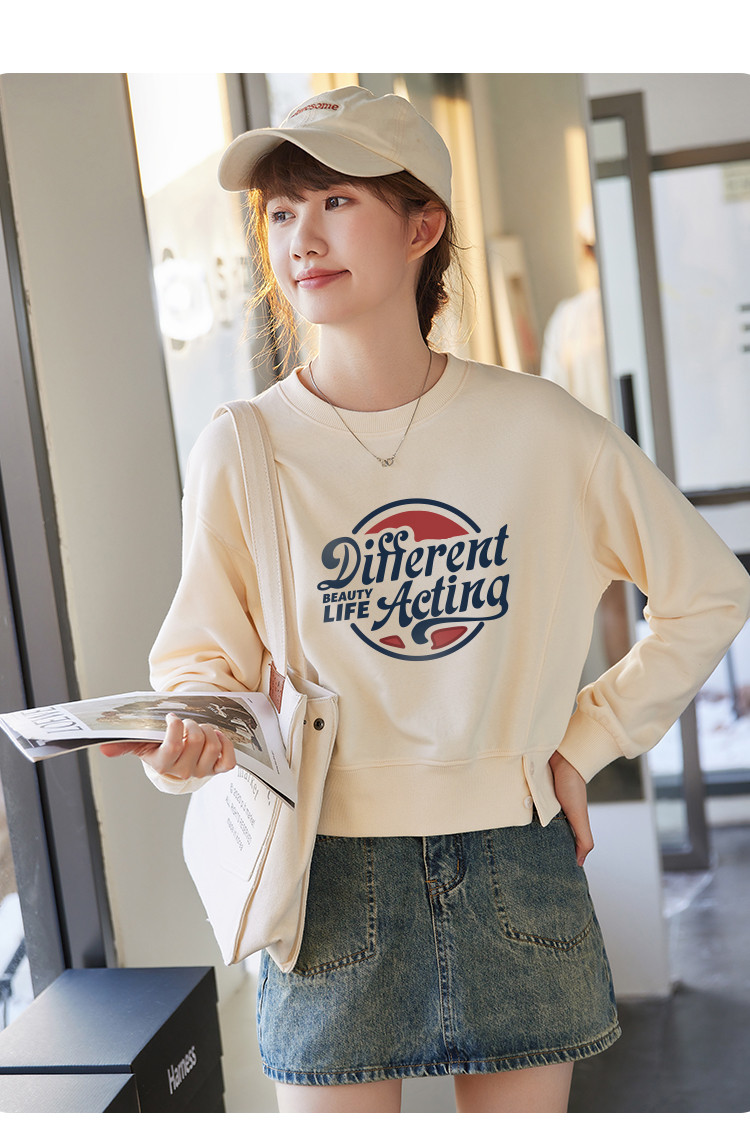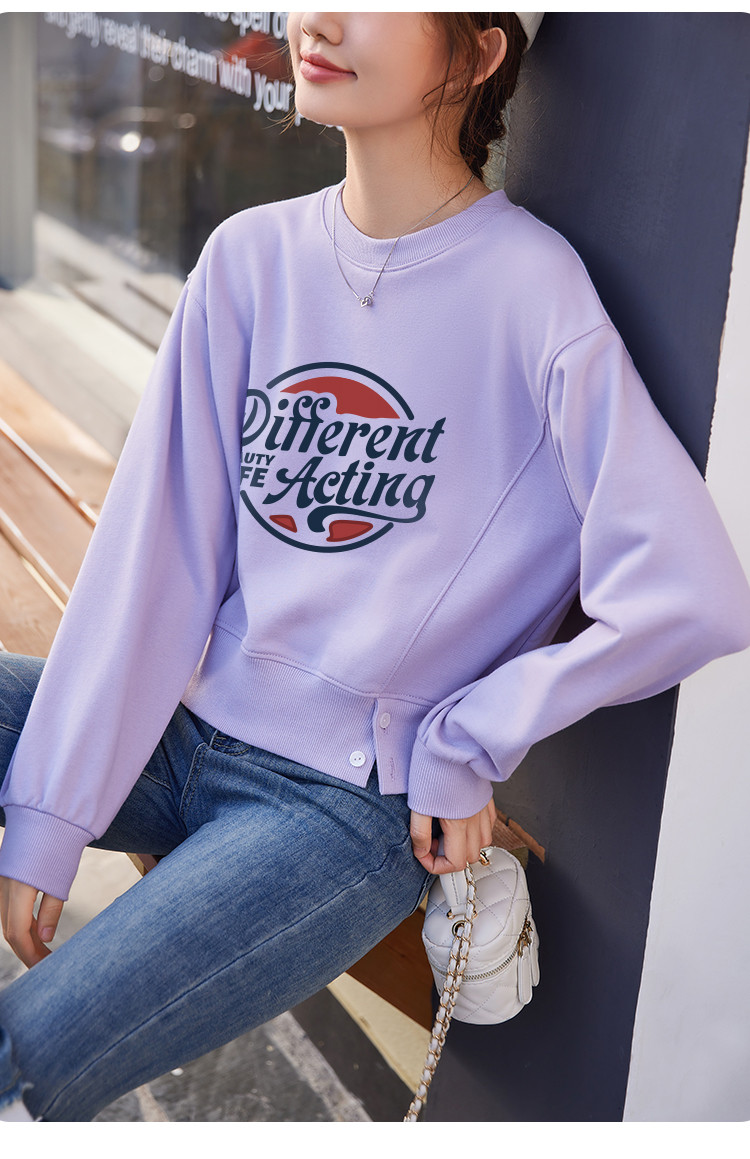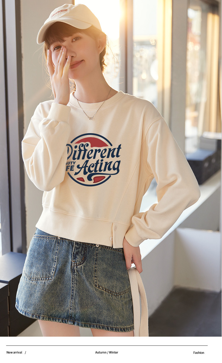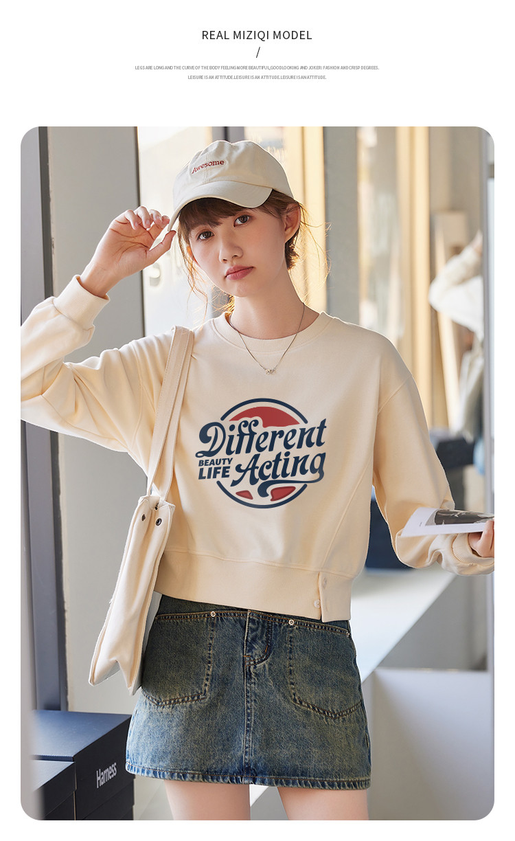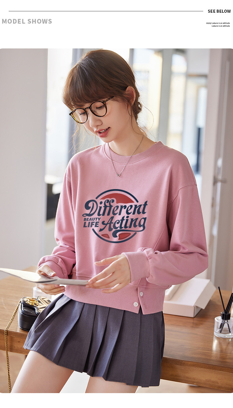 商品名称:米子旗春秋季款创意印花卫衣女短款宽松长袖上衣 949274