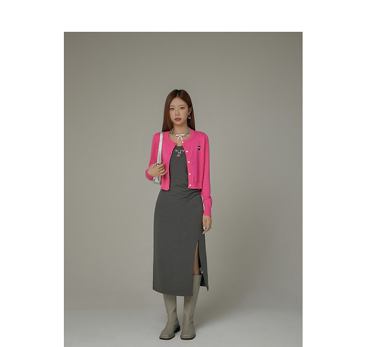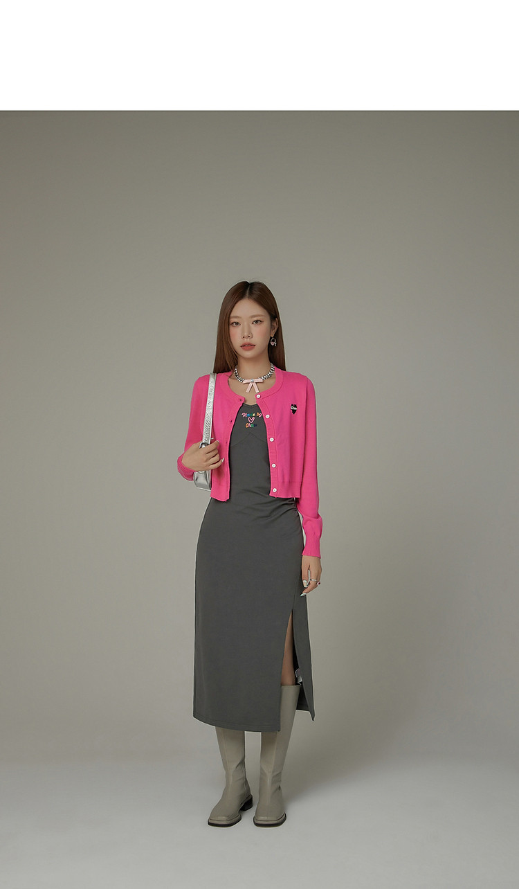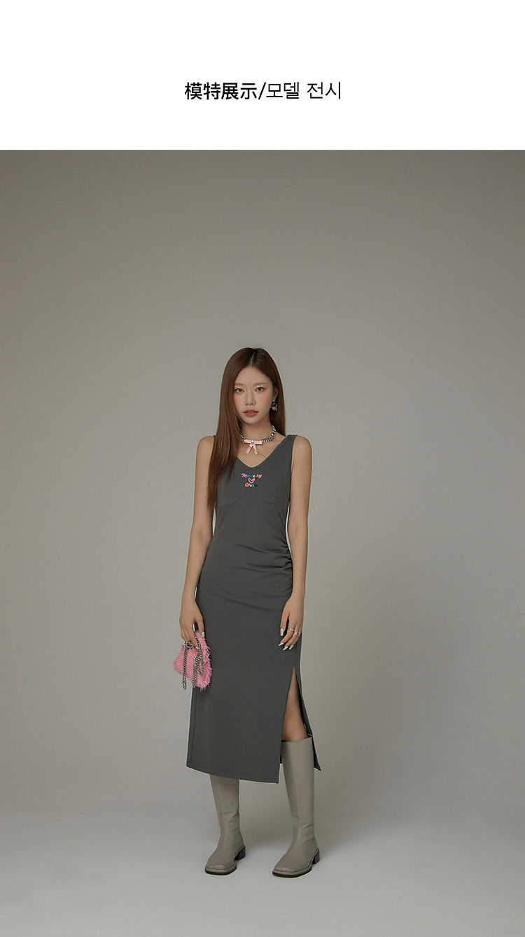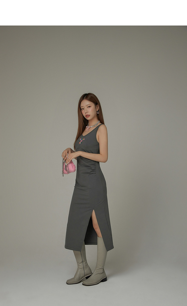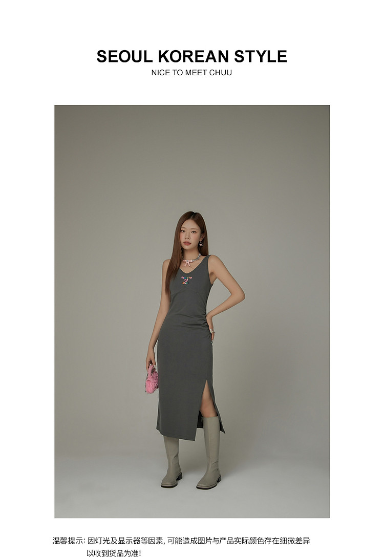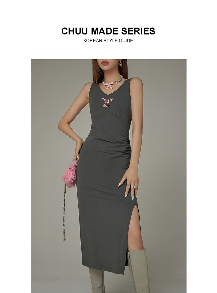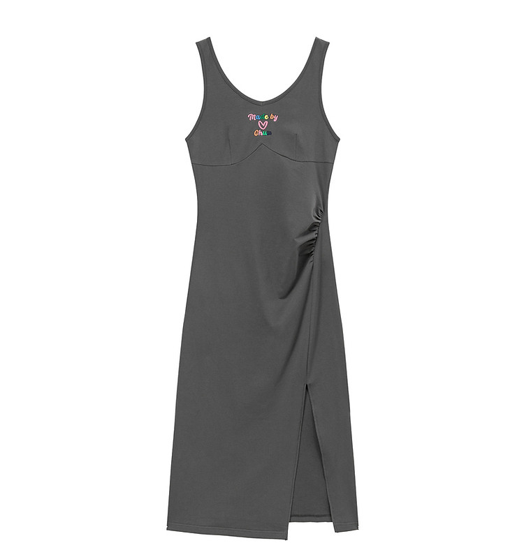 背心连衣裙女春秋字母刺绣褶皱开叉包臀中长裙 353171