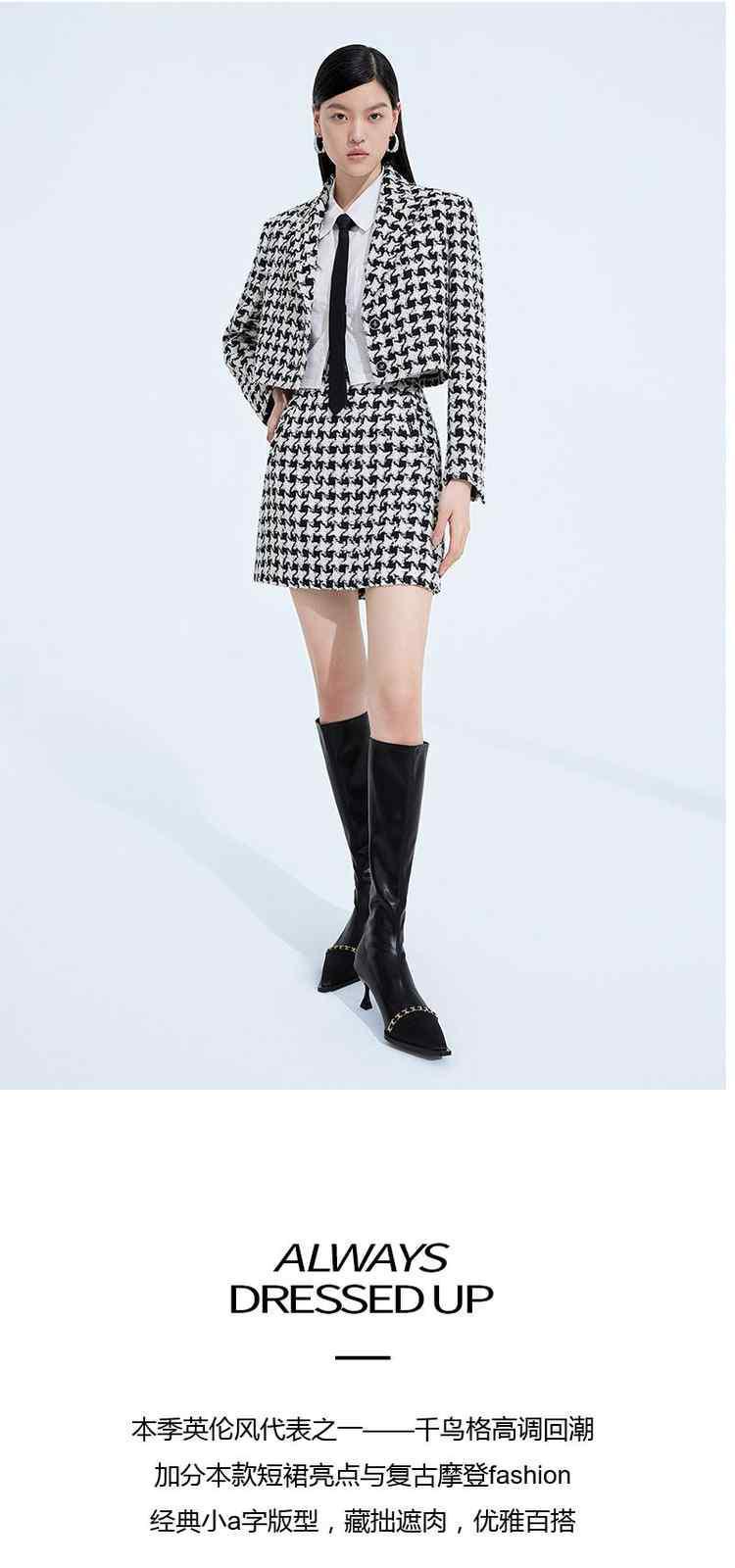 黑标系列 春装千鸟格小香风a字短裙半身裙 286671
