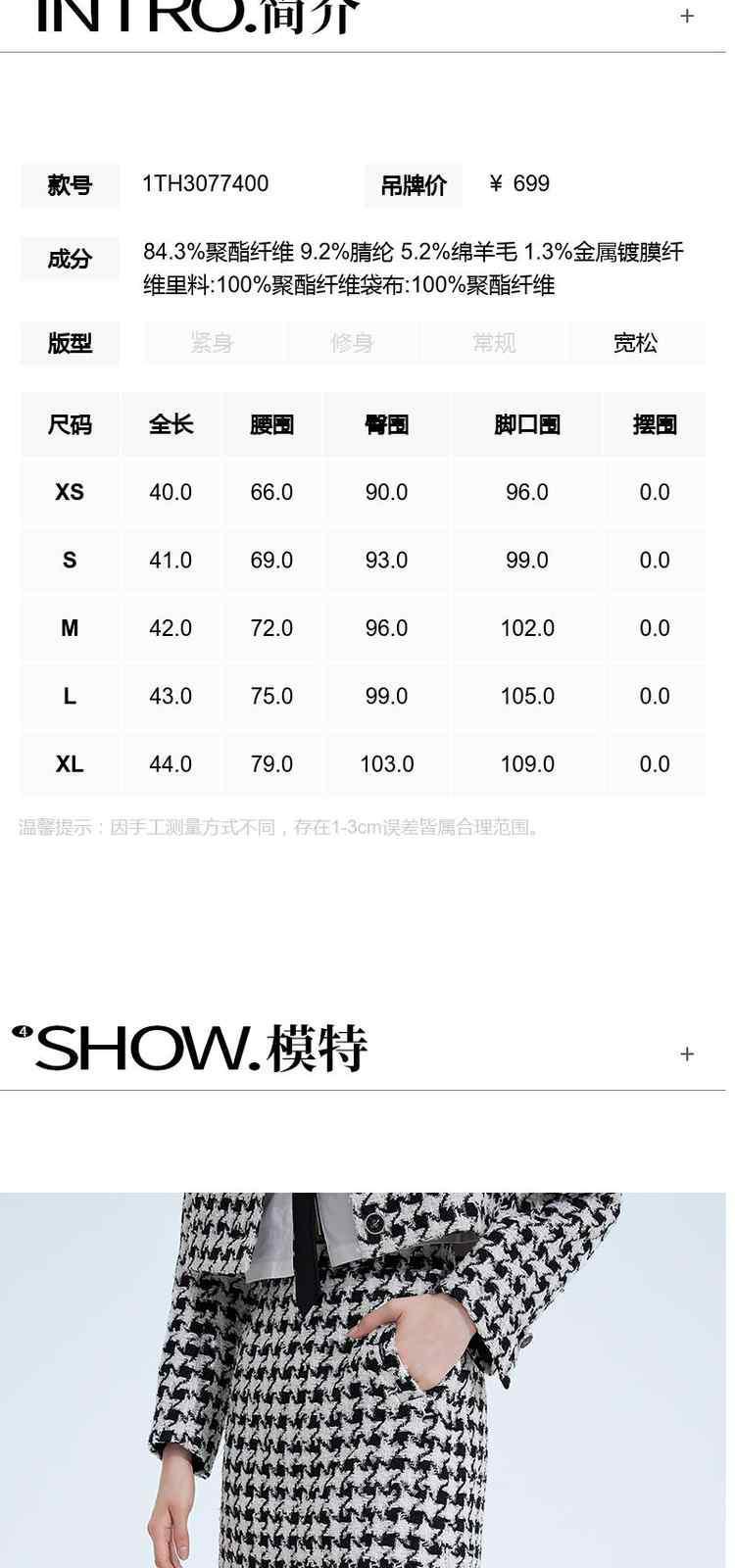 商品名称:黑标系列 春装千鸟格小香风a字短裙半身裙 286671
