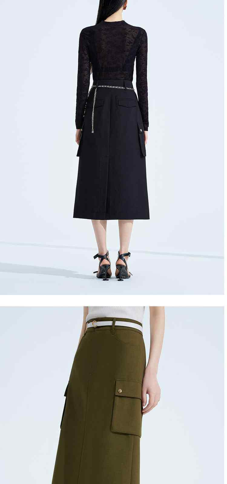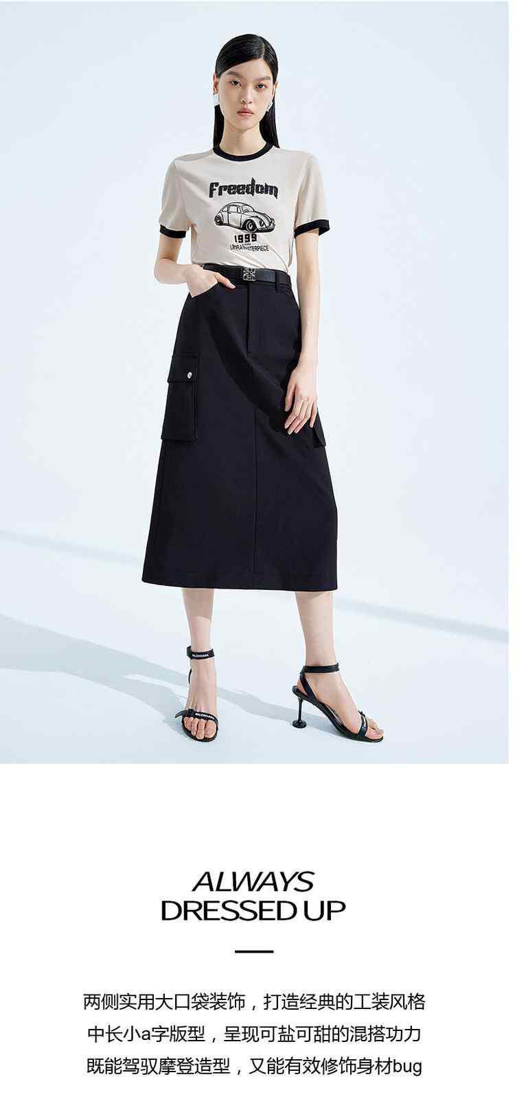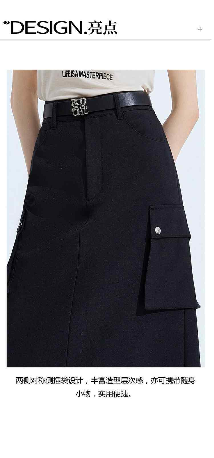 黑标系列春装 中长款休闲a字工装风半身裙 039951