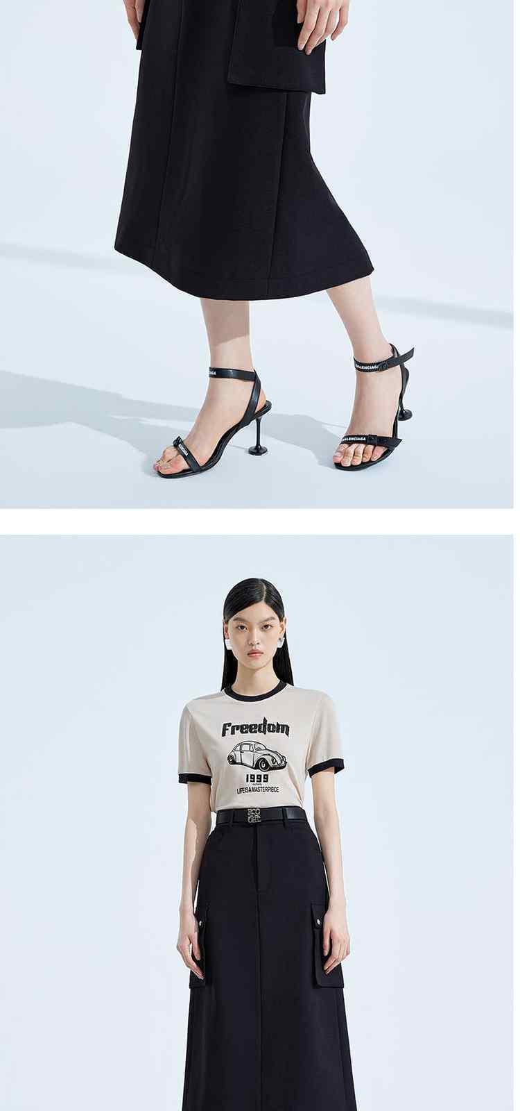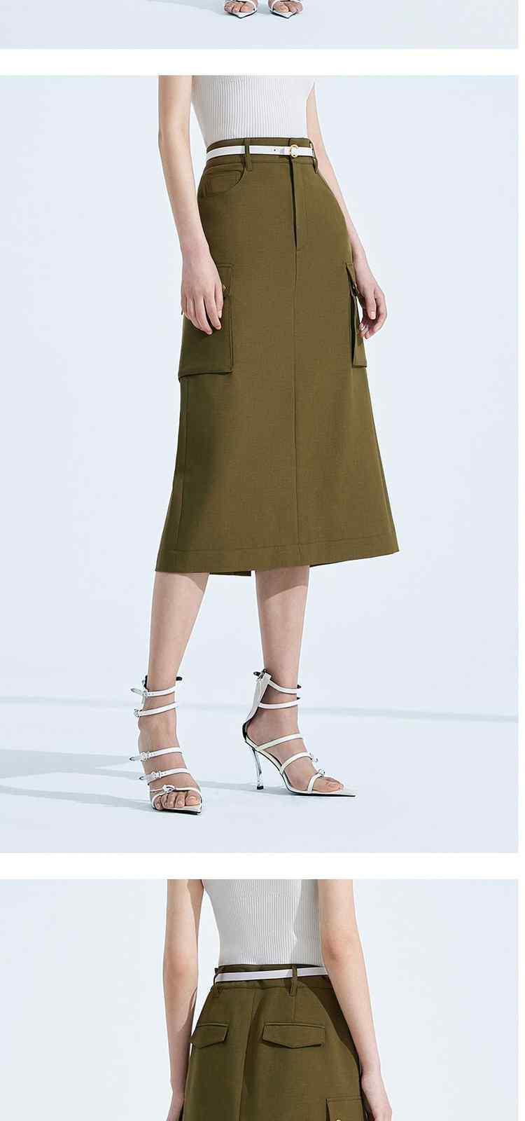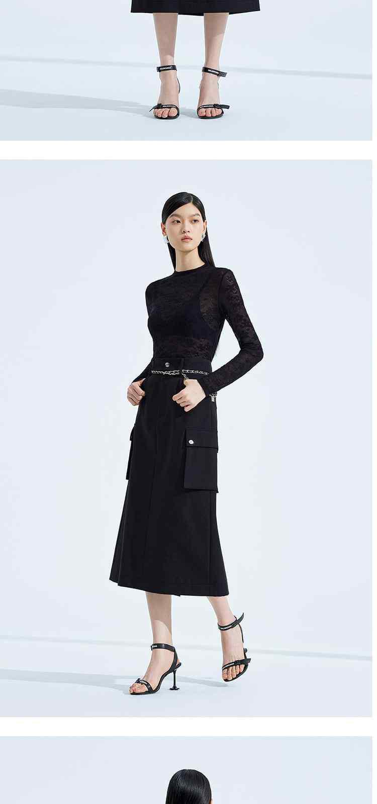 黑标系列春装 中长款休闲a字工装风半身裙 039951