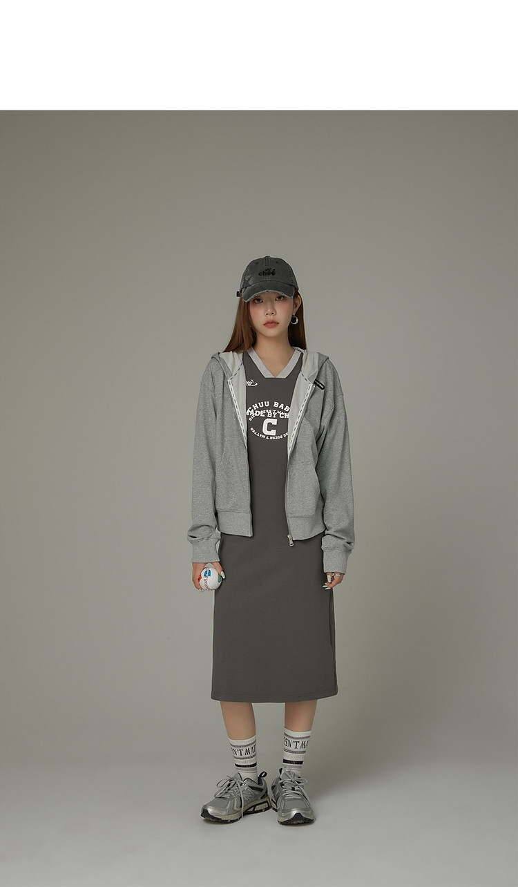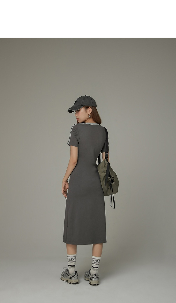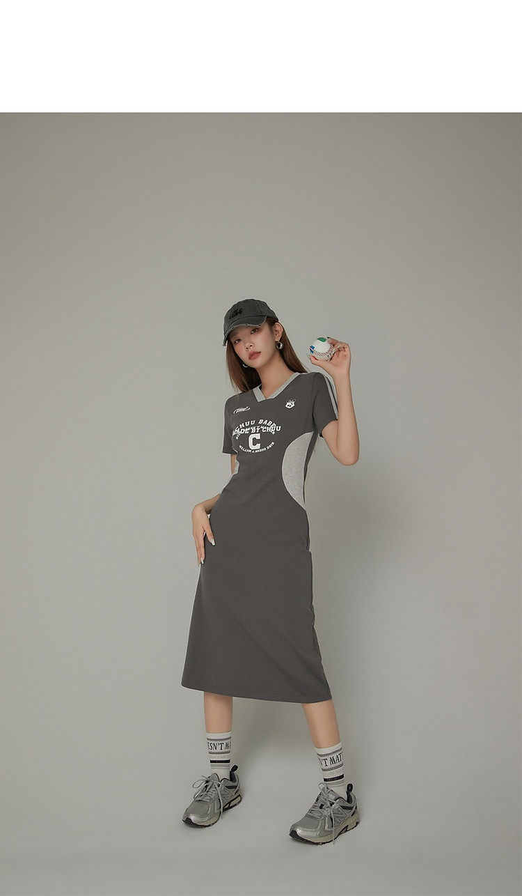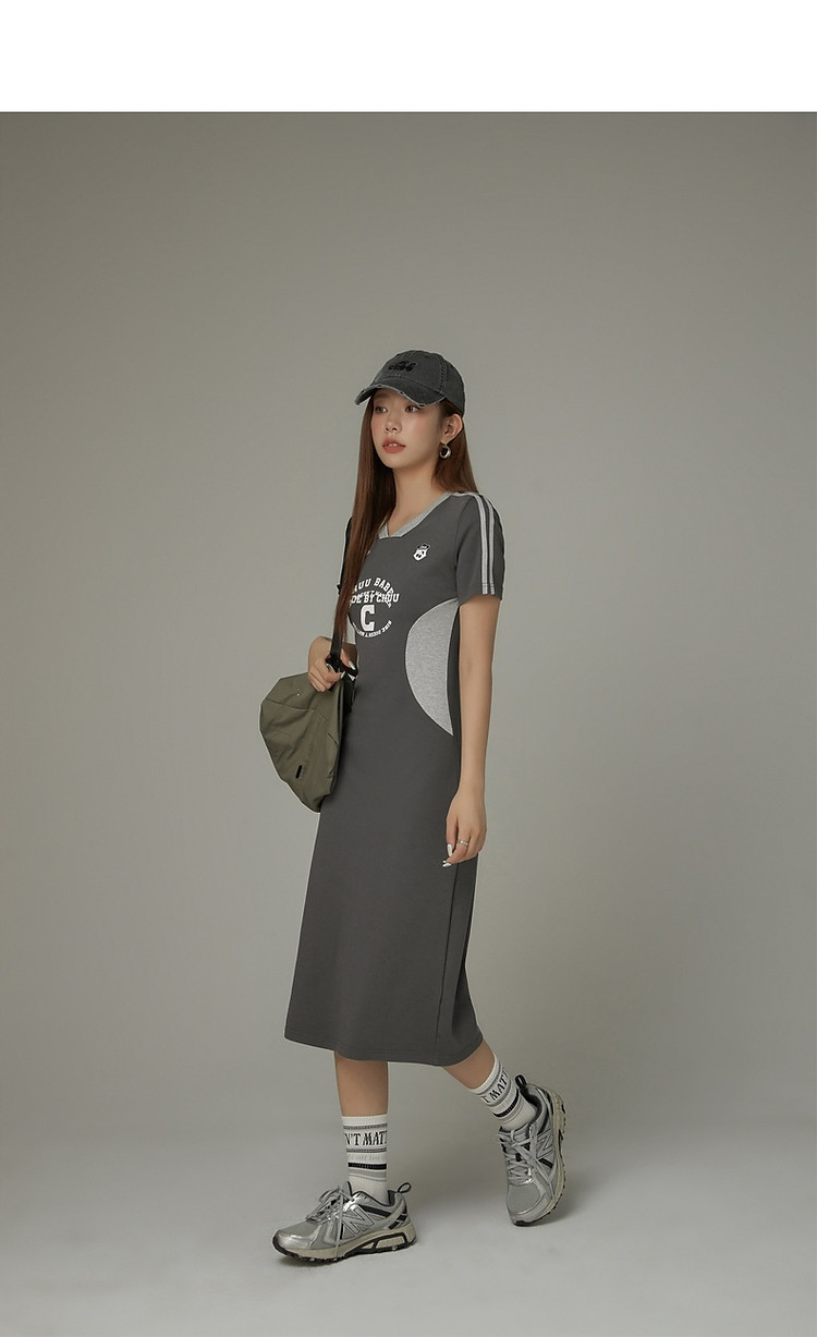 商品名称:CHUU拼接短袖连衣裙女春秋学院字母印花撞色中长裙 027091