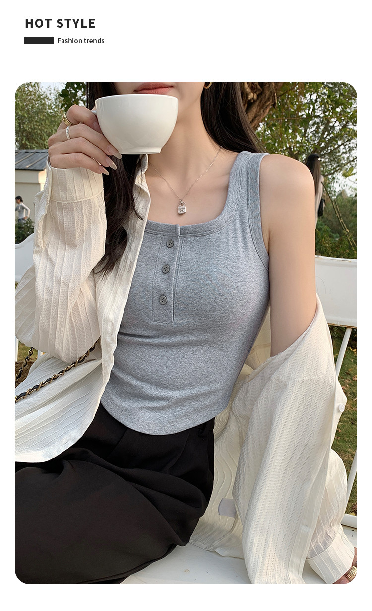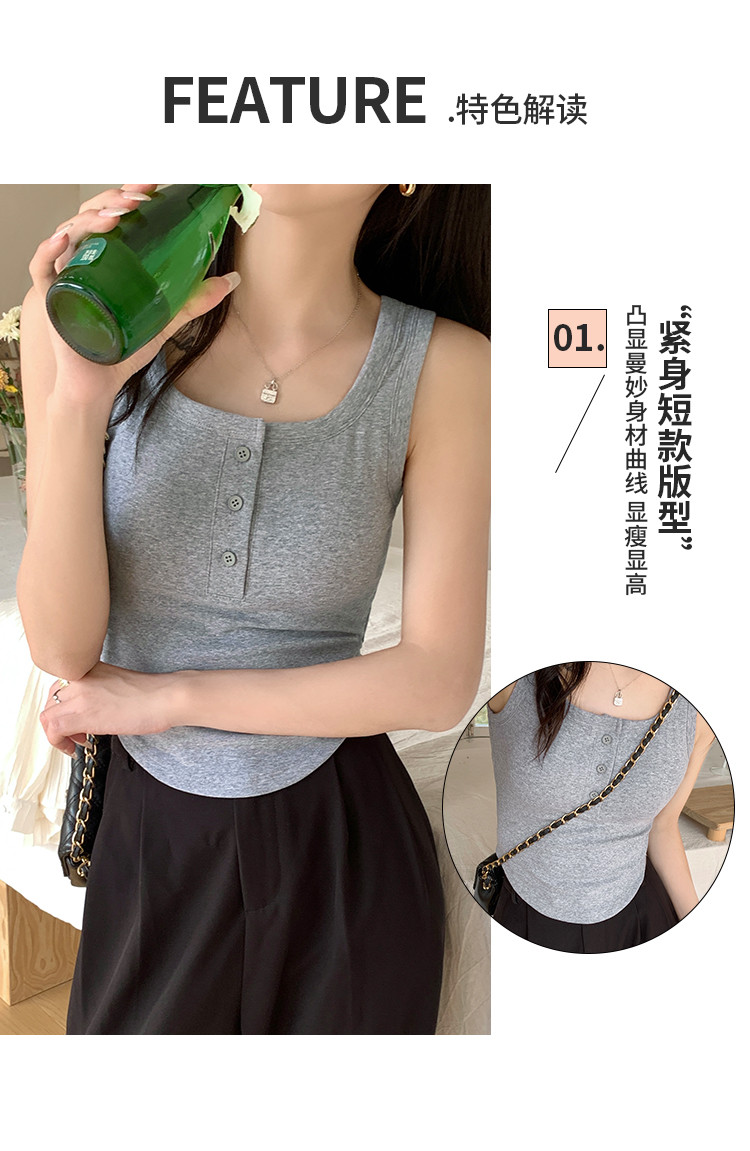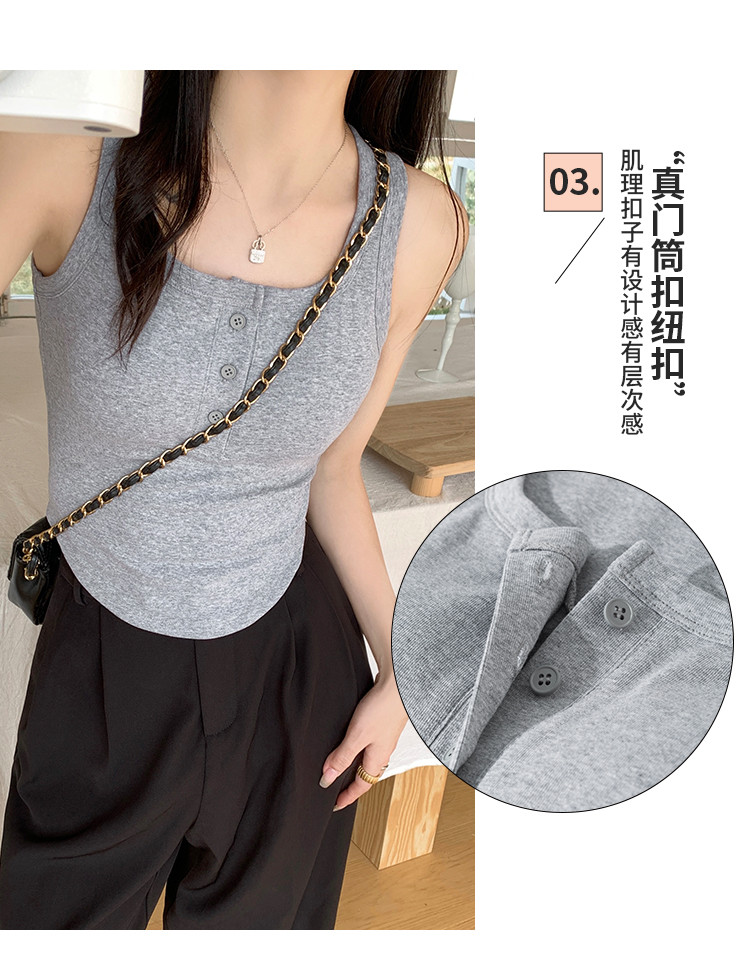 商品名称:米子旗春夏季款女U领纽扣背心短款修身纯色上衣 408986