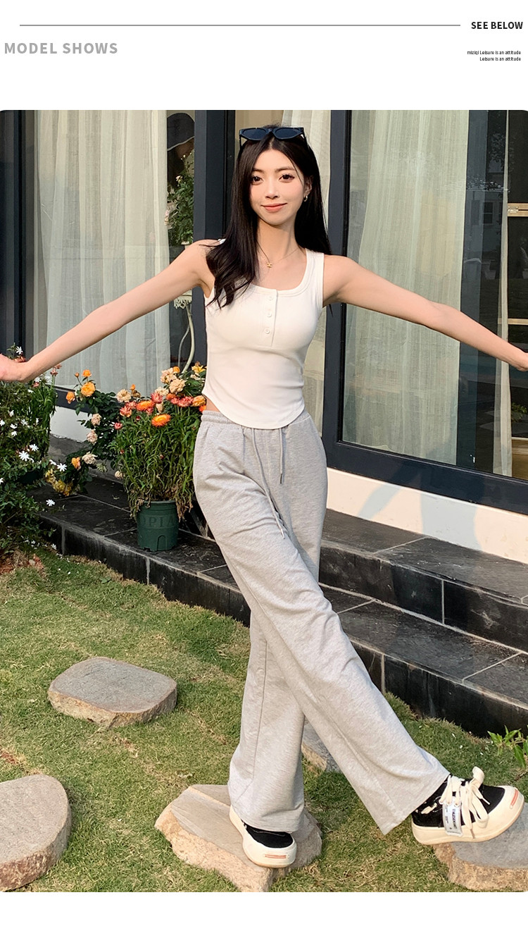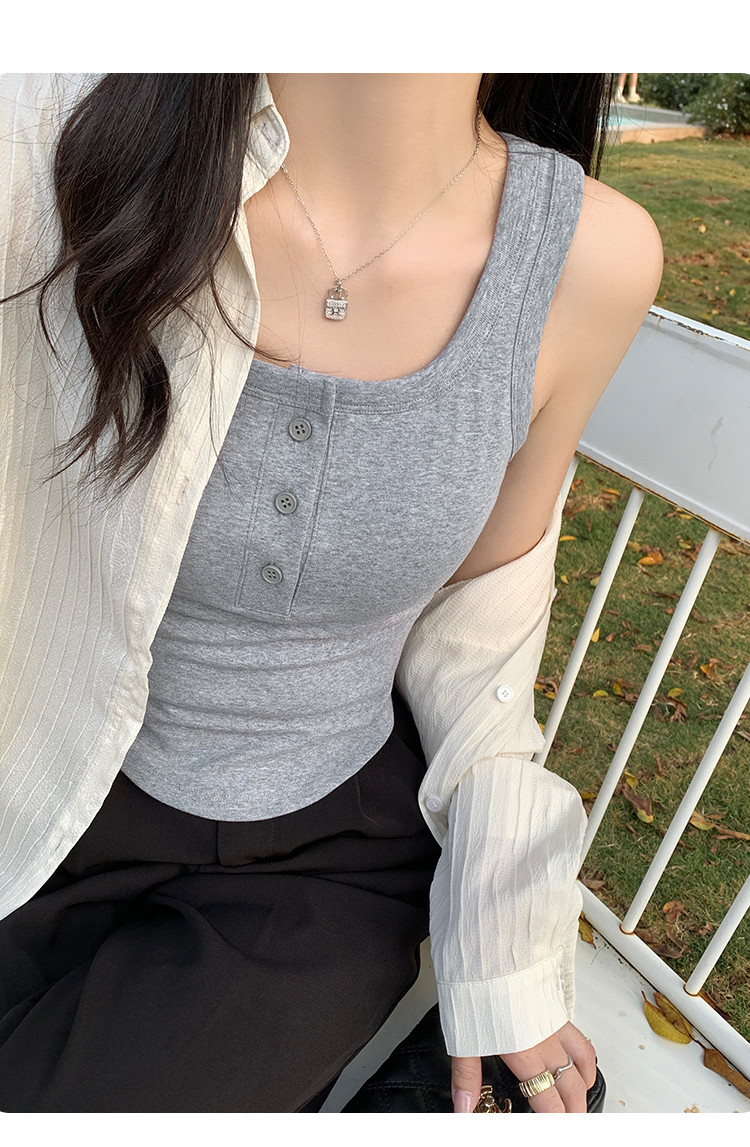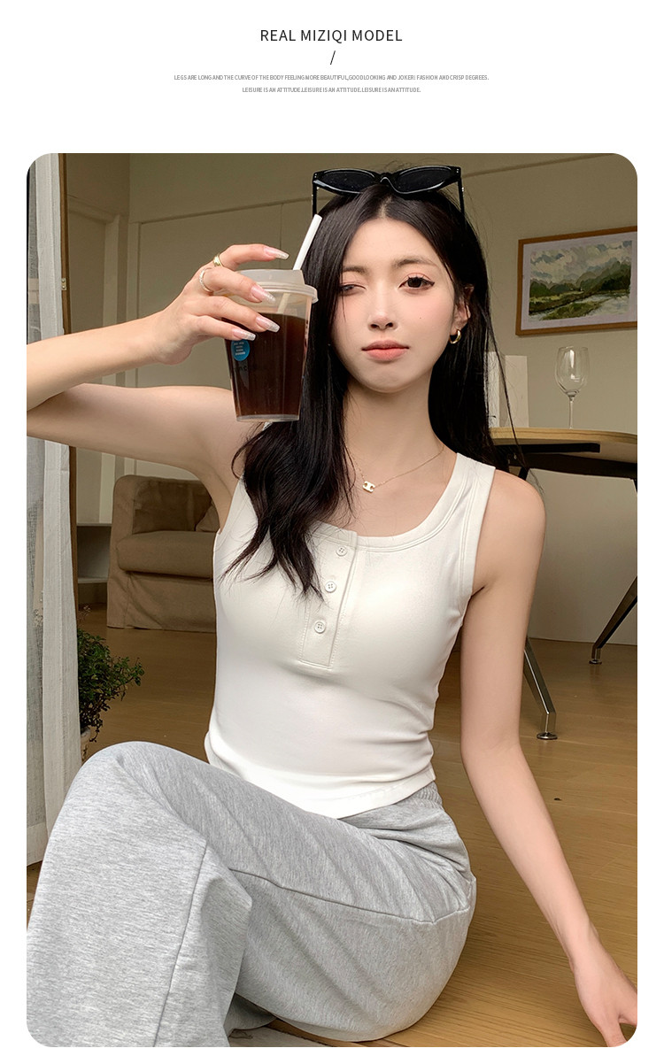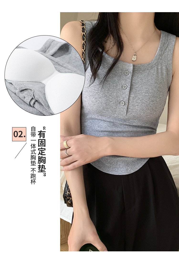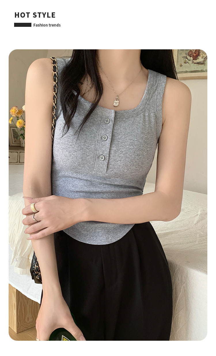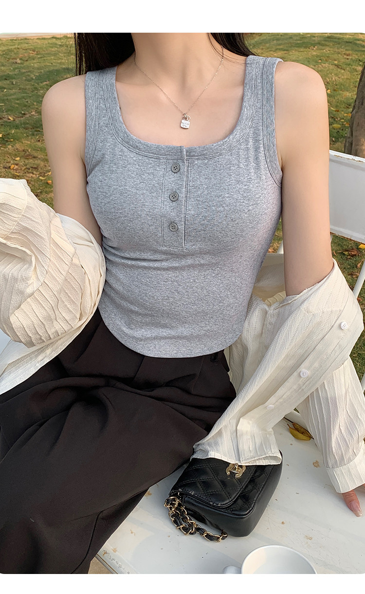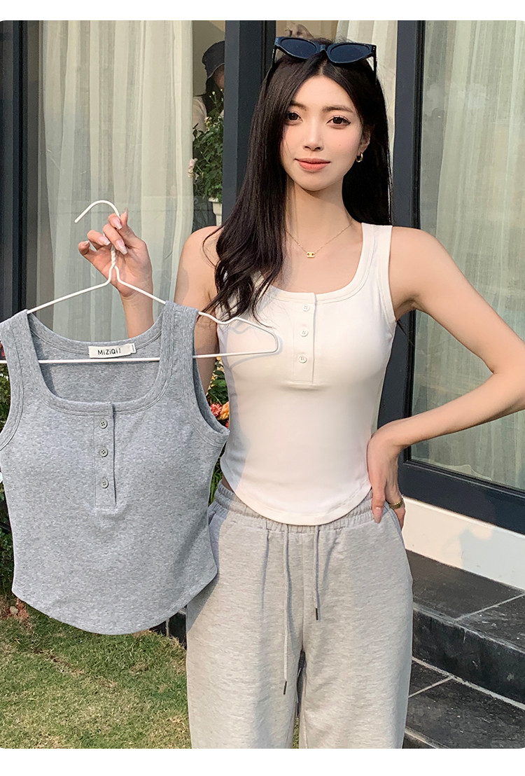 米子旗春夏季款女U领纽扣背心短款修身纯色上衣 408986