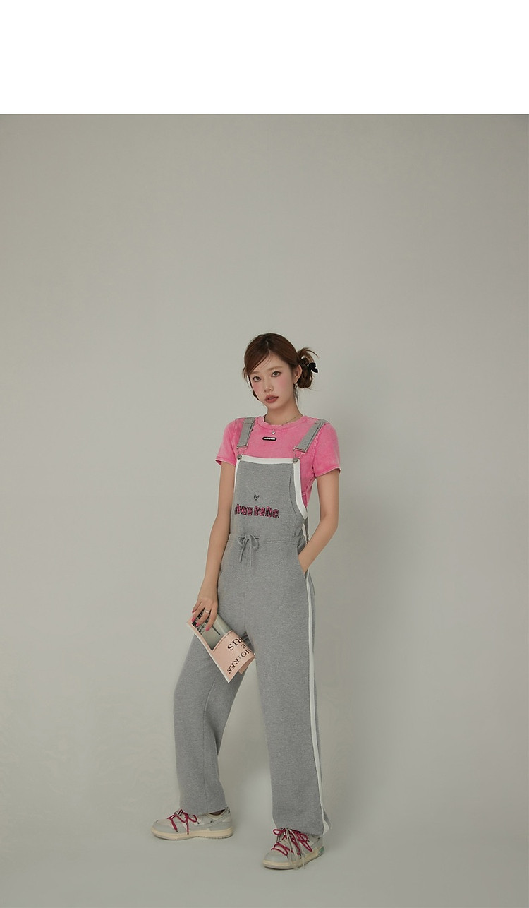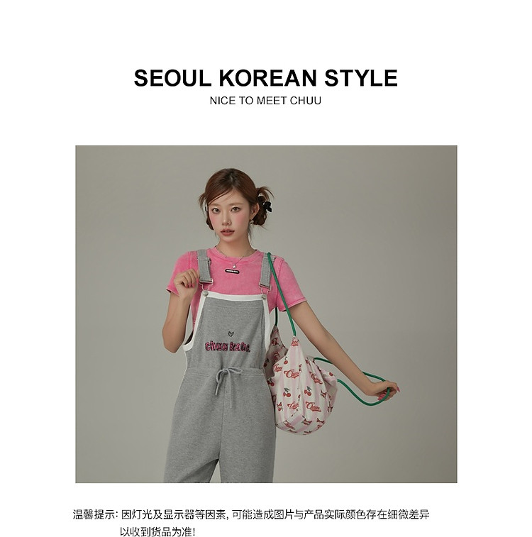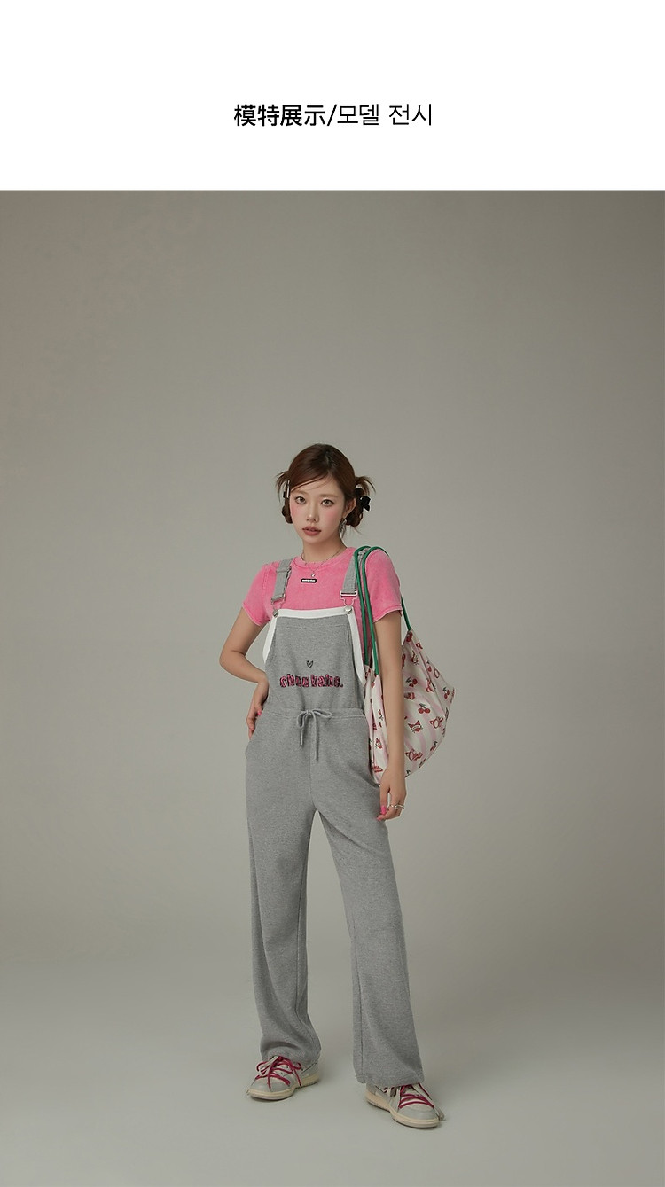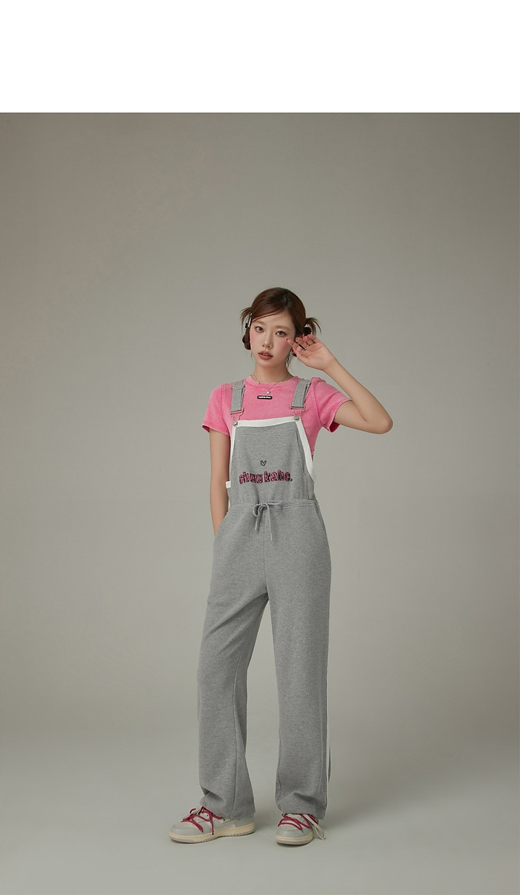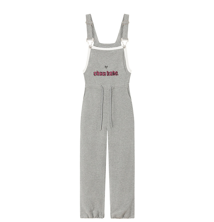 商品名称:字母绣花背带裤女春秋撞色华夫格抽绳宽松休闲长裤子 752979
