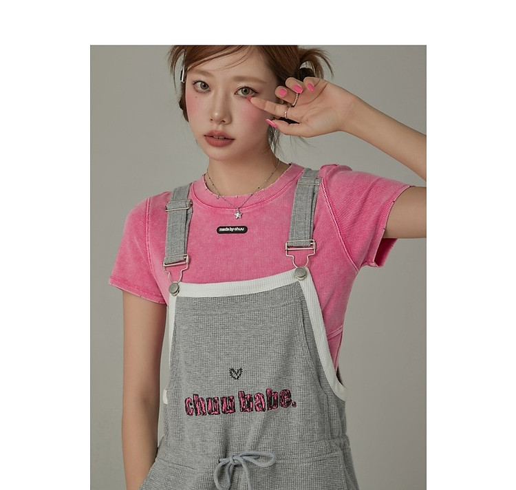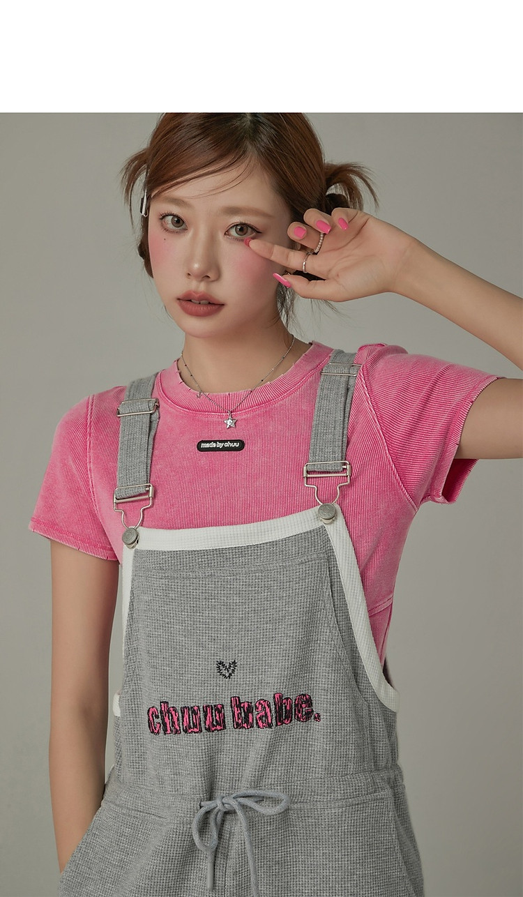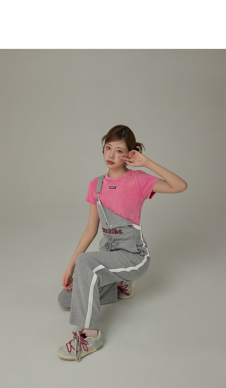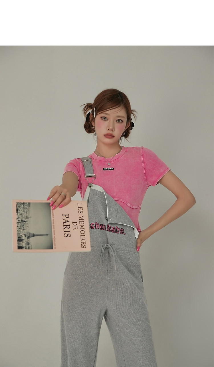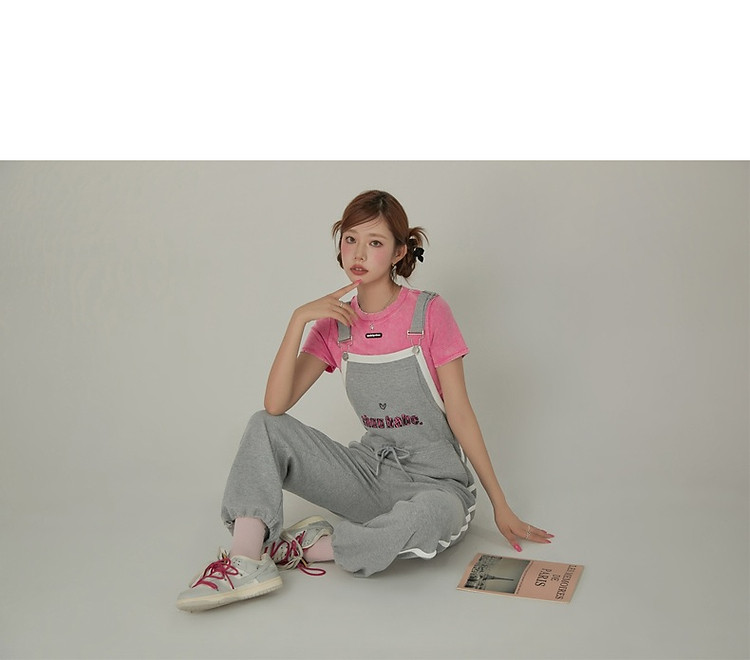 商品名称:字母绣花背带裤女春秋撞色华夫格抽绳宽松休闲长裤子 752979