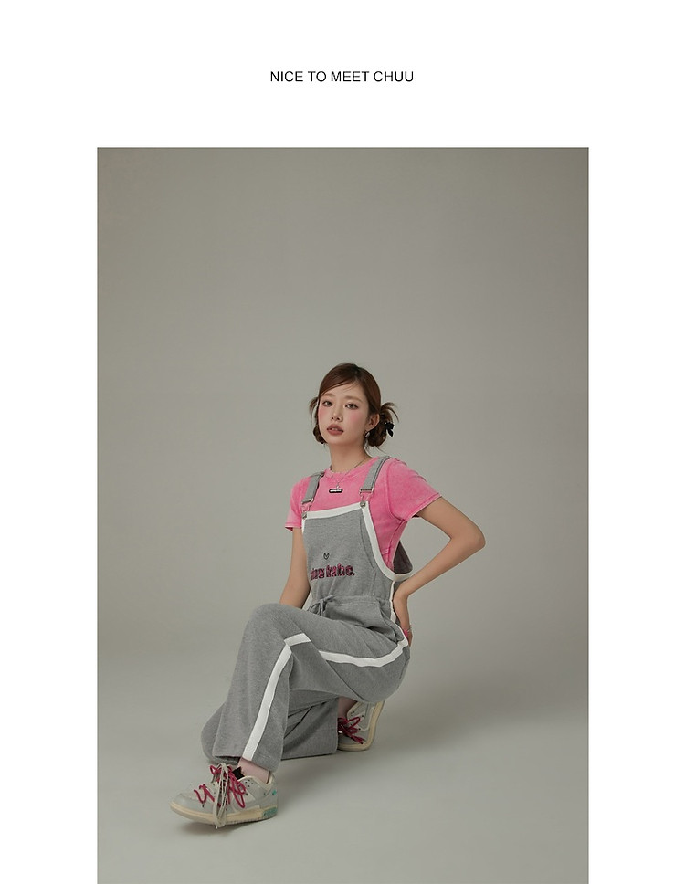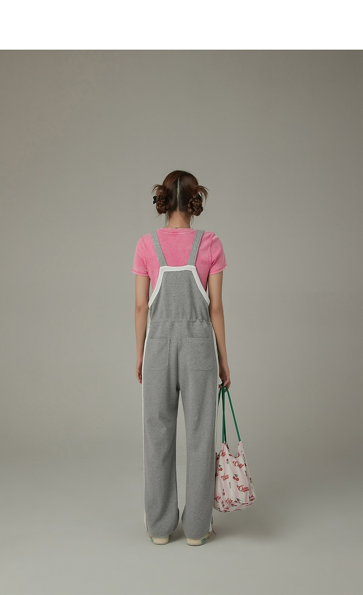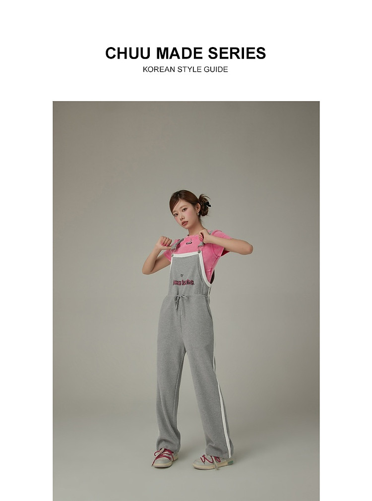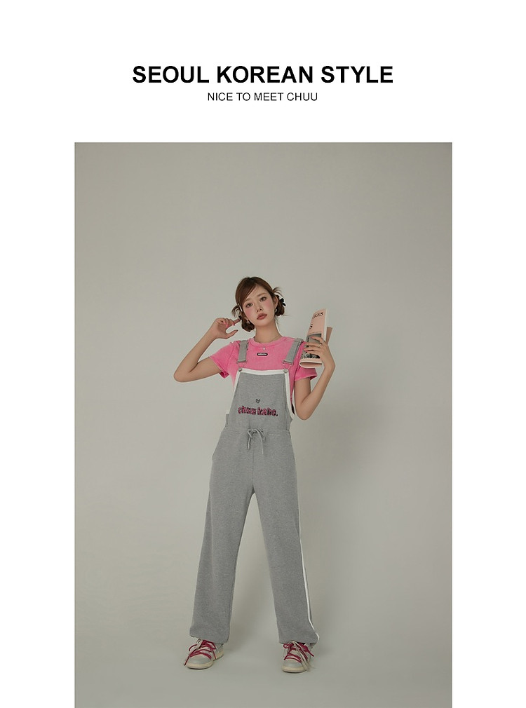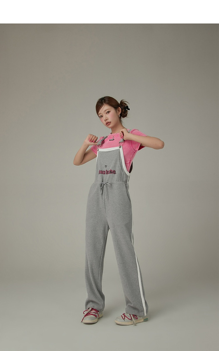 字母绣花背带裤女春秋撞色华夫格抽绳宽松休闲长裤子 752979
