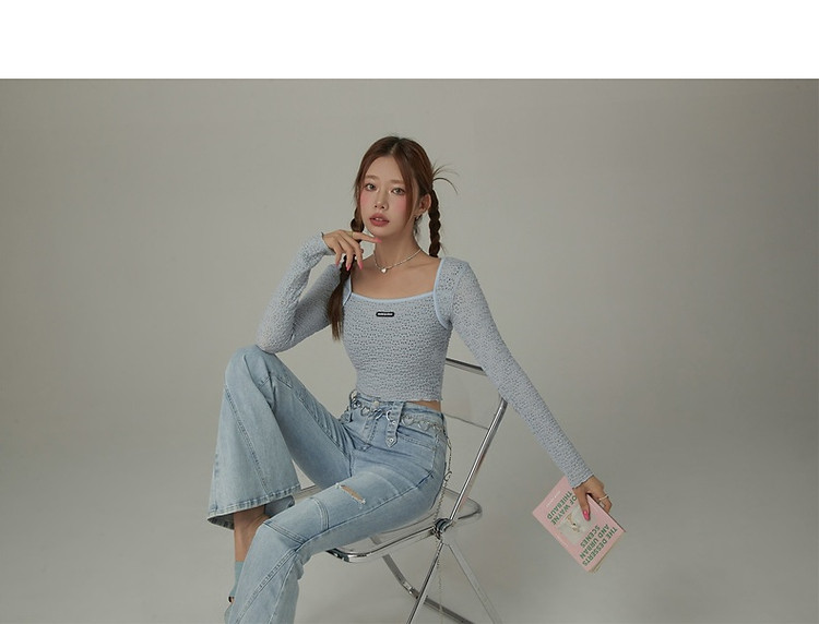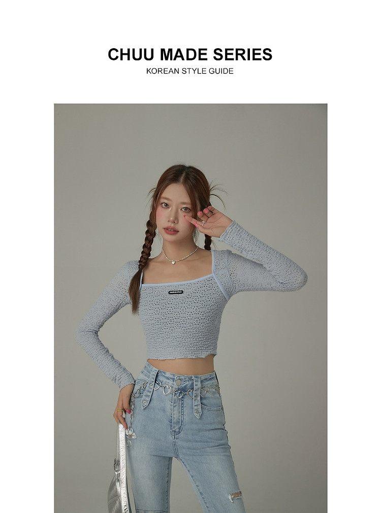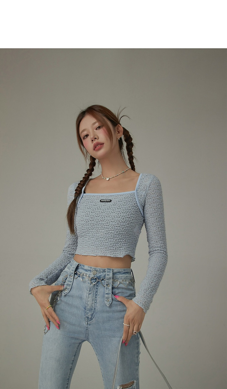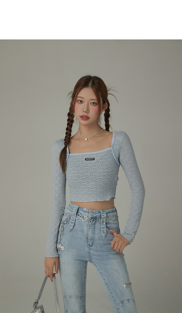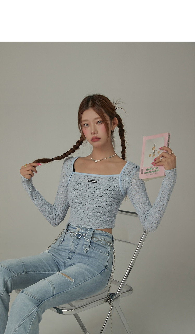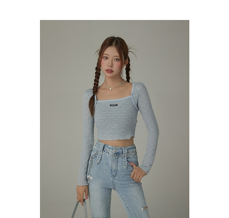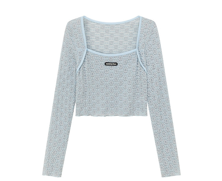 商品名称:贴标镂空T恤女春秋设计感洋气百搭辣妹长袖短上衣 588819