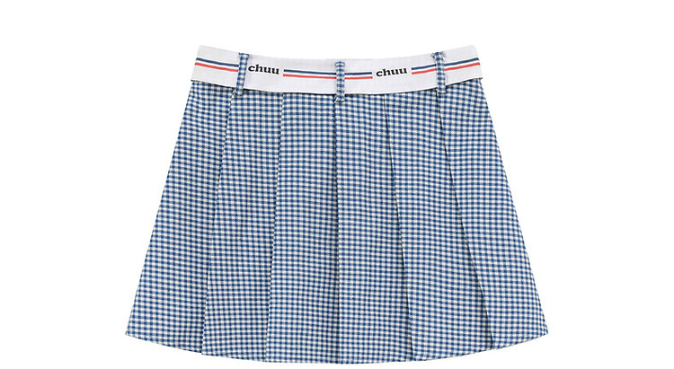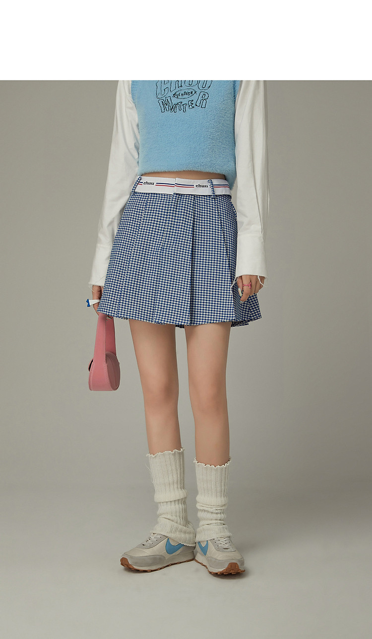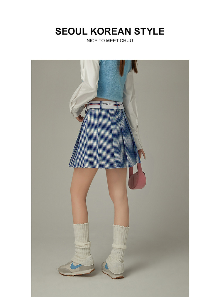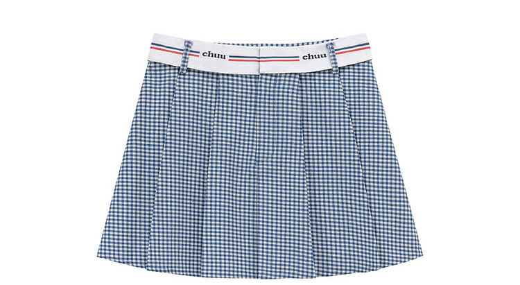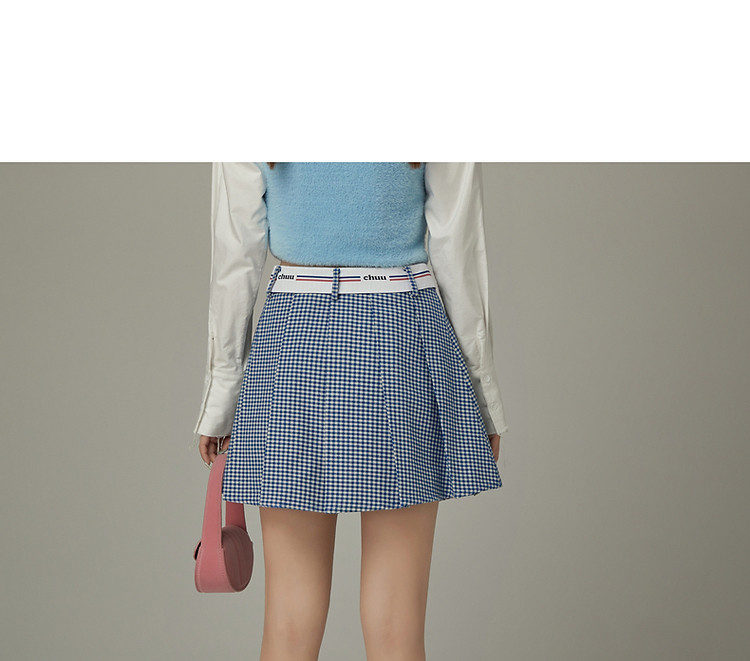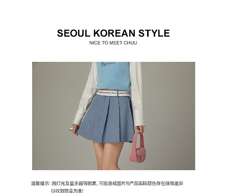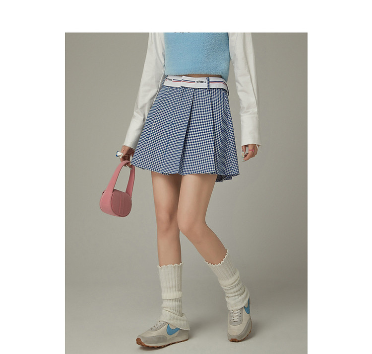 商品名称:CHUU高腰格子百褶半身裙女春秋撞色印花a字裙子 670739