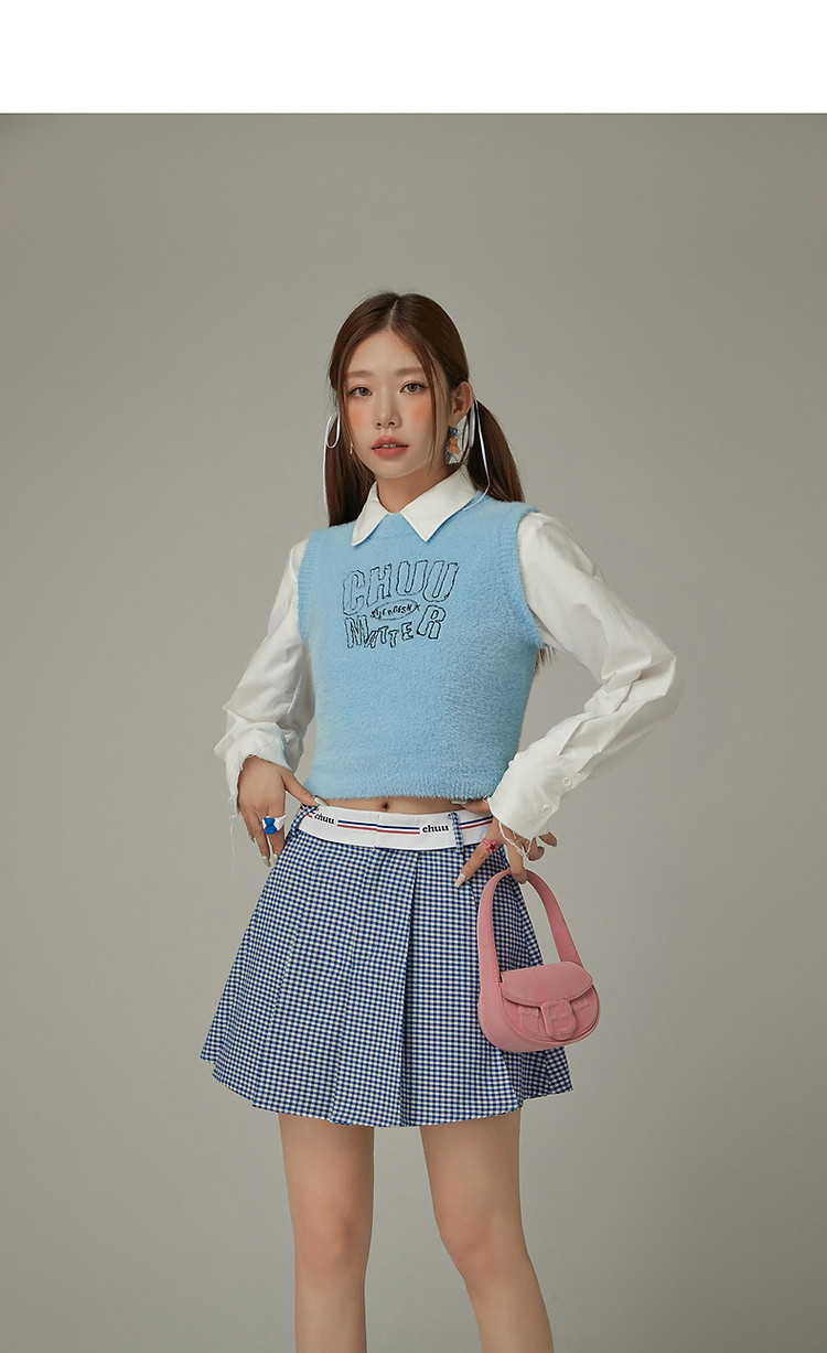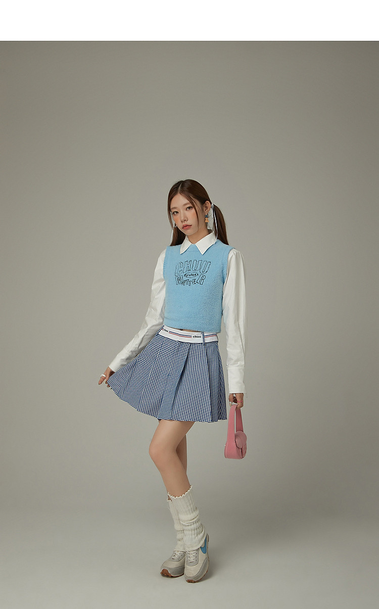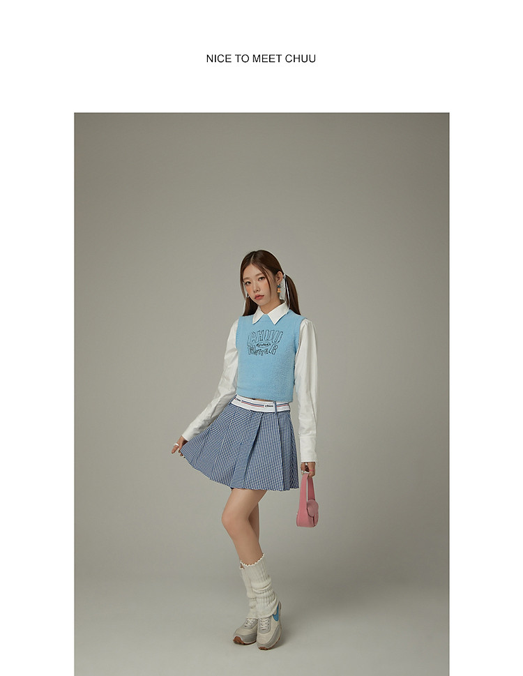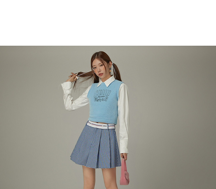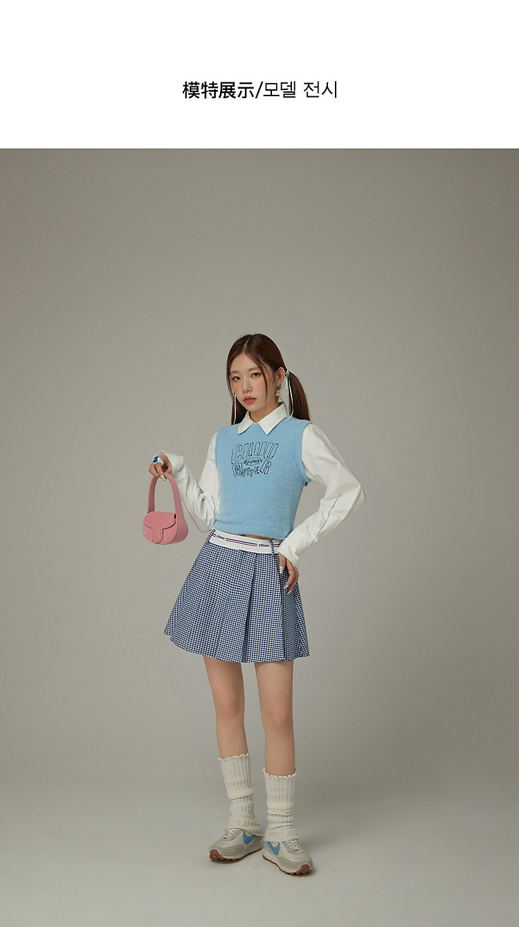 商品名称:CHUU高腰格子百褶半身裙女春秋撞色印花a字裙子 670739