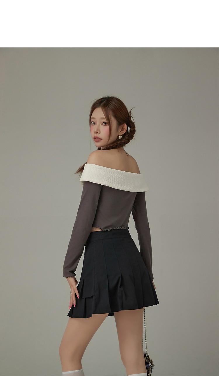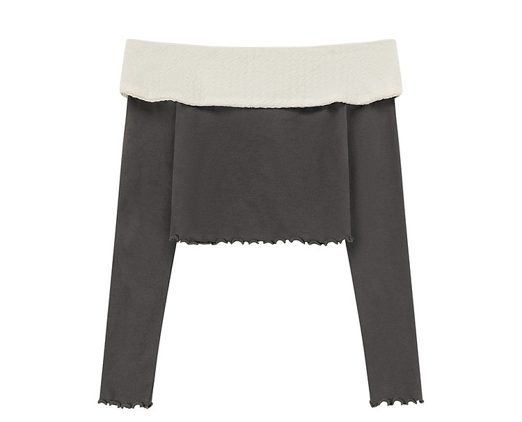 商品名称:撞色系带长袖T恤女春秋字母开叉一字肩木耳边上衣 450387