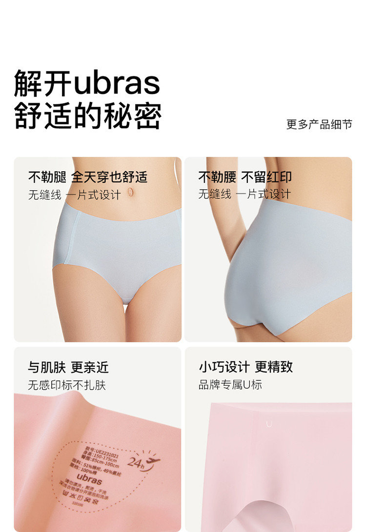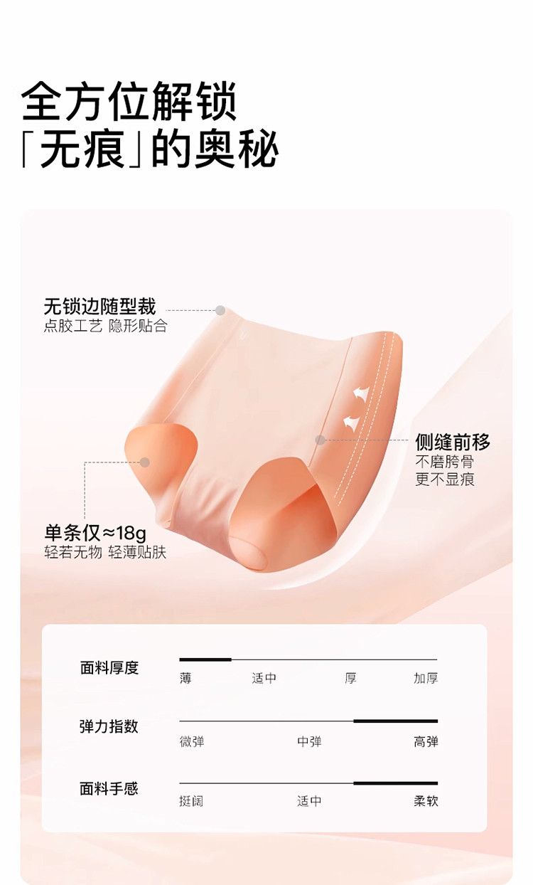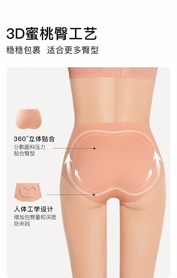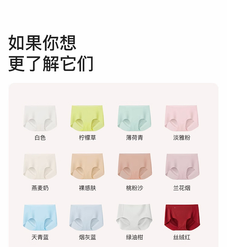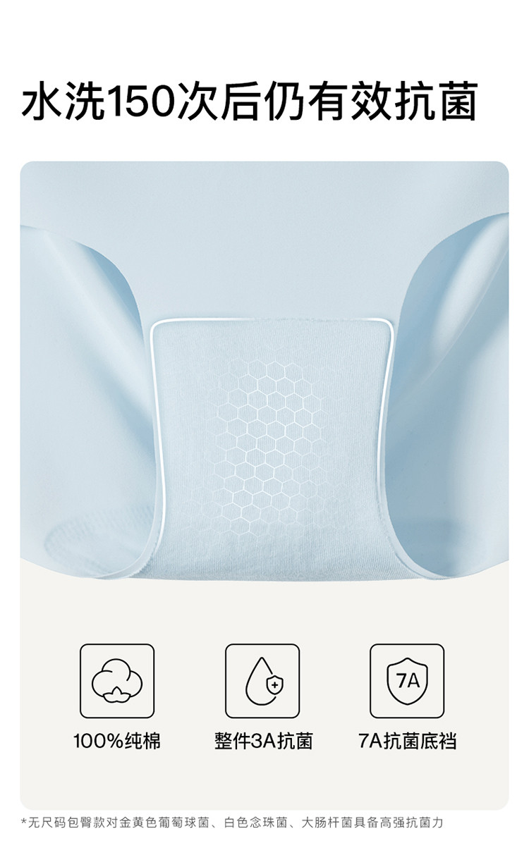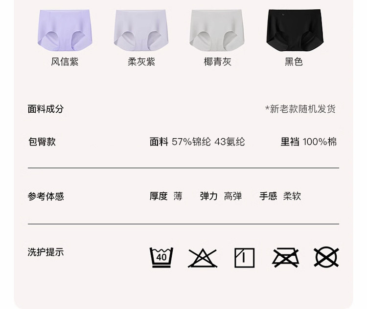 商品名称:【100%纯棉抑菌底档】无尺码包臀中腰三角裤女士内裤4条装 356544