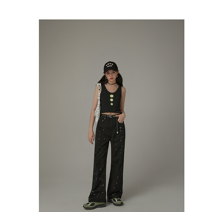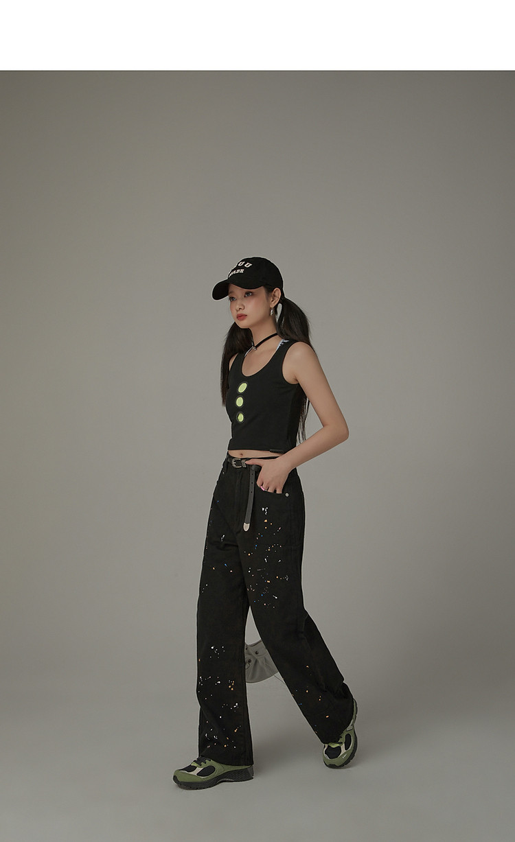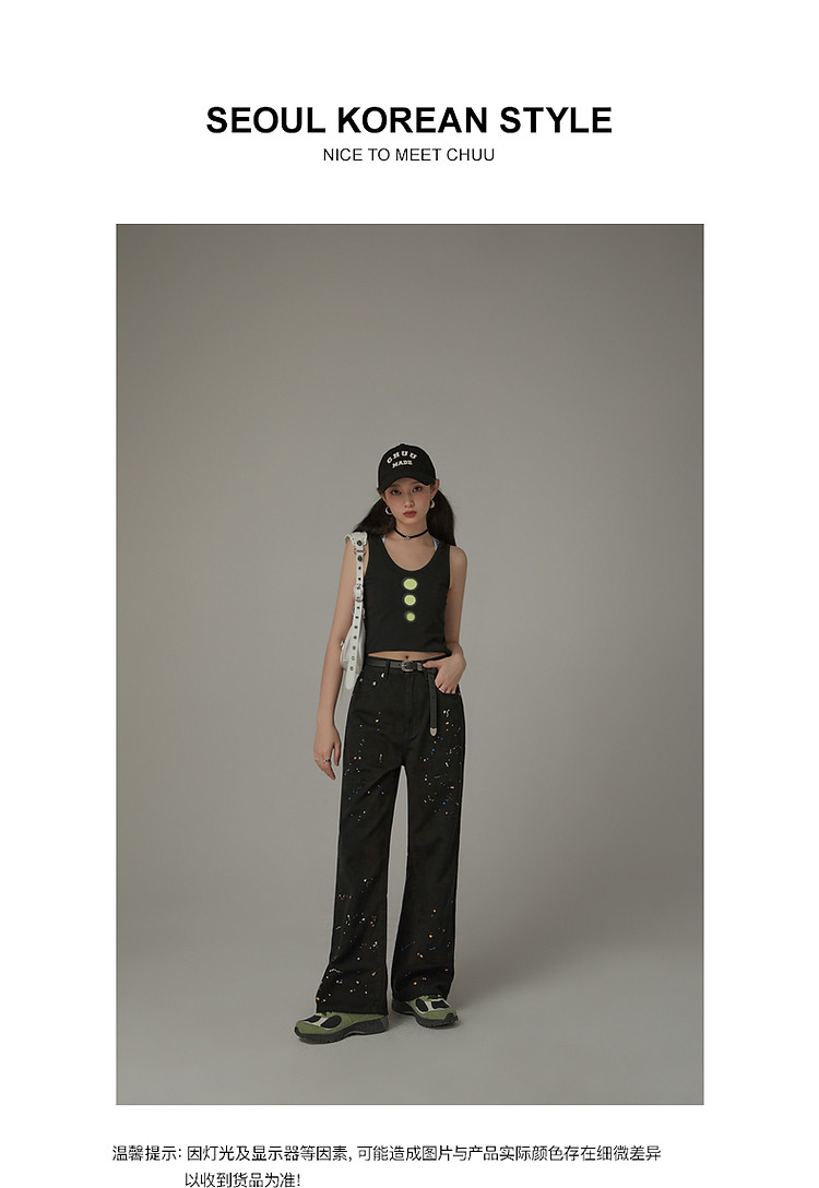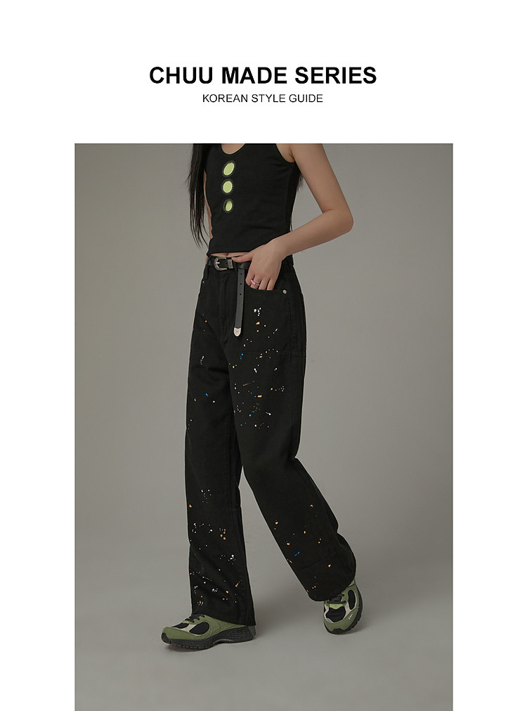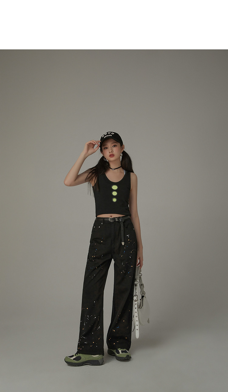 商品名称:高腰漆点休闲裤女春秋设计感辣妹洋气阔腿长裤子潮 705427