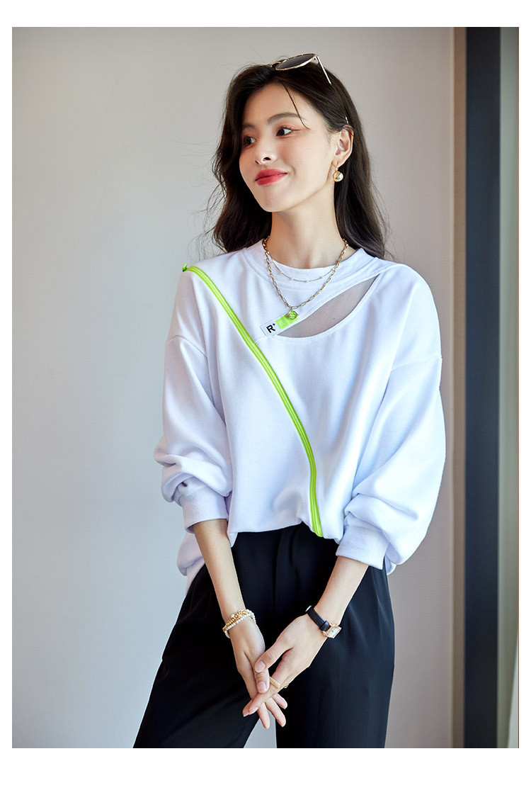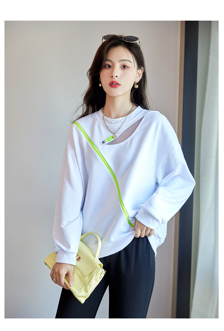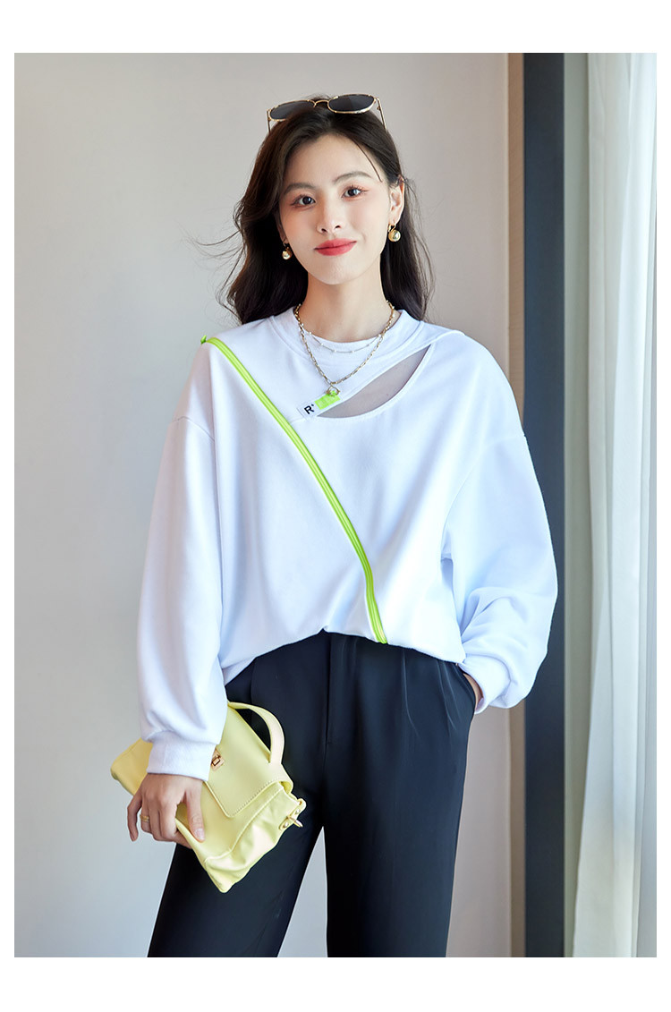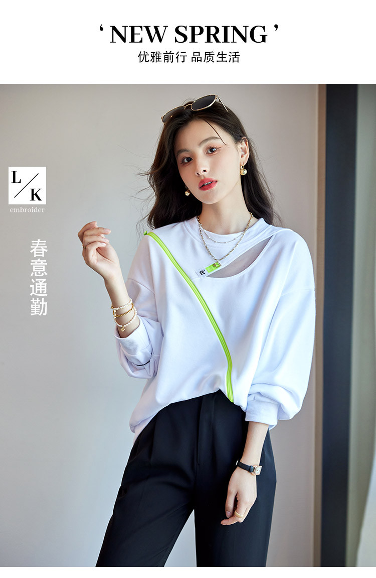 商品名称:【时尚潮流】潮流春季女式卫衣圆领镂空肩部斜拉链设计上衣 105880