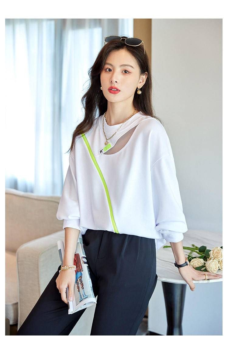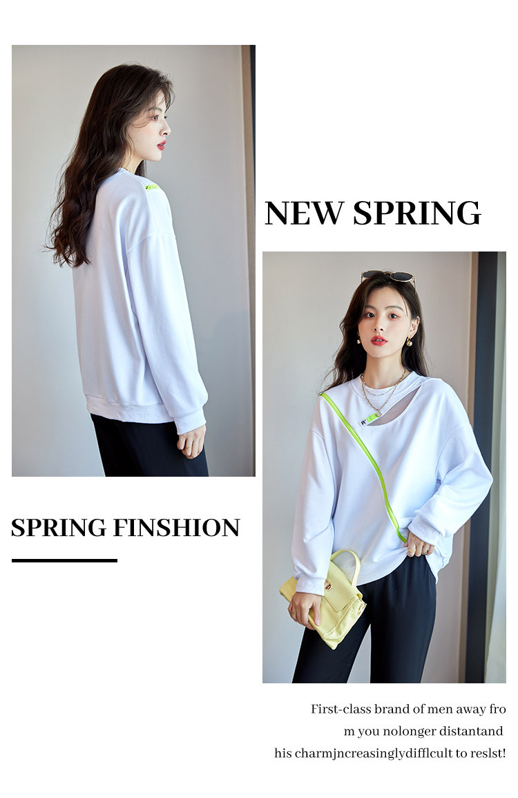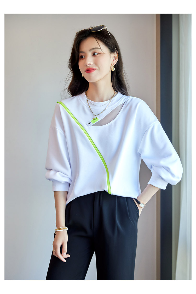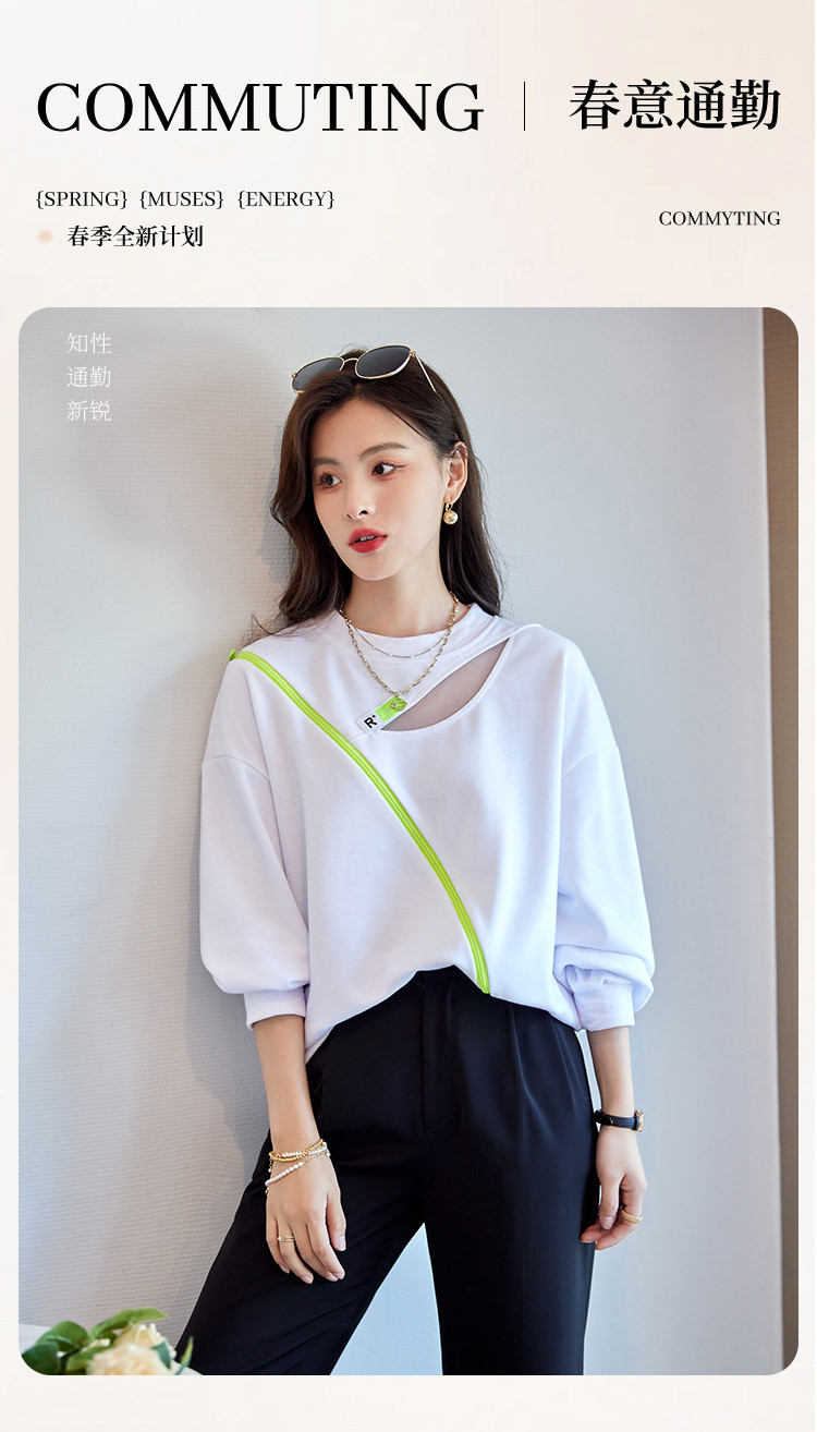 商品名称:【时尚潮流】潮流春季女式卫衣圆领镂空肩部斜拉链设计上衣 105880