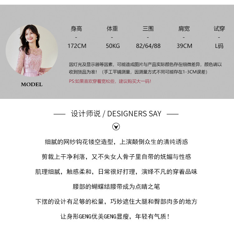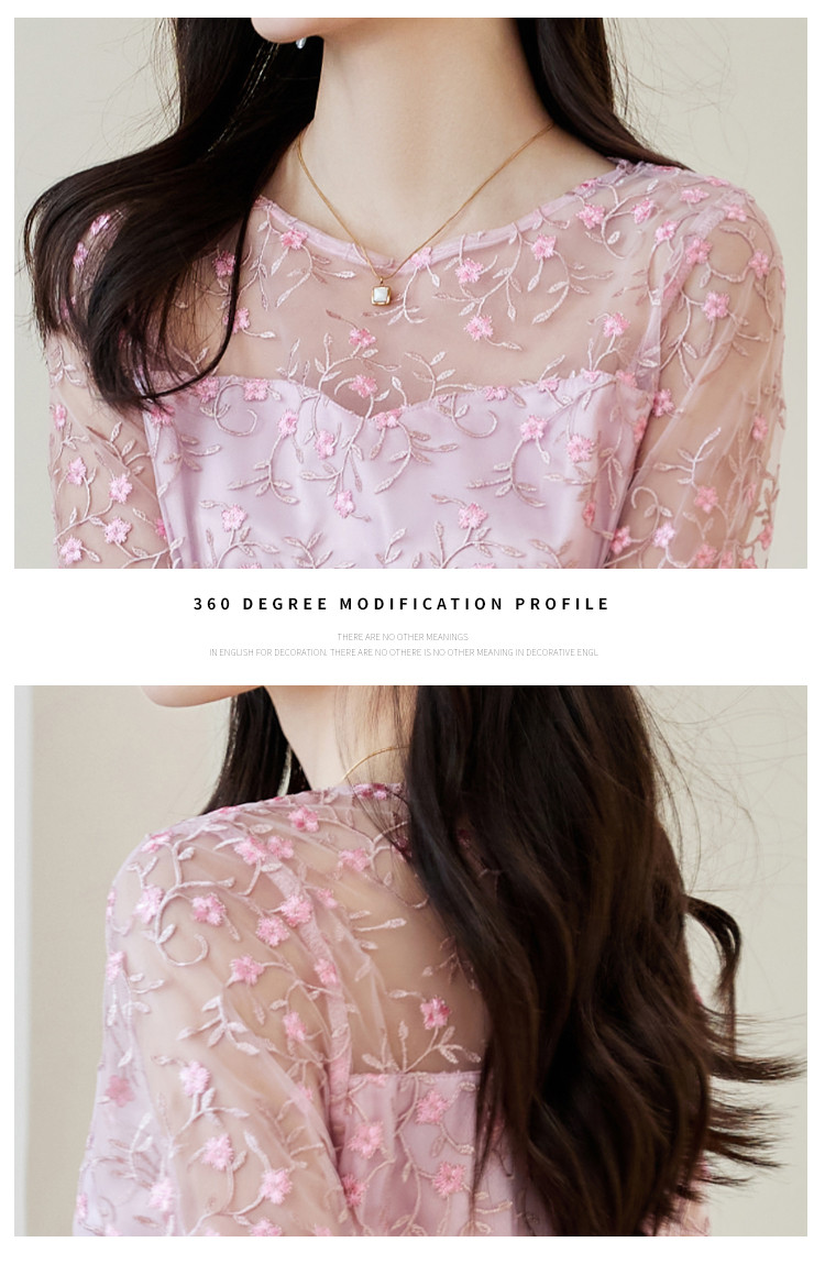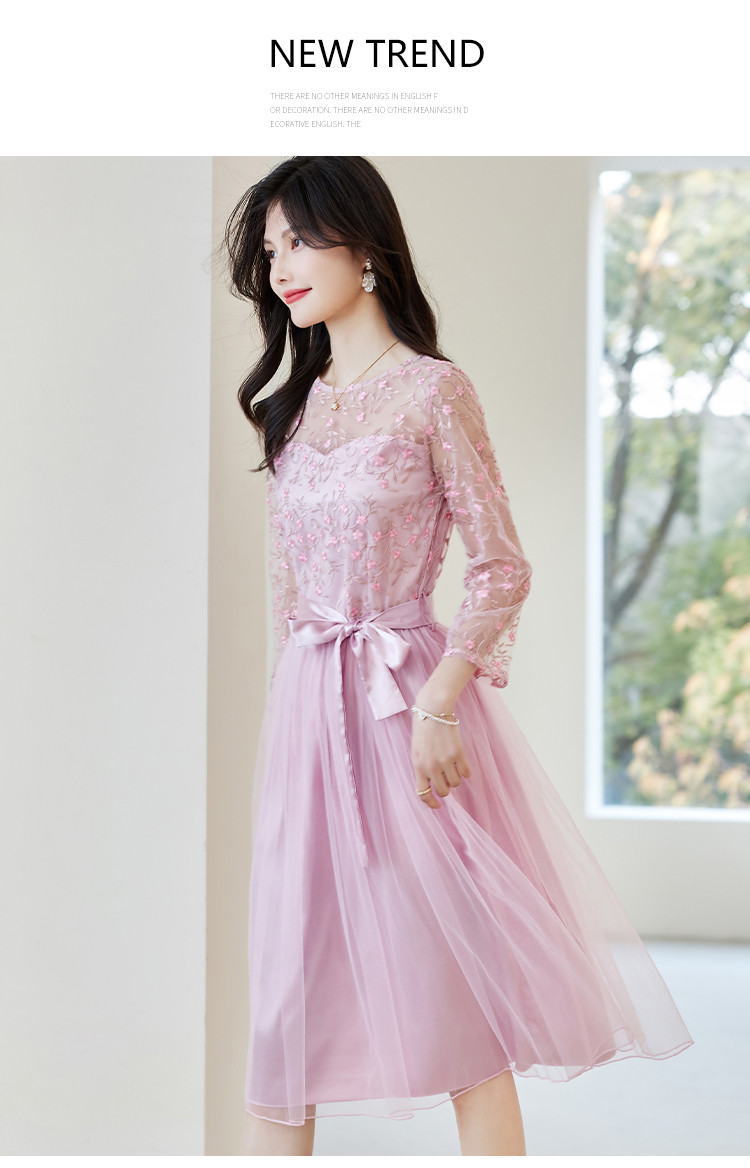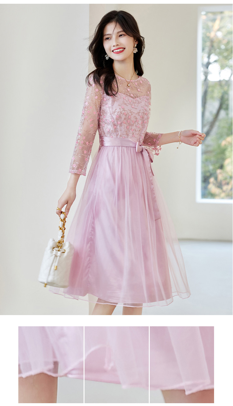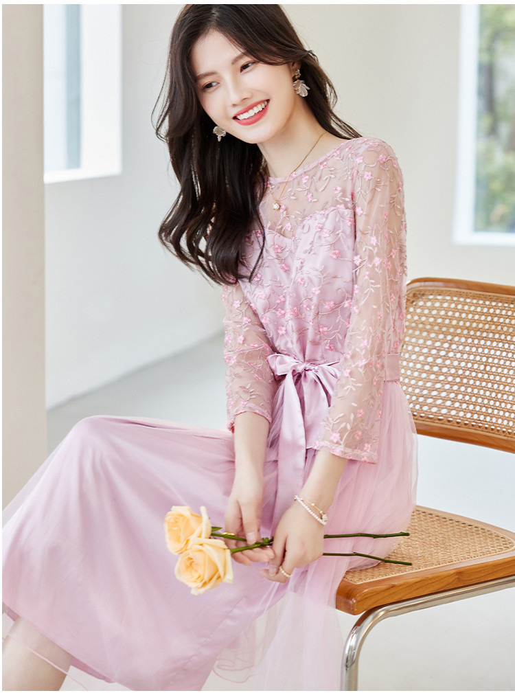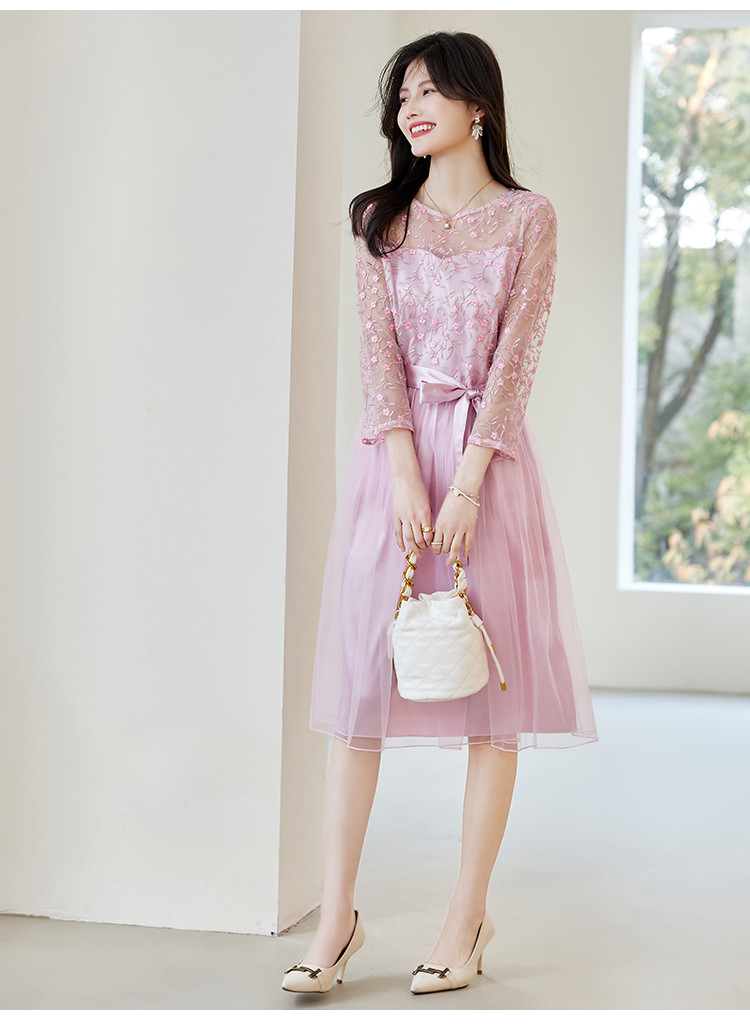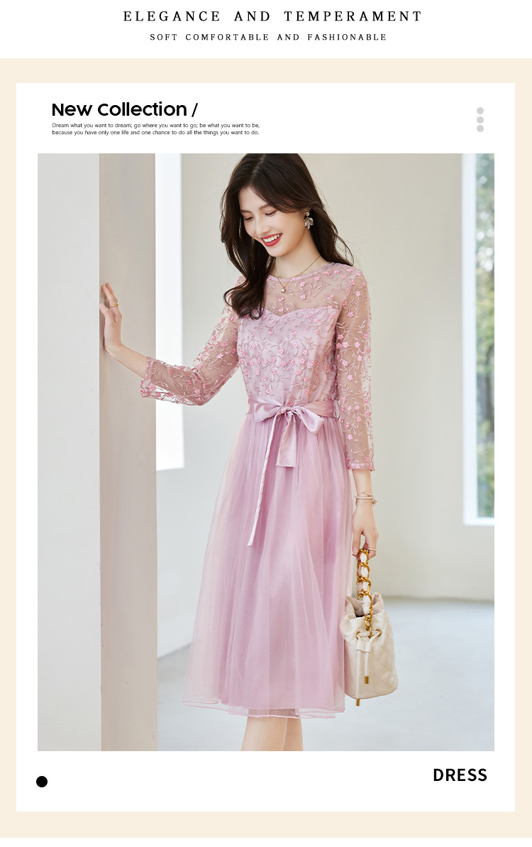 春装淑女风名媛绣花纯色时尚拼接修身显瘦连衣裙 295960