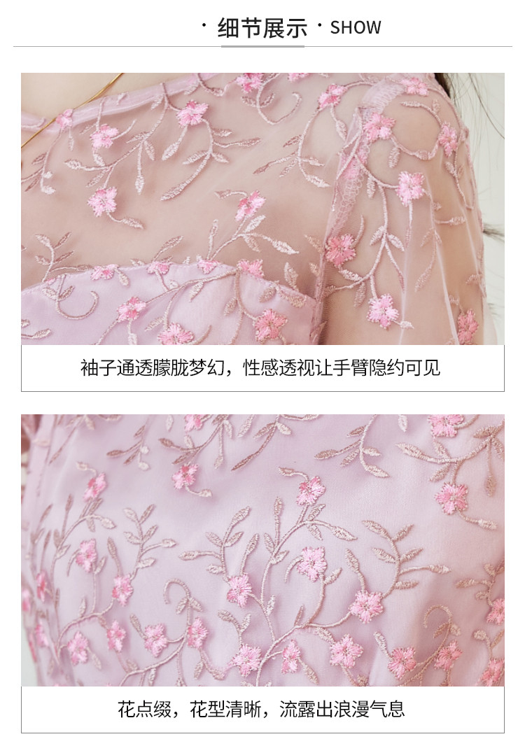 商品名称:春装淑女风名媛绣花纯色时尚拼接修身显瘦连衣裙 295960
