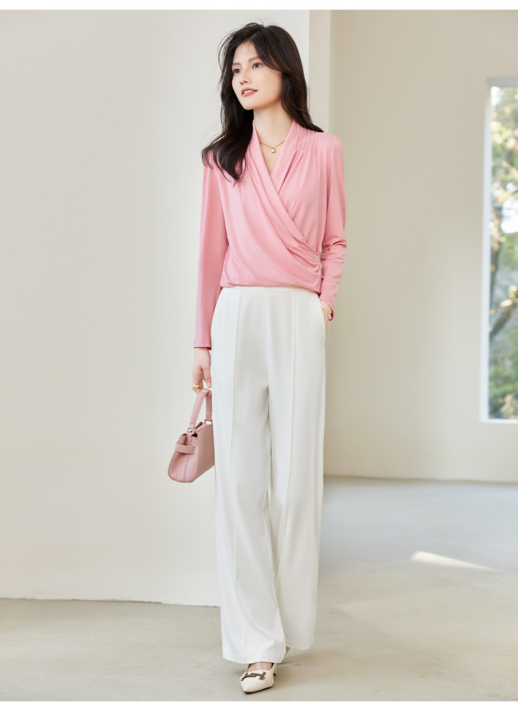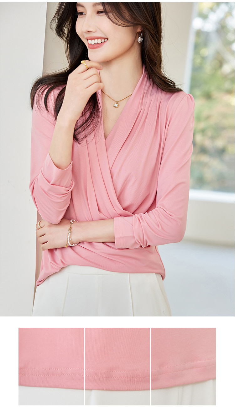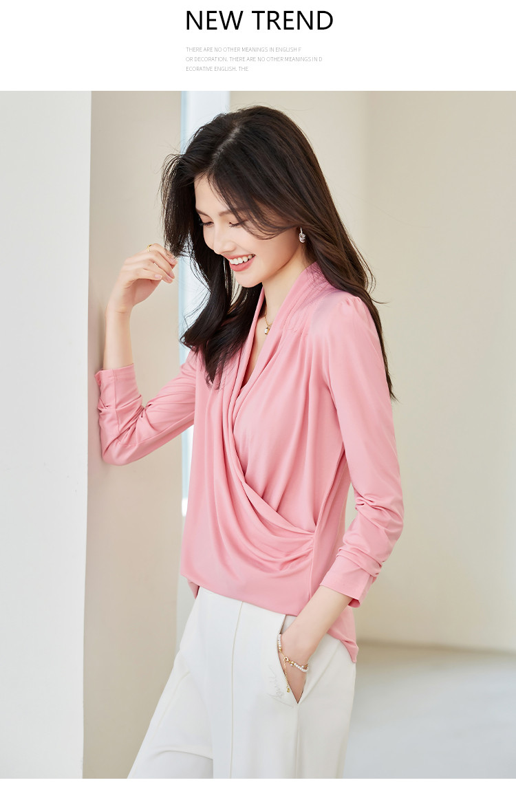 商品名称:春装女装淑女风韩版弹力水晶麻优质纯色修身打底衫 048408