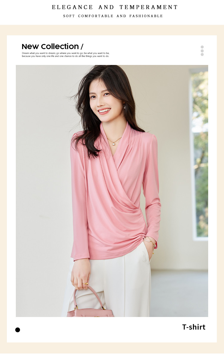 春装女装淑女风韩版弹力水晶麻优质纯色修身打底衫 048408