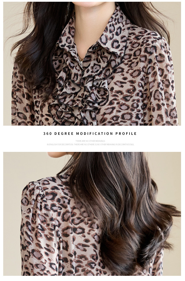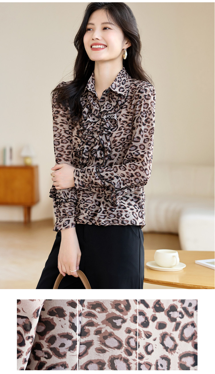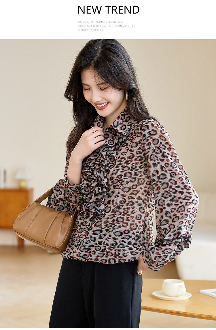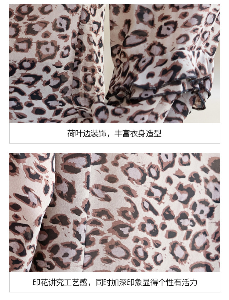 商品名称:春装个性印花豹纹荷叶领雪纺女长袖衬衫上衣 316440
