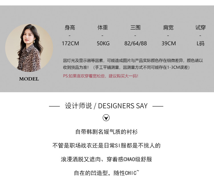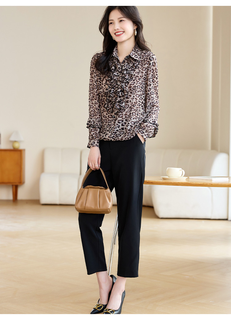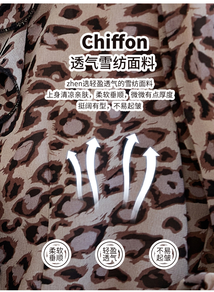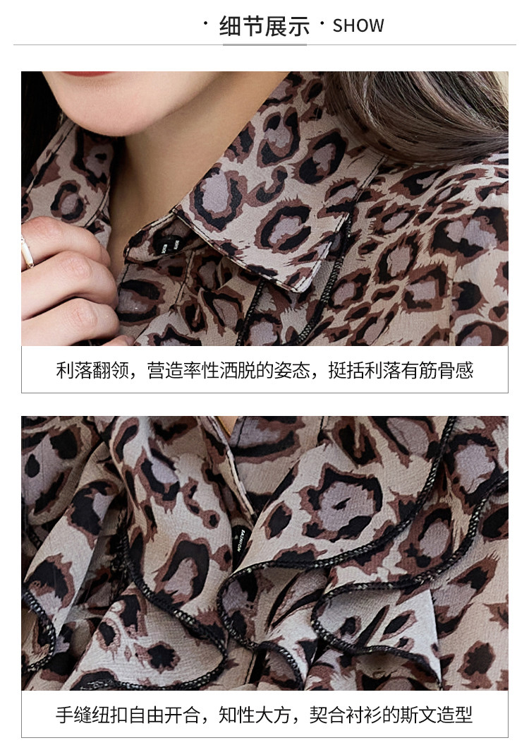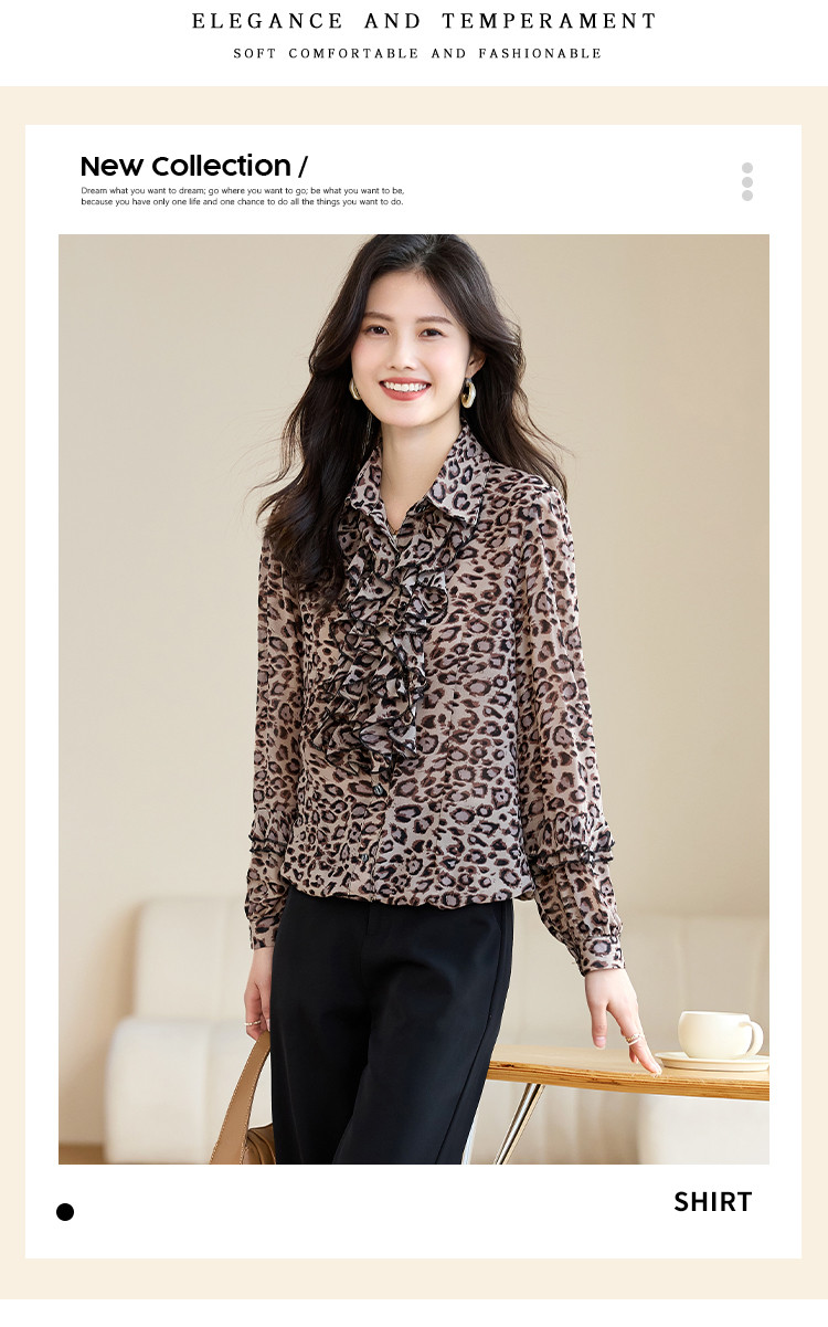 商品名称:春装个性印花豹纹荷叶领雪纺女长袖衬衫上衣 316440
