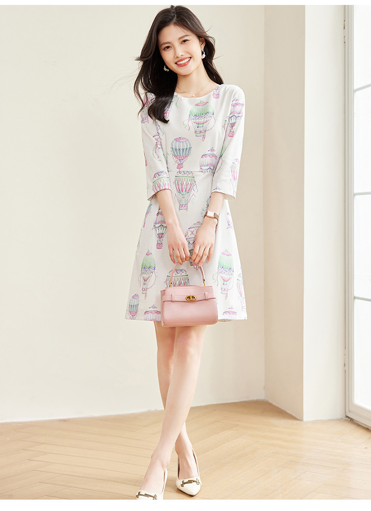 春装七分袖女装时尚提花气质日常显瘦气质连衣裙 449688