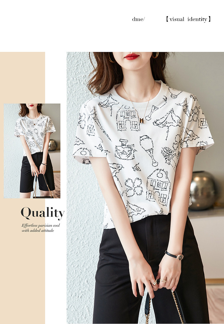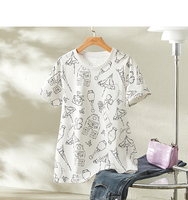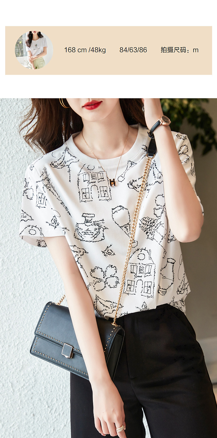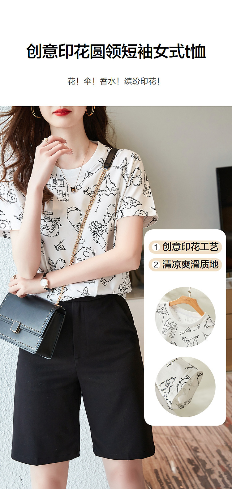 商品名称:【创意印花女式t恤】夏季圆领打底衫花伞香水印花短袖t恤女 571905