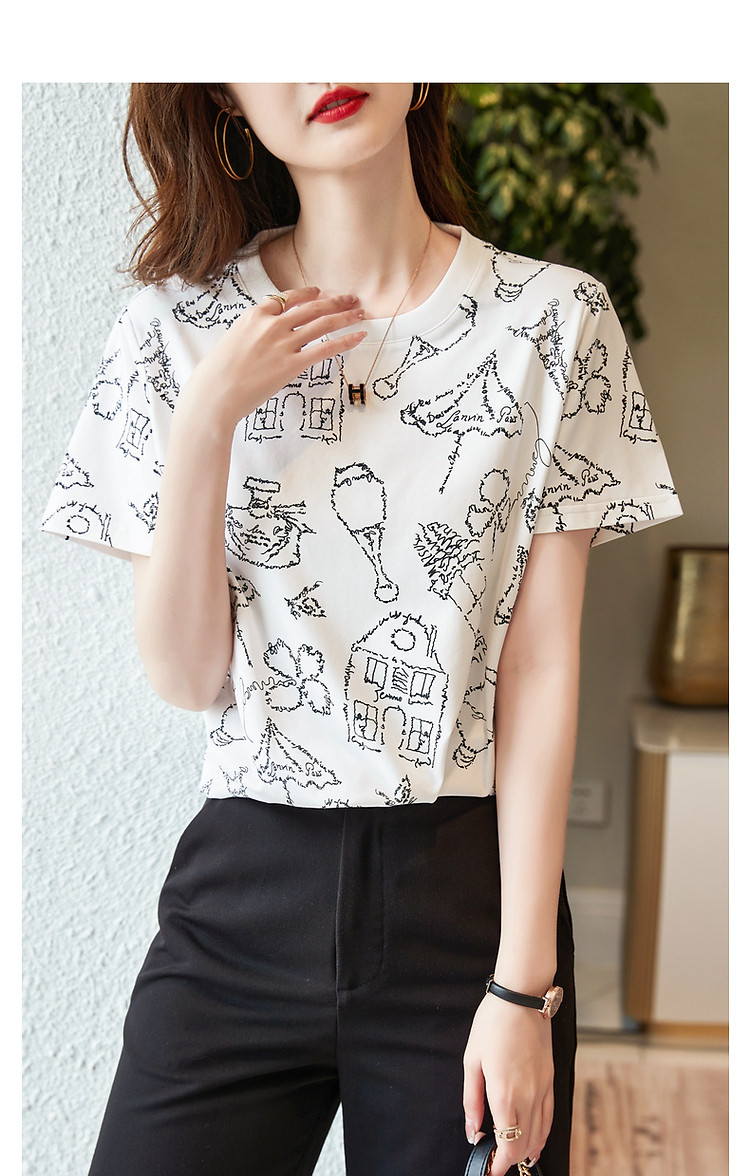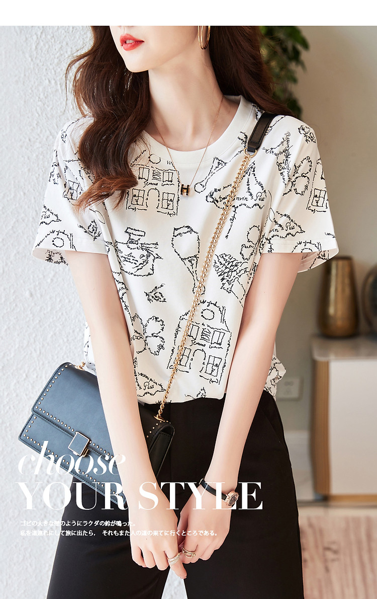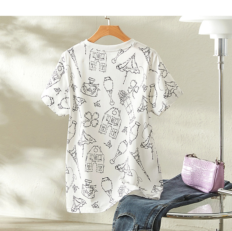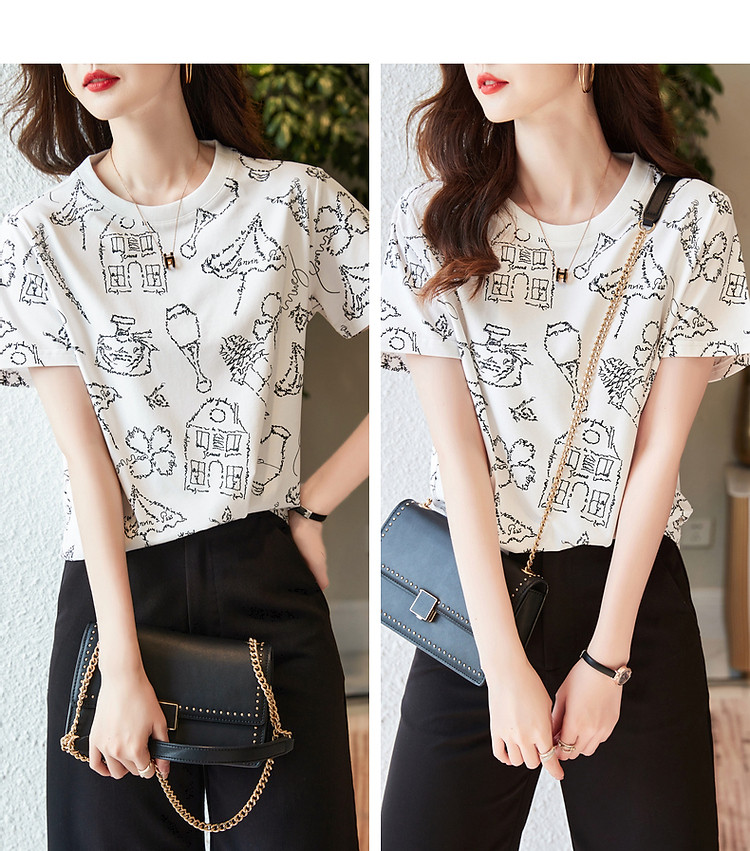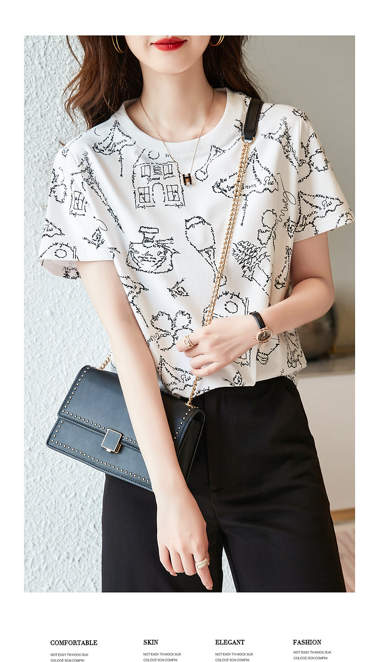 商品名称:【创意印花女式t恤】夏季圆领打底衫花伞香水印花短袖t恤女 571905