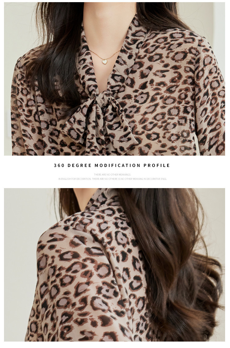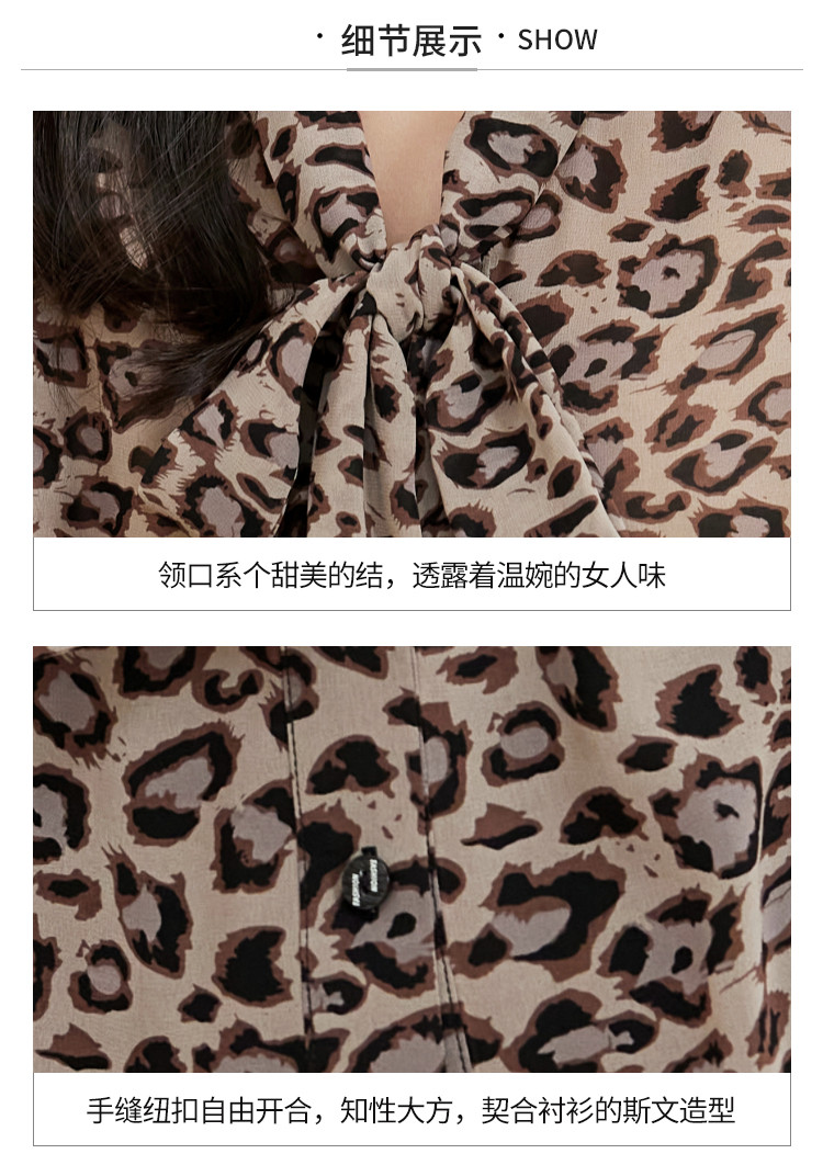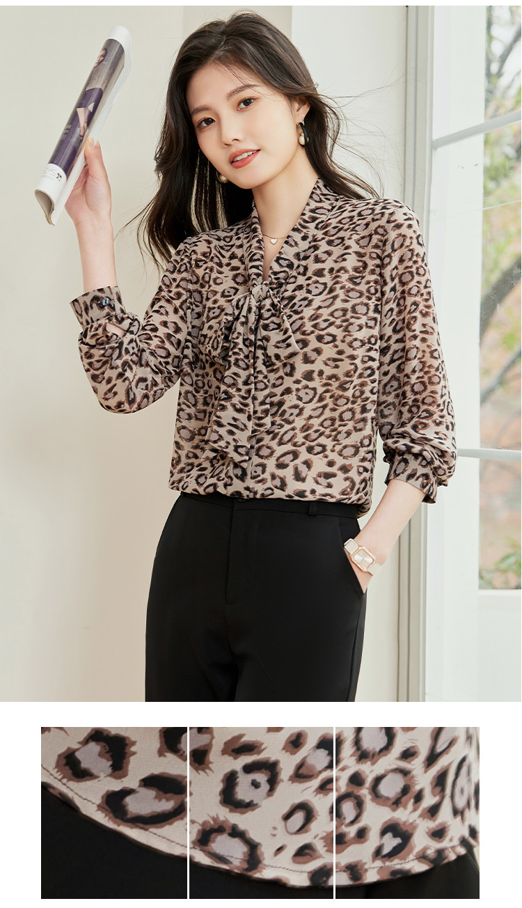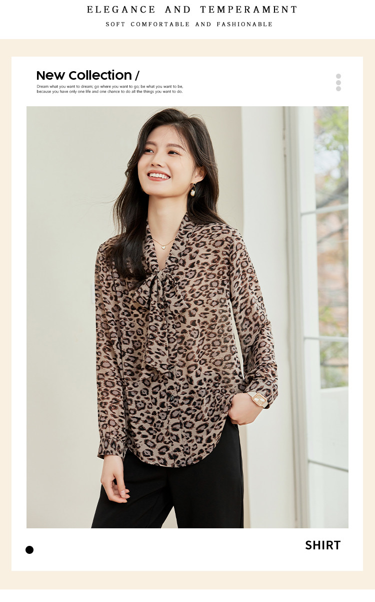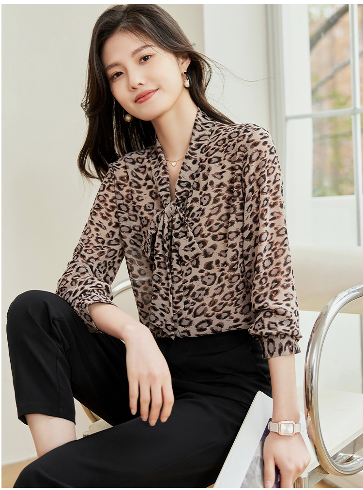 商品名称:春装女装时尚系带领豹纹印花女式宽松显瘦淑女气质衬衫 803928