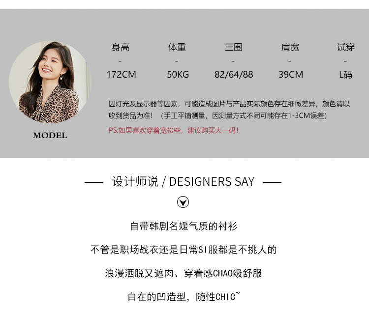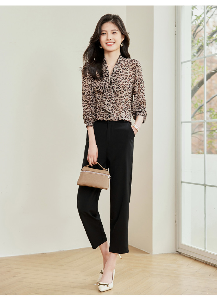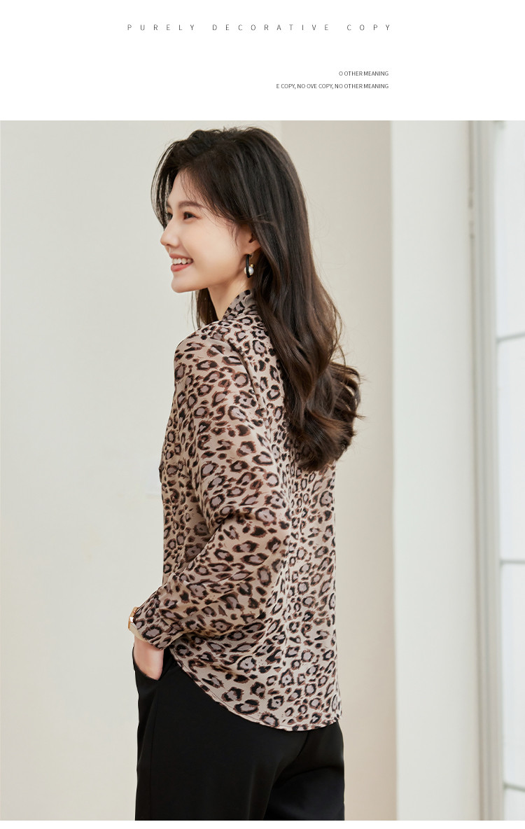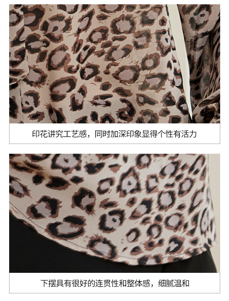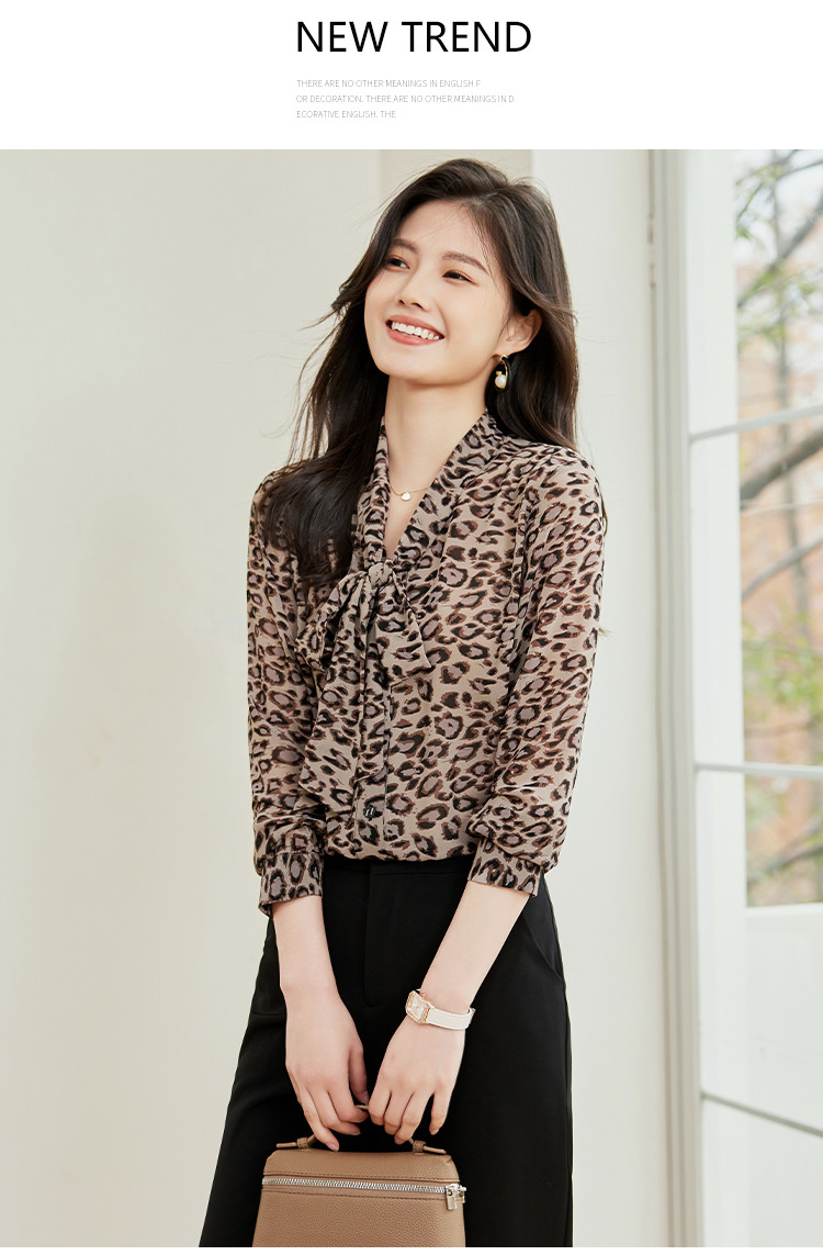 商品名称:春装女装时尚系带领豹纹印花女式宽松显瘦淑女气质衬衫 803928