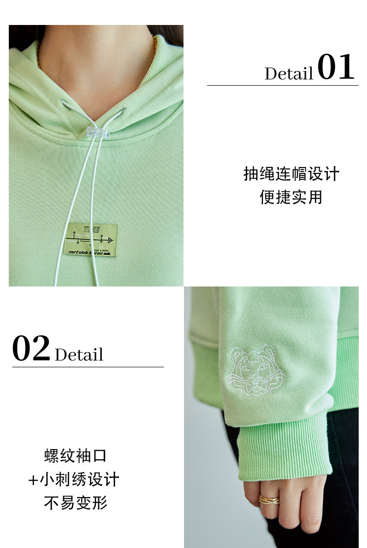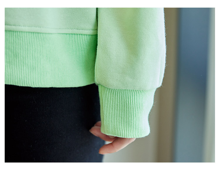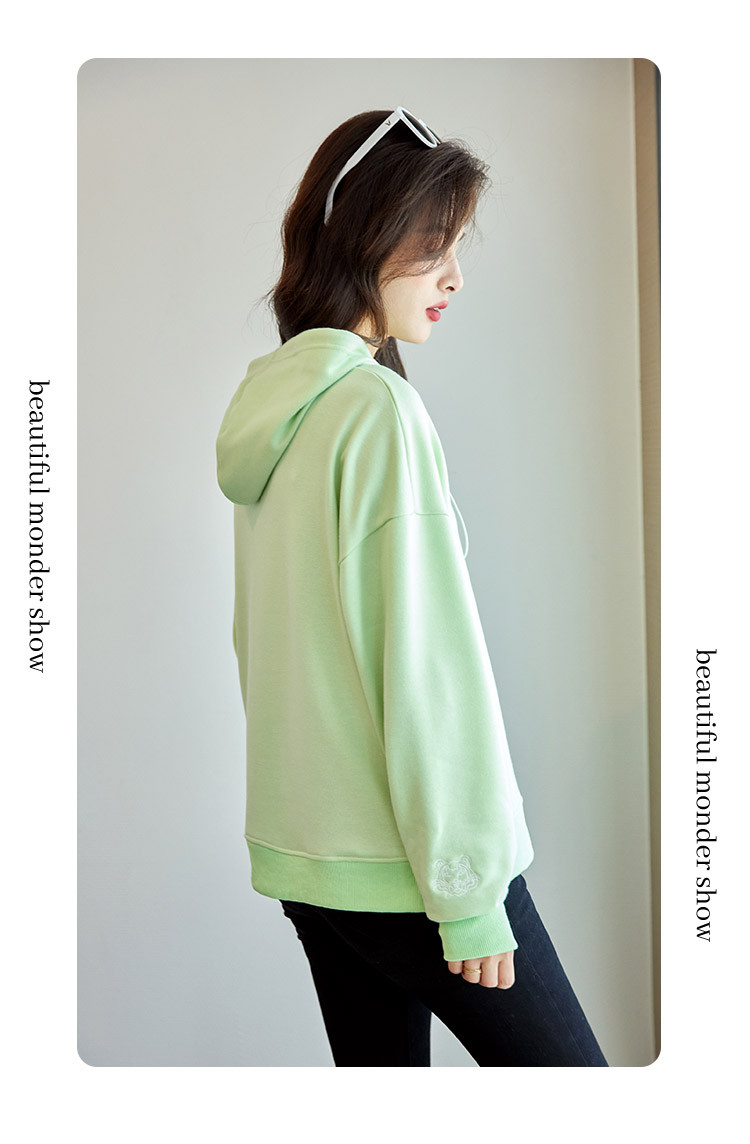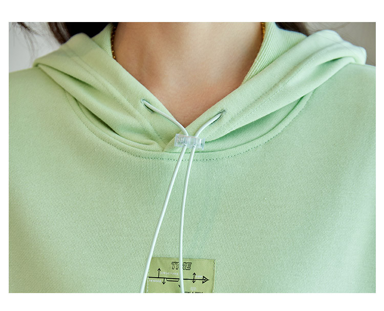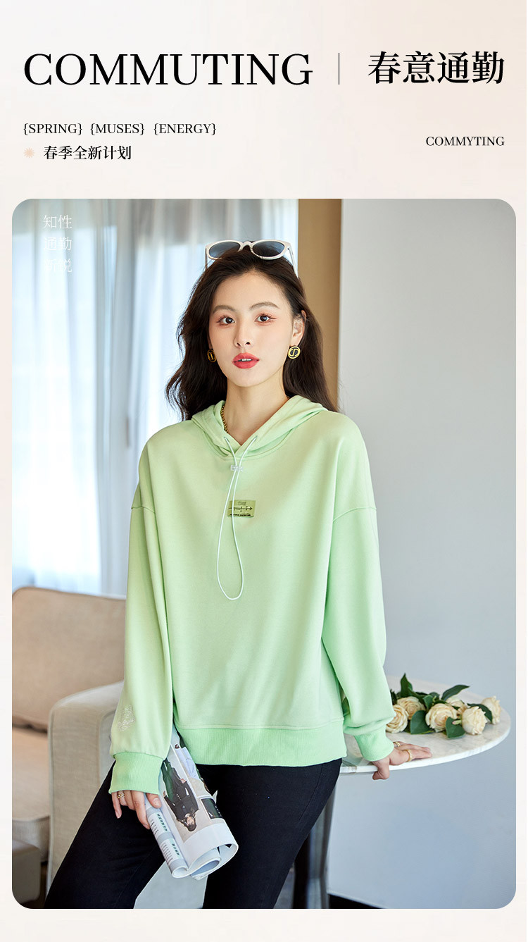 商品名称:连帽女式卫衣春季韩版经典纯色帽口收拉式设计休闲运动风上衣 391000