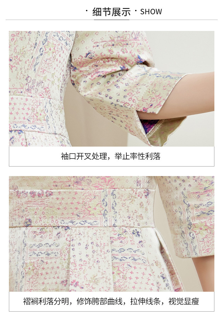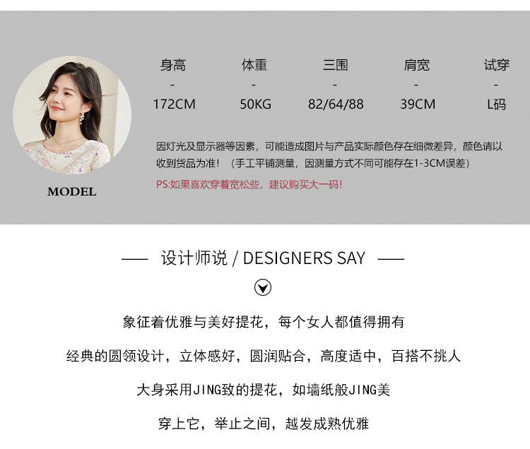 商品名称:春装女装清新浪漫提花圆领七分袖修身休闲显瘦连衣裙 441496