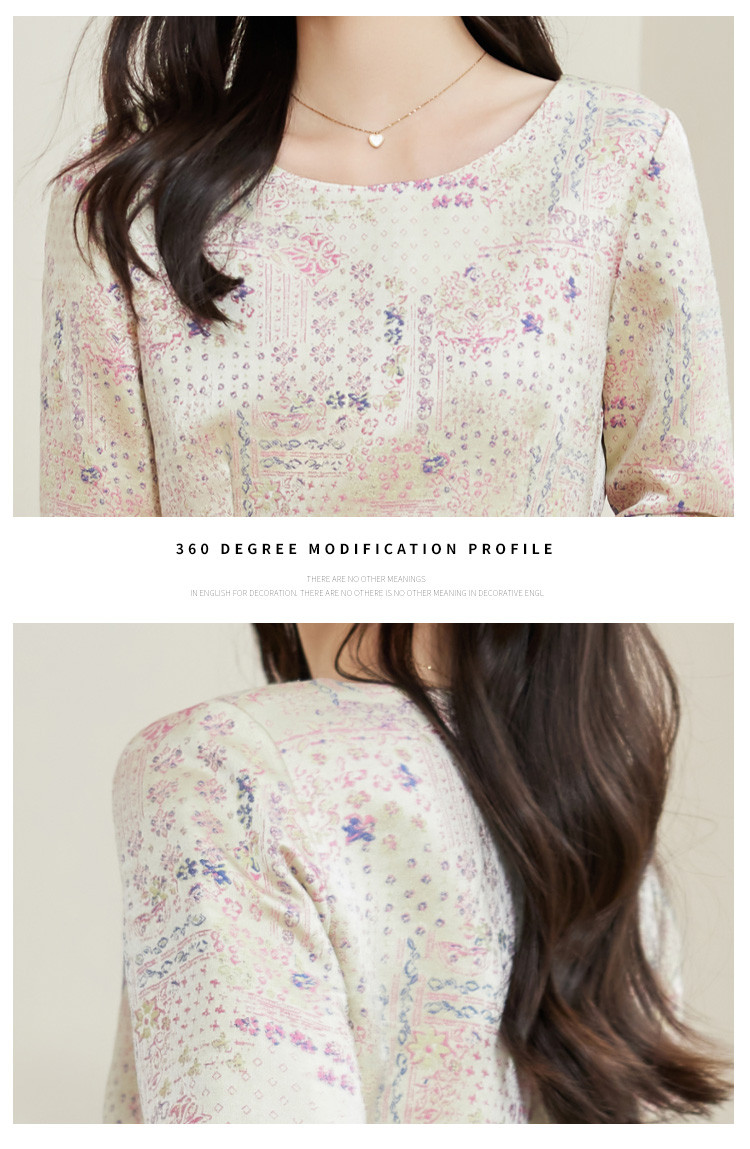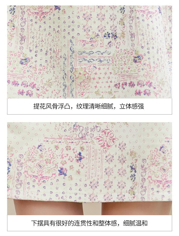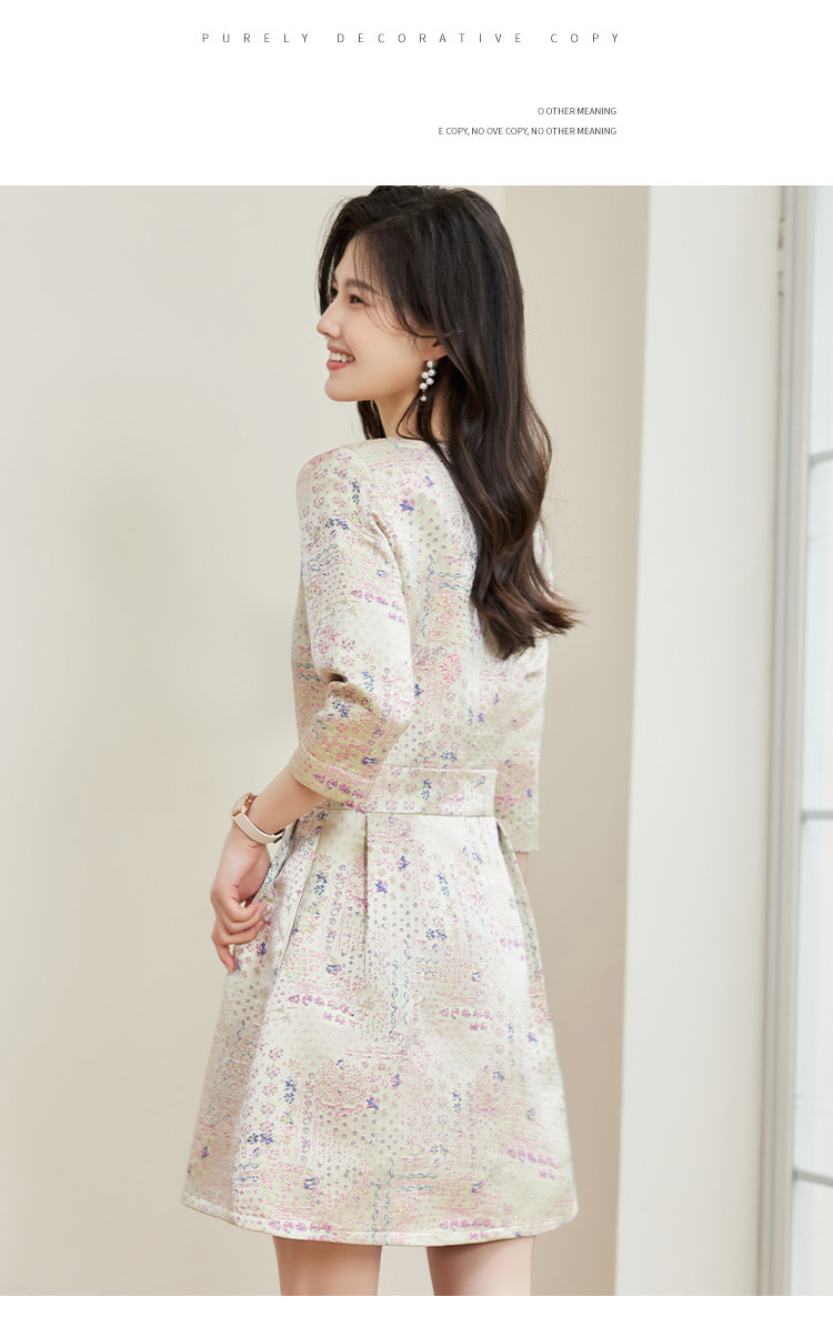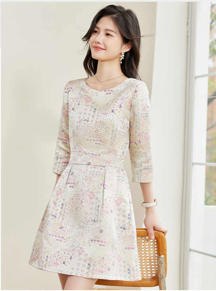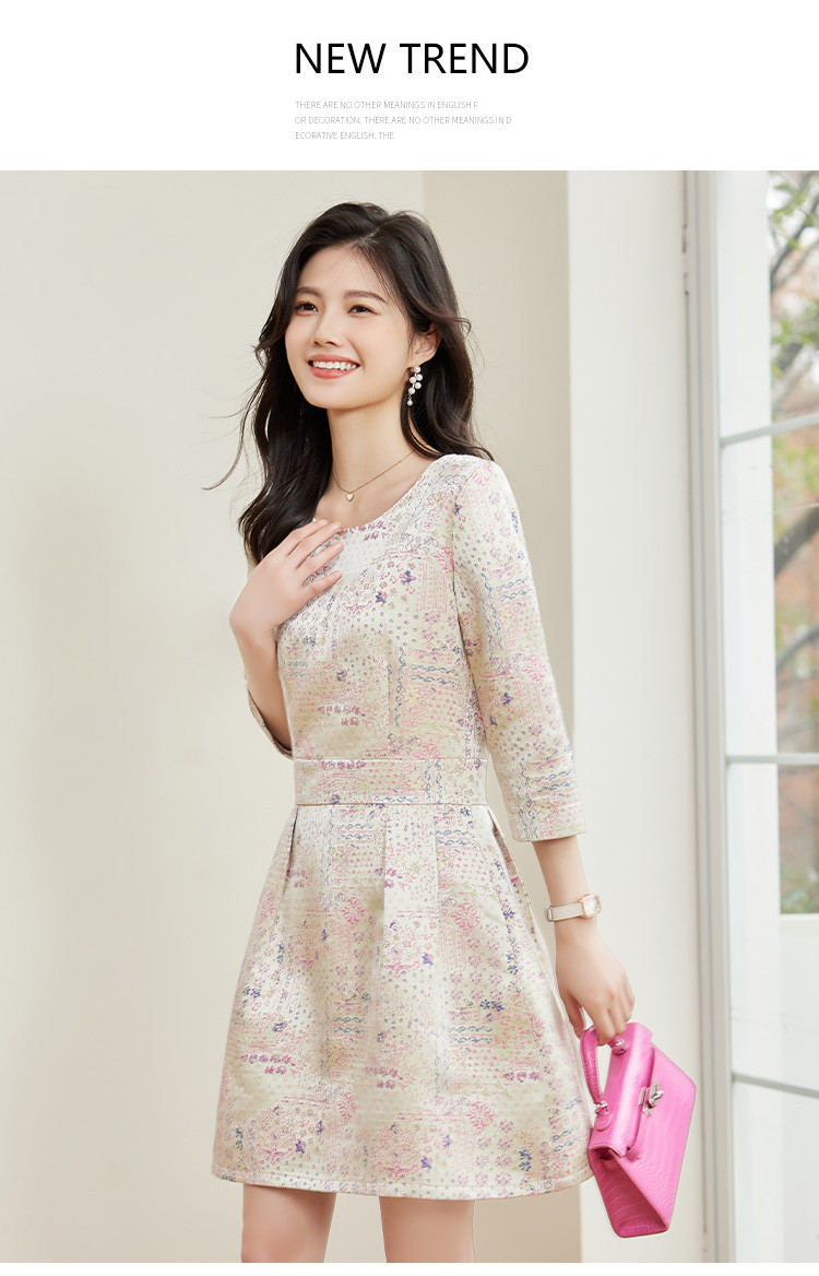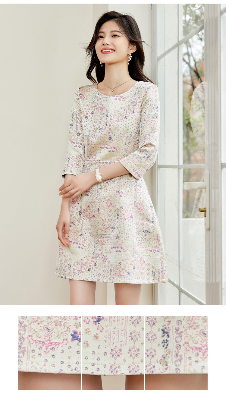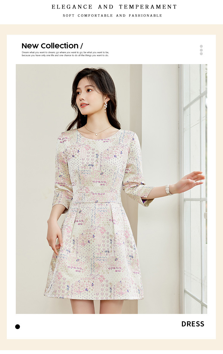 春装女装清新浪漫提花圆领七分袖修身休闲显瘦连衣裙 441496