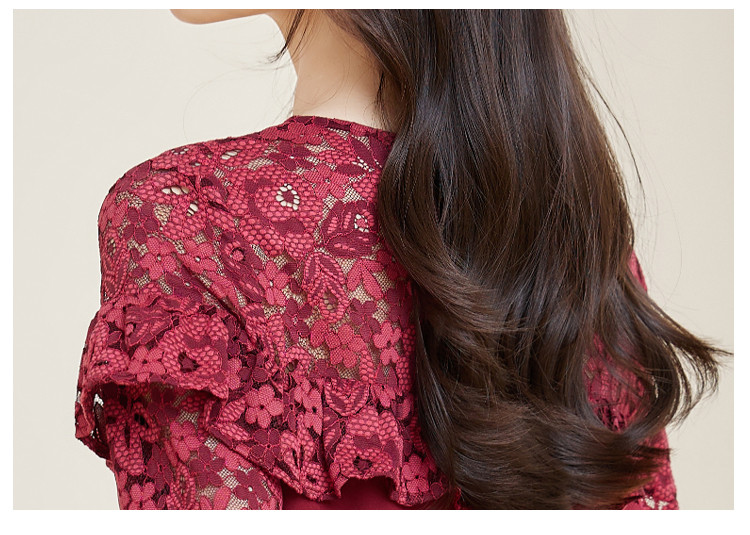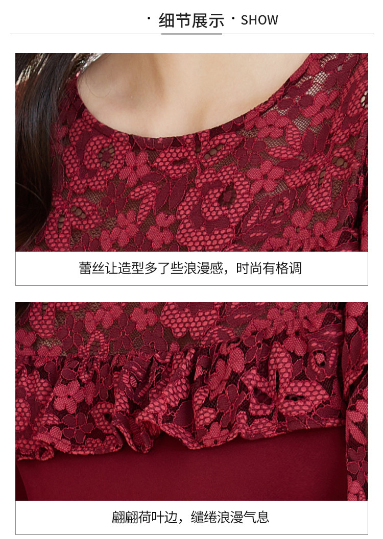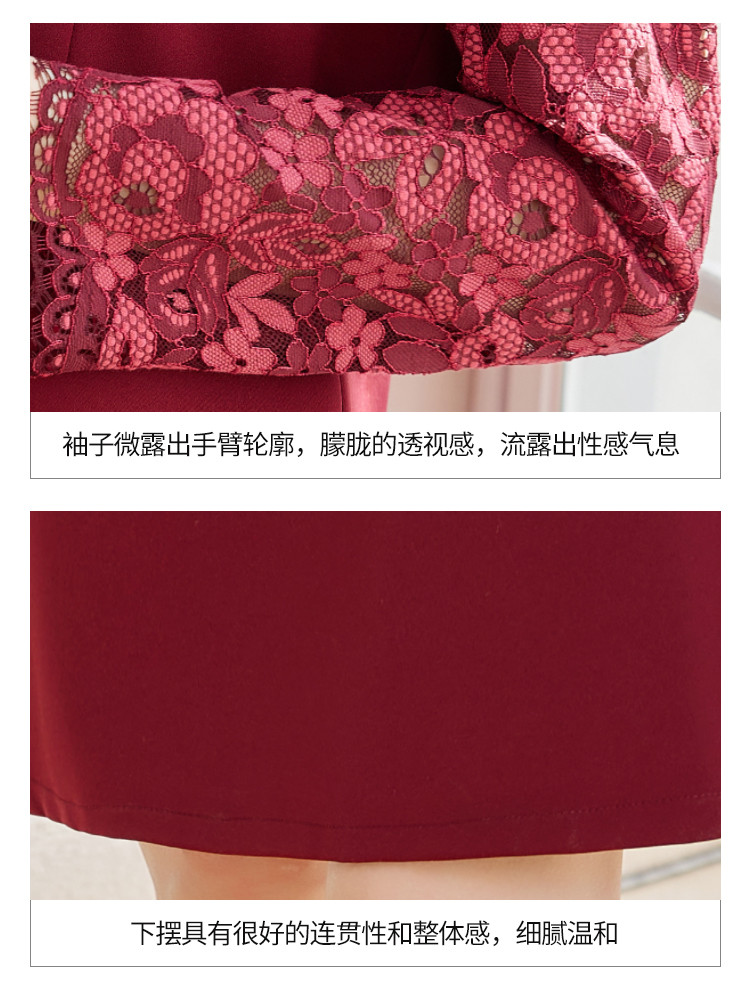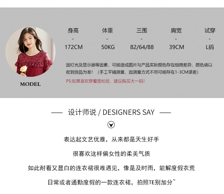 商品名称:春装女装时尚蕾丝拼接花边领纯色显瘦淑女气质轻奢优雅连衣裙 110168