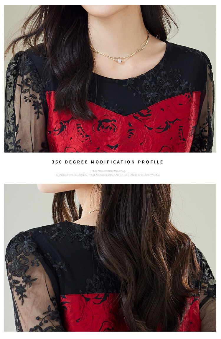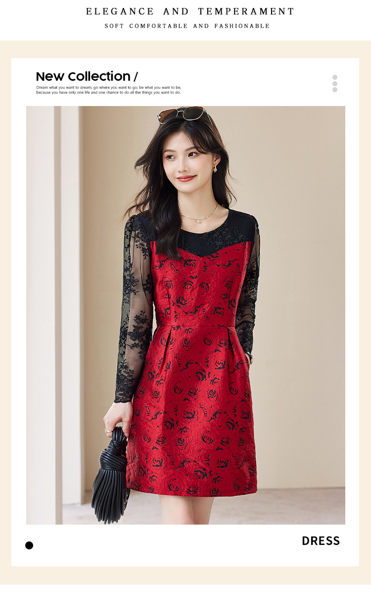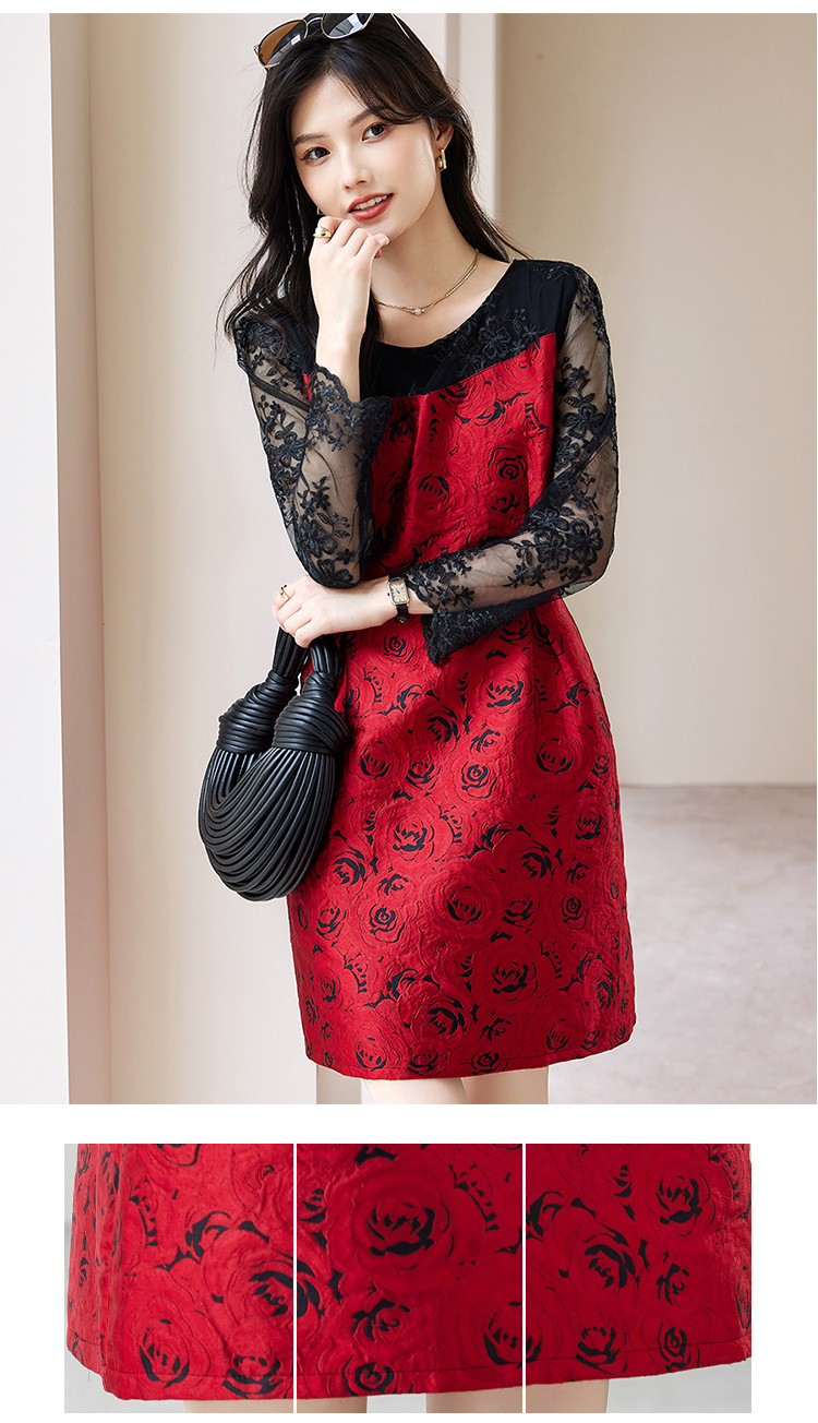 【春夏】女装淑女风优雅知性绣花拼接时尚休闲气质连衣裙 744408