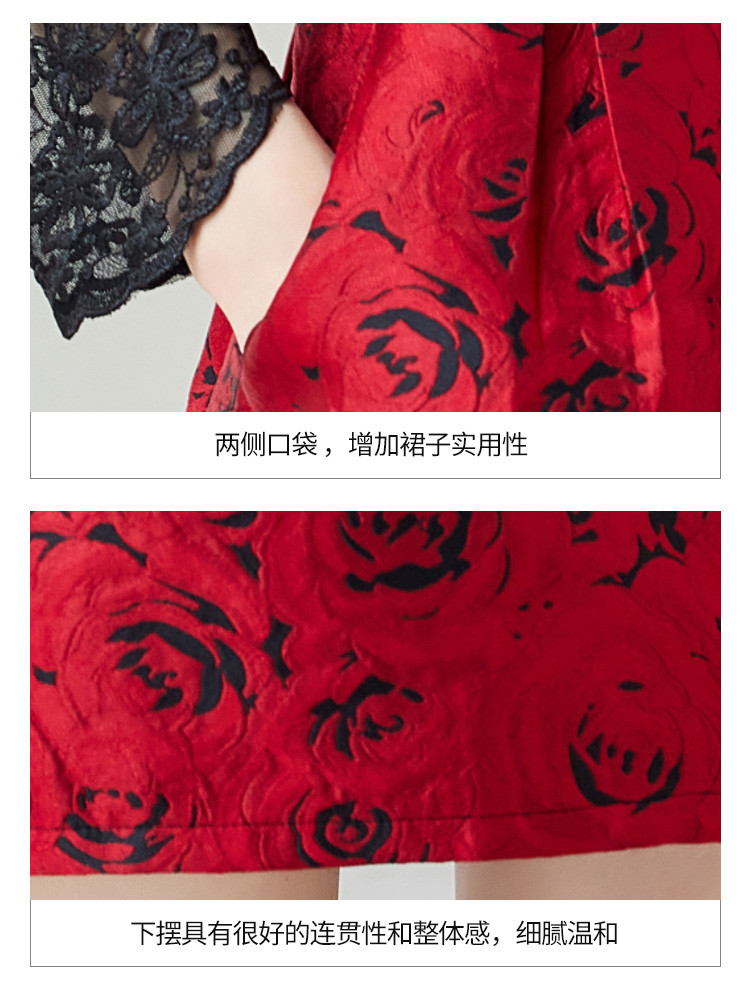 商品名称:【春夏】女装淑女风优雅知性绣花拼接时尚休闲气质连衣裙 744408