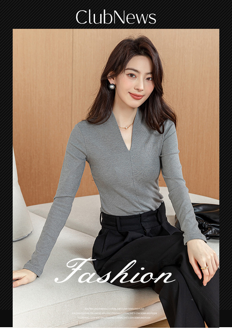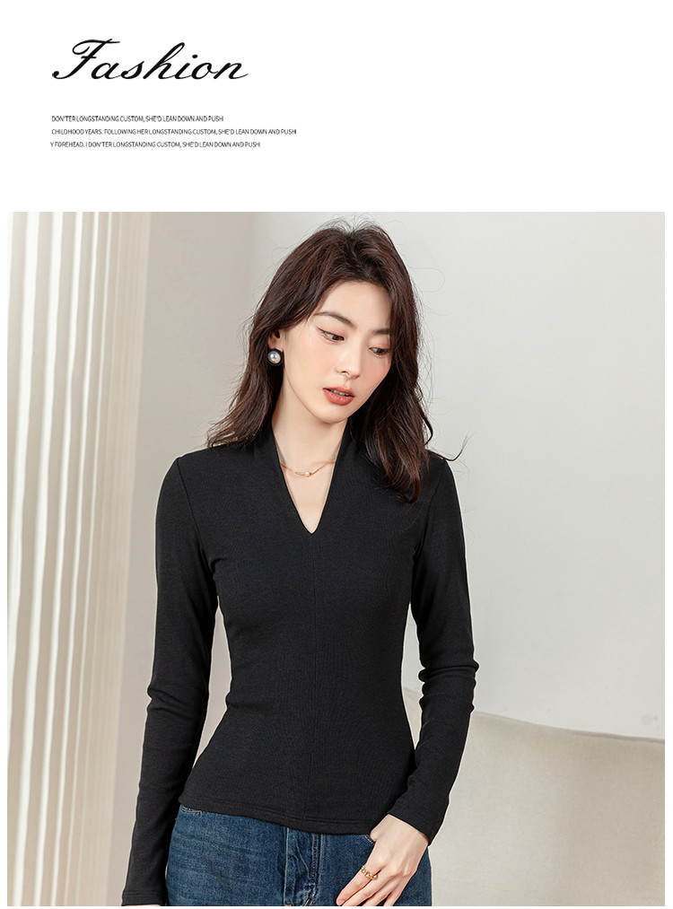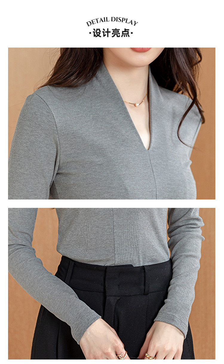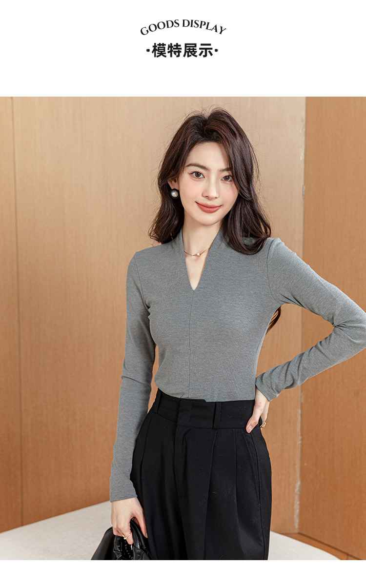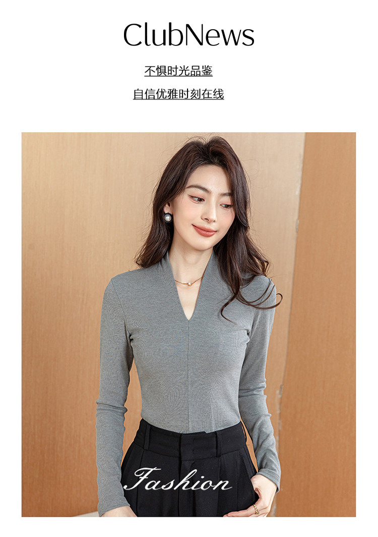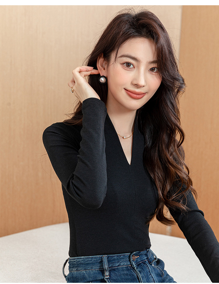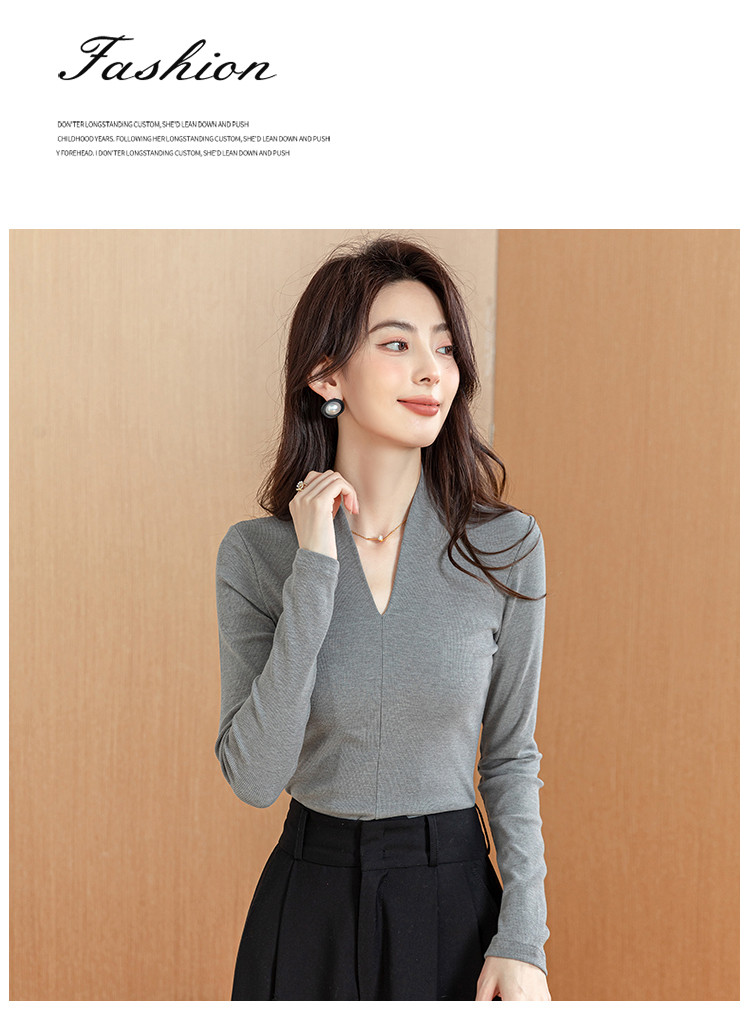 V领长袖针织衫女修身洋气打底衫内搭针织毛衣 464643