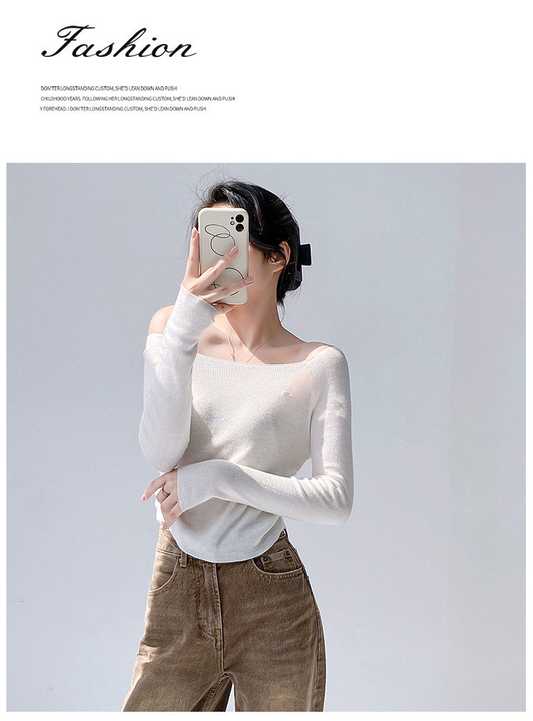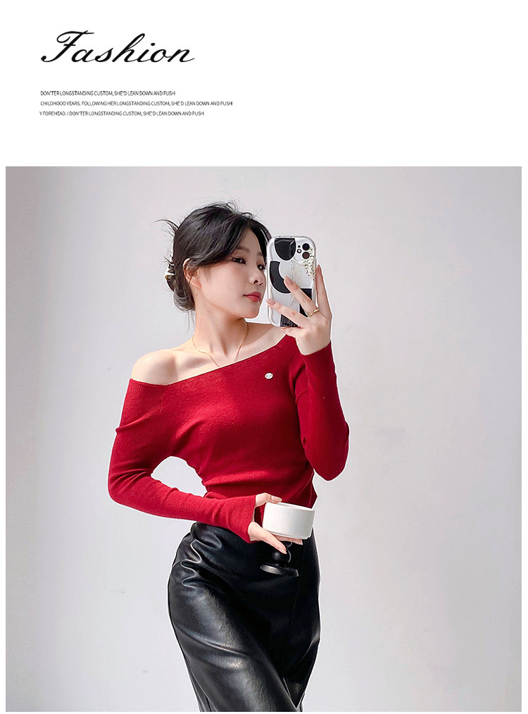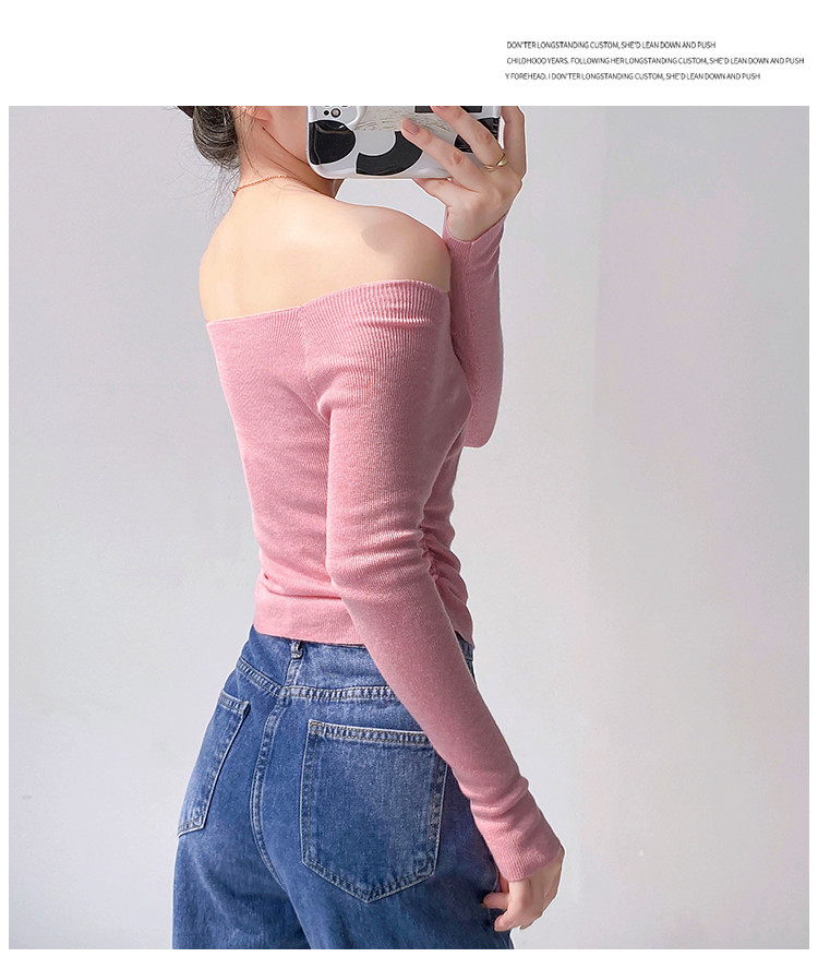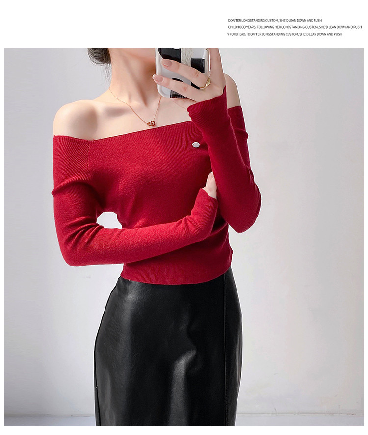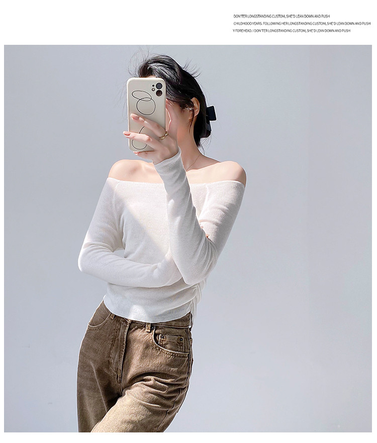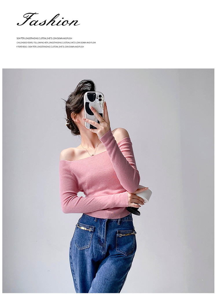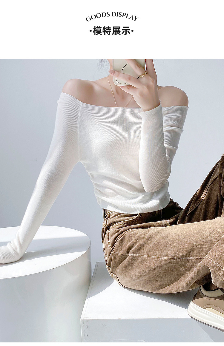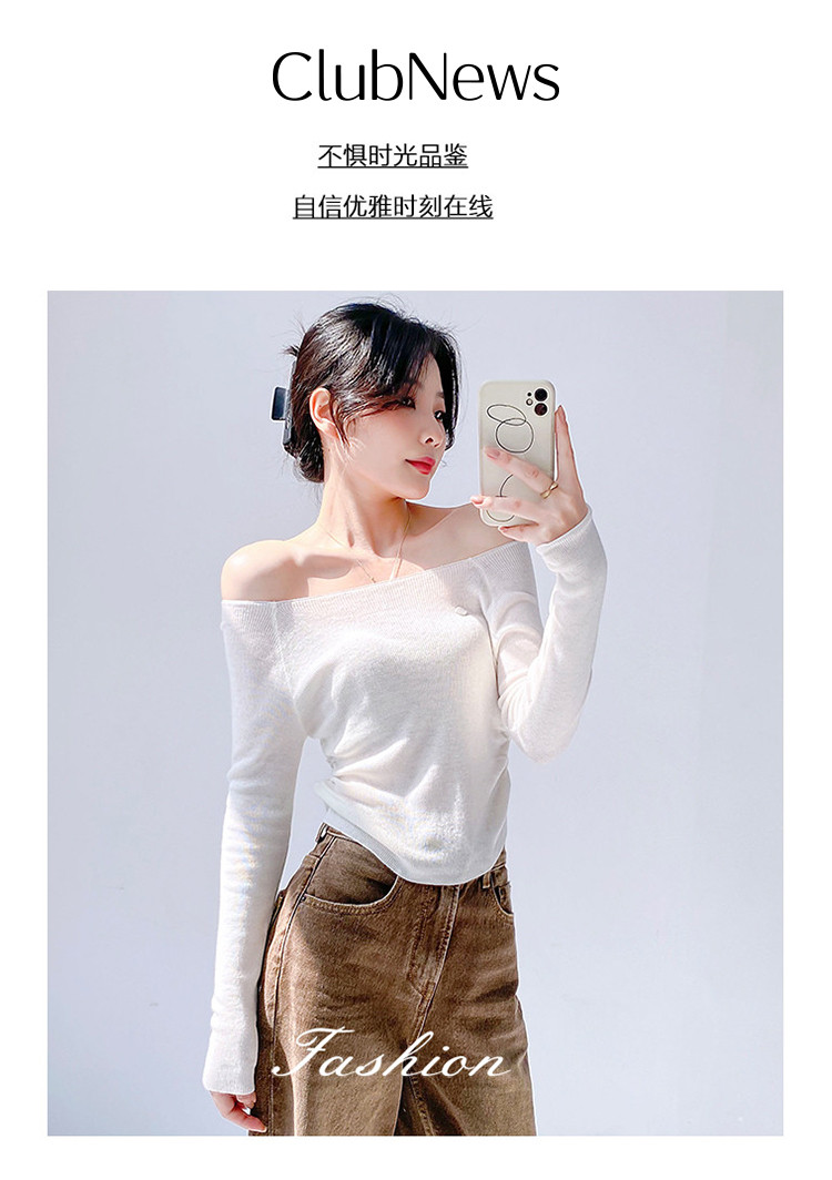 商品名称:一字领长袖针织衫纯欲风长袖针织上衣女 370435