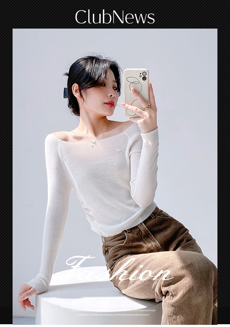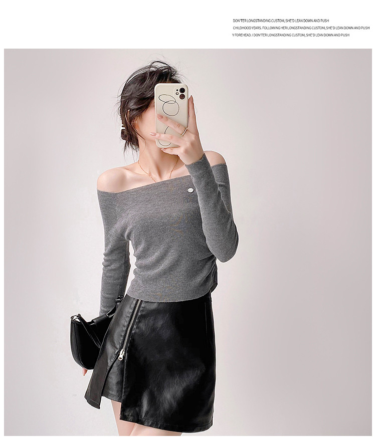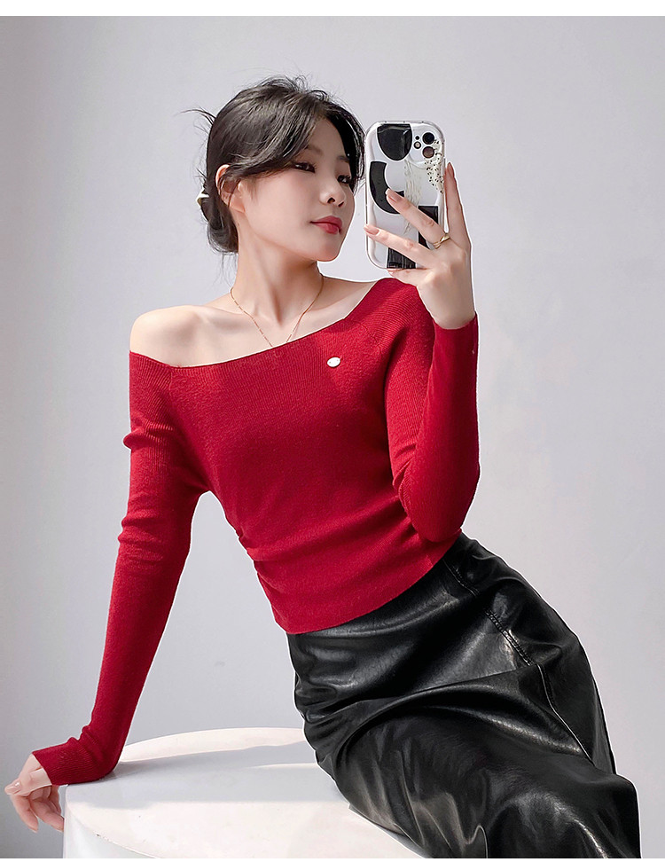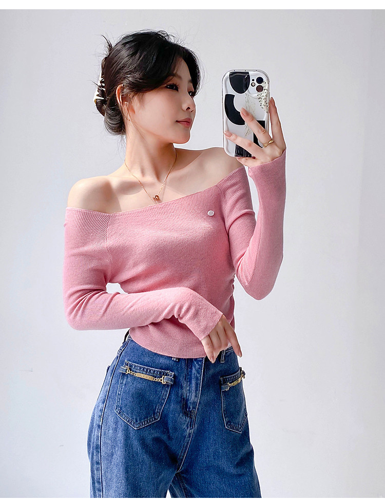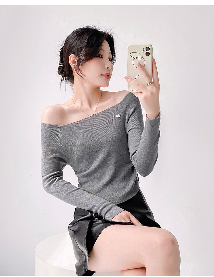 一字领长袖针织衫纯欲风长袖针织上衣女 370435