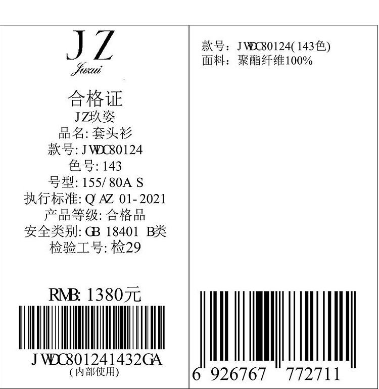 商品名称:商场同款JZ玖姿印花长袖上衣女装春季雪纺衫JWDC80124 487628
