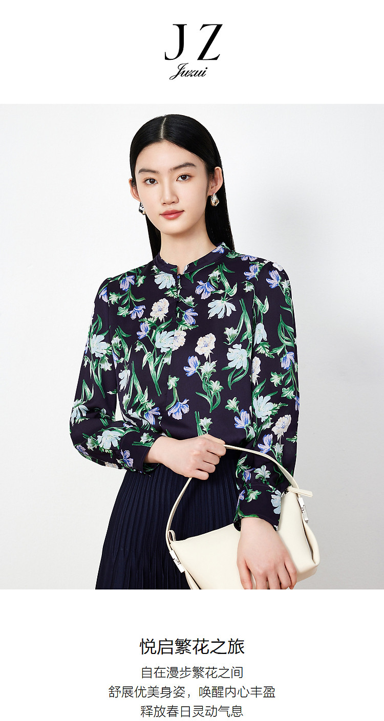 商场同款JZ玖姿印花长袖上衣女装春季雪纺衫JWDC80124 487628