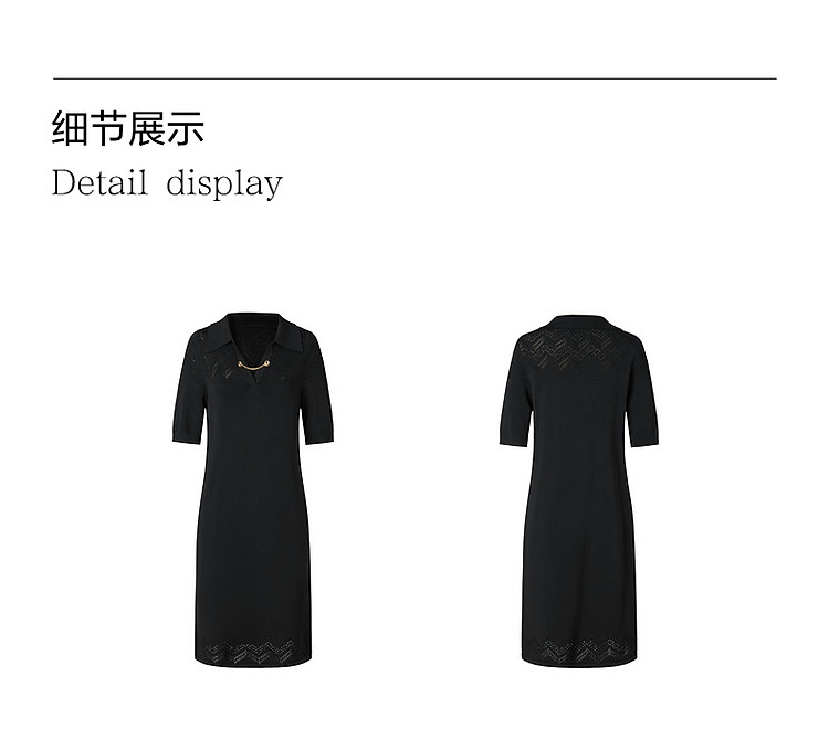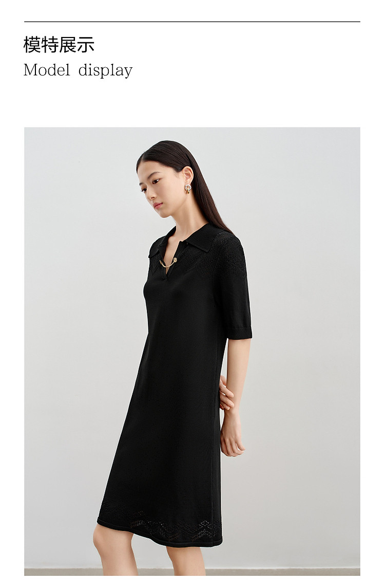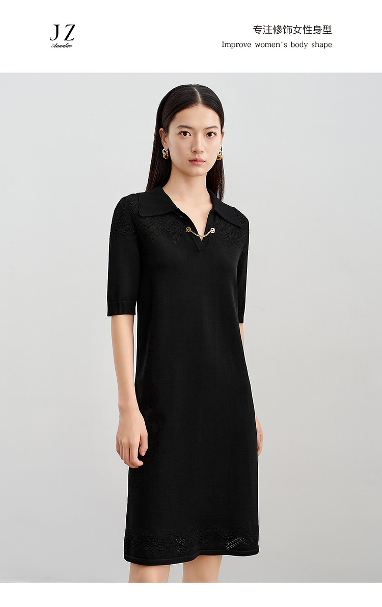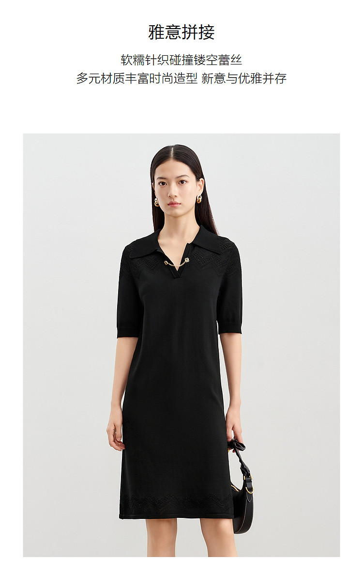 商品名称:玖姿旗下安娜蔻系列优雅蕾丝镂空针织连衣裙小黑裙女春季 995788
