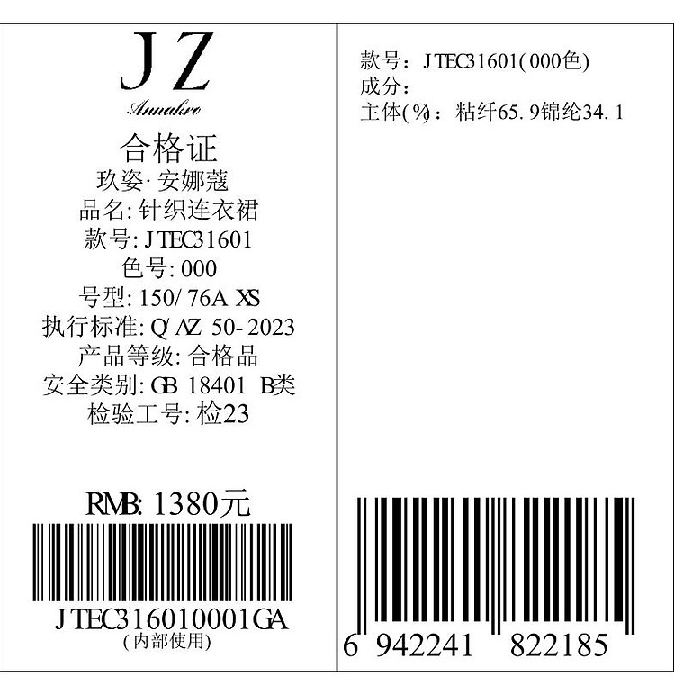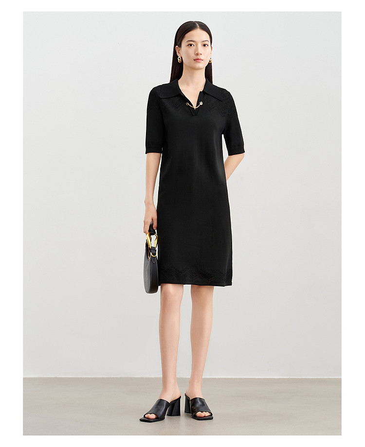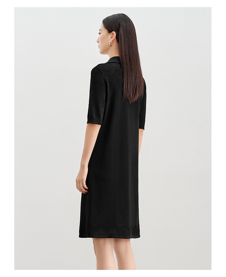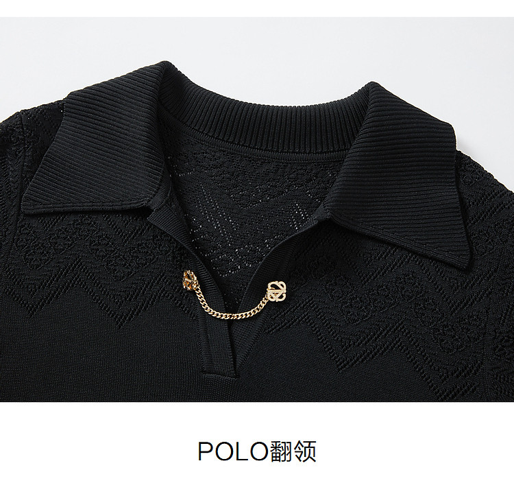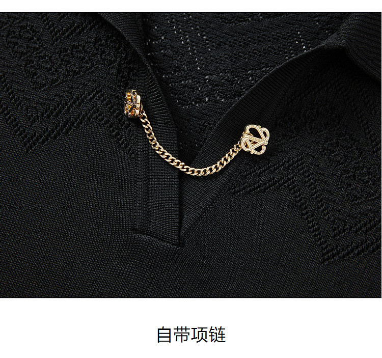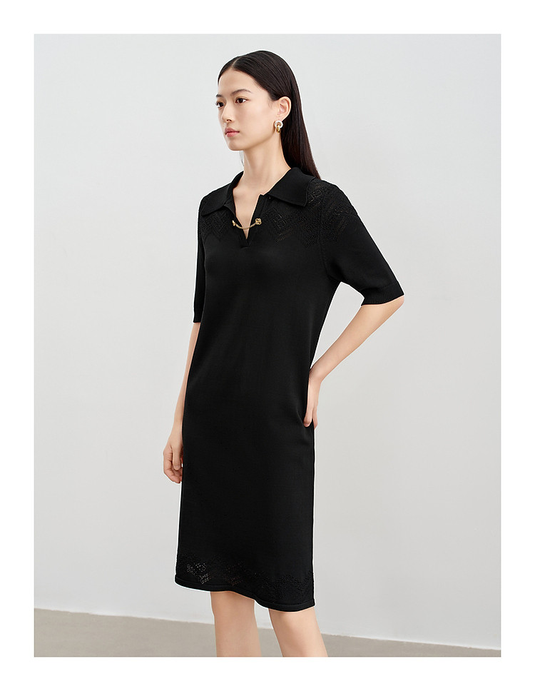 商品名称:玖姿旗下安娜蔻系列优雅蕾丝镂空针织连衣裙小黑裙女春季 995788