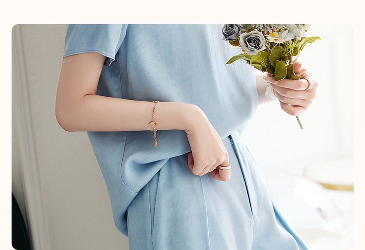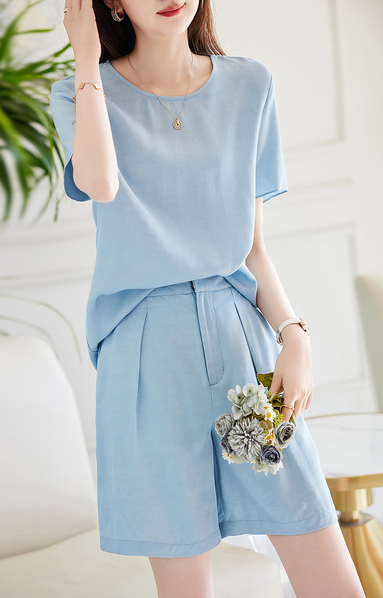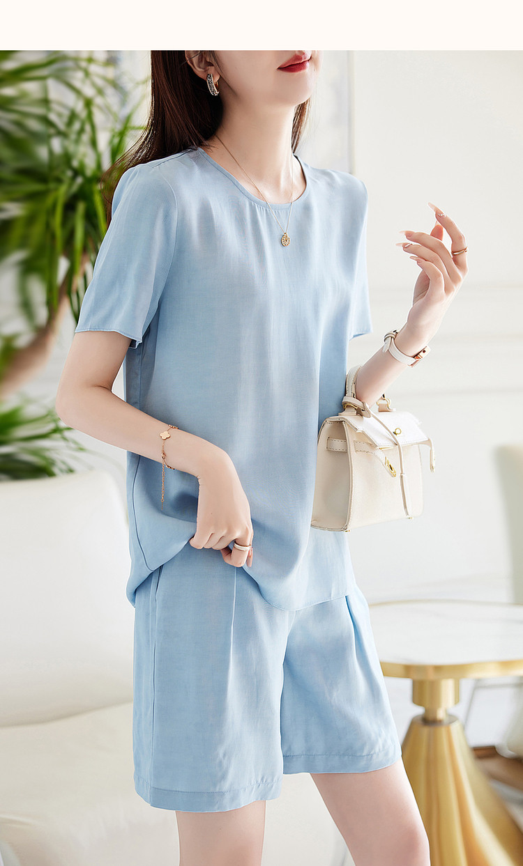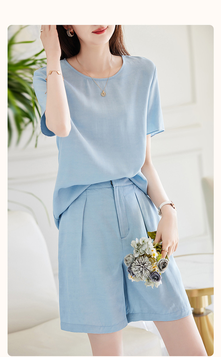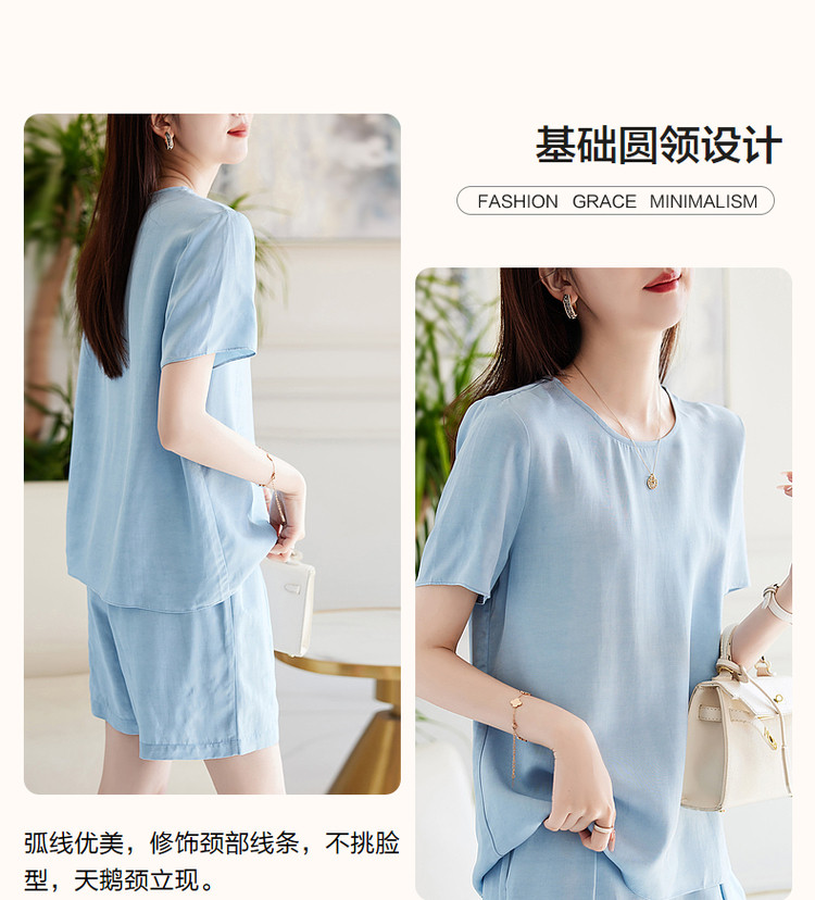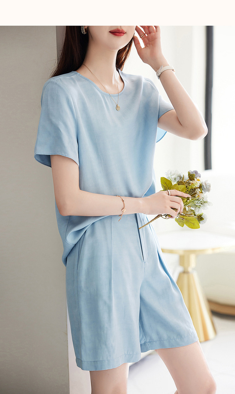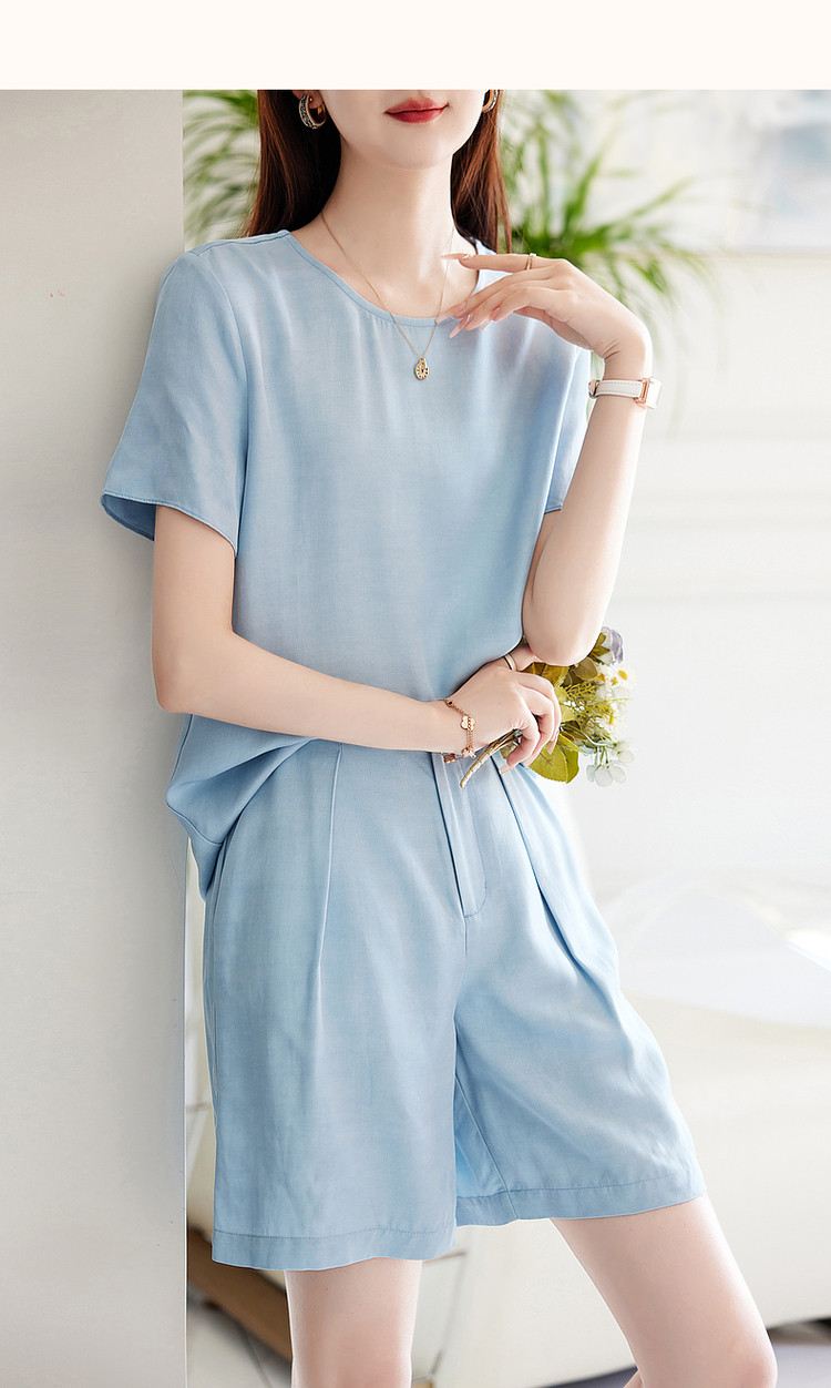 商品名称:【天丝麻休闲套装】夏季圆领短袖上衣短裤两件套 864193