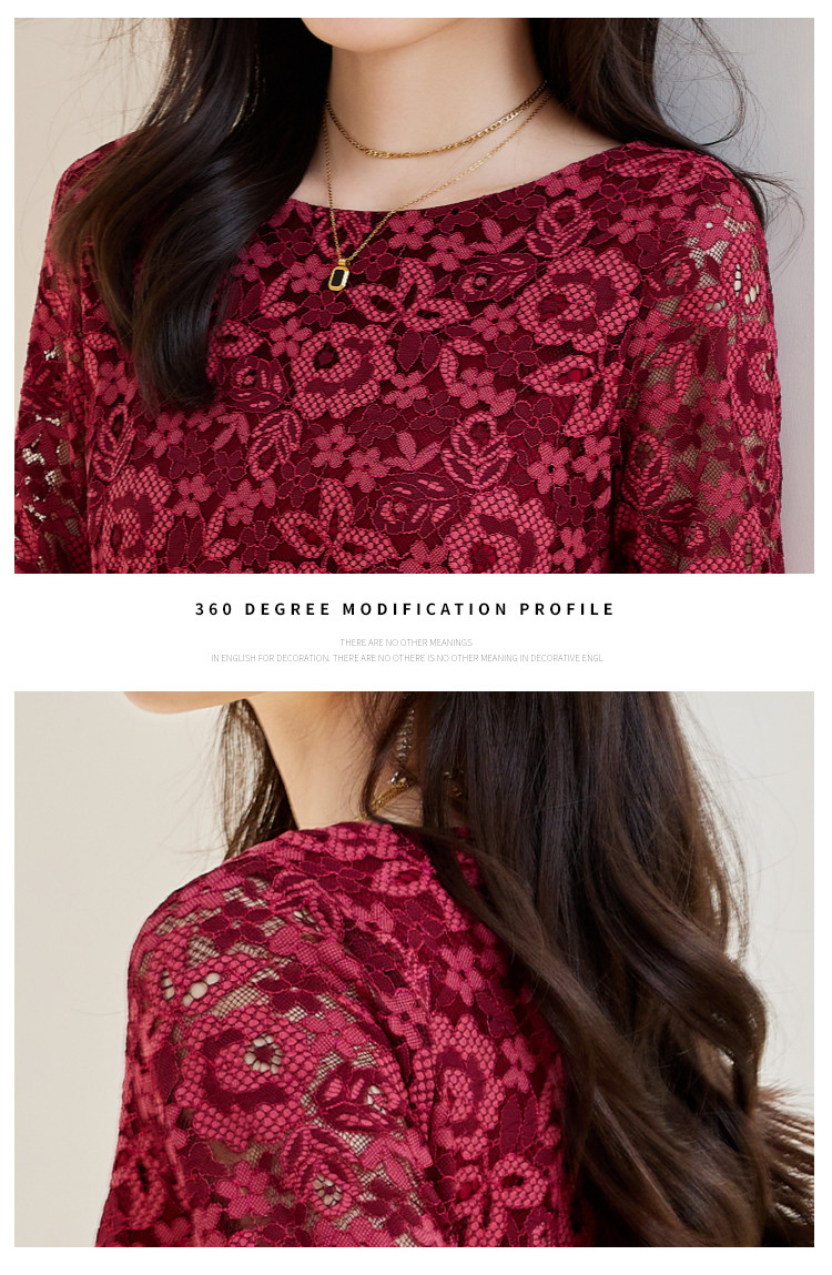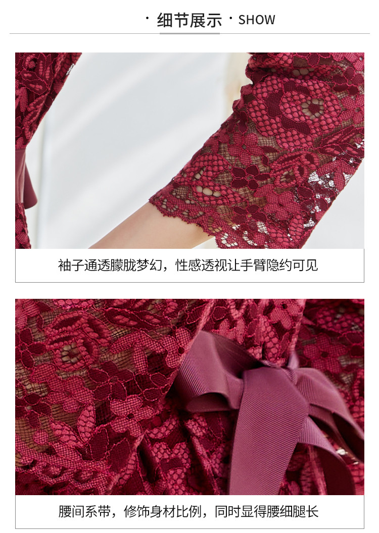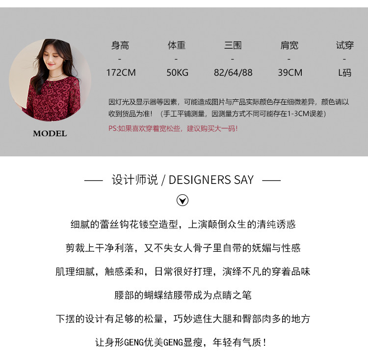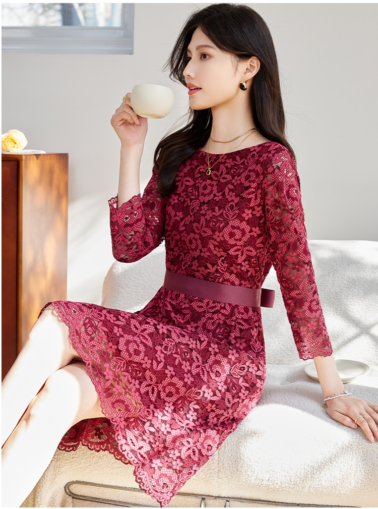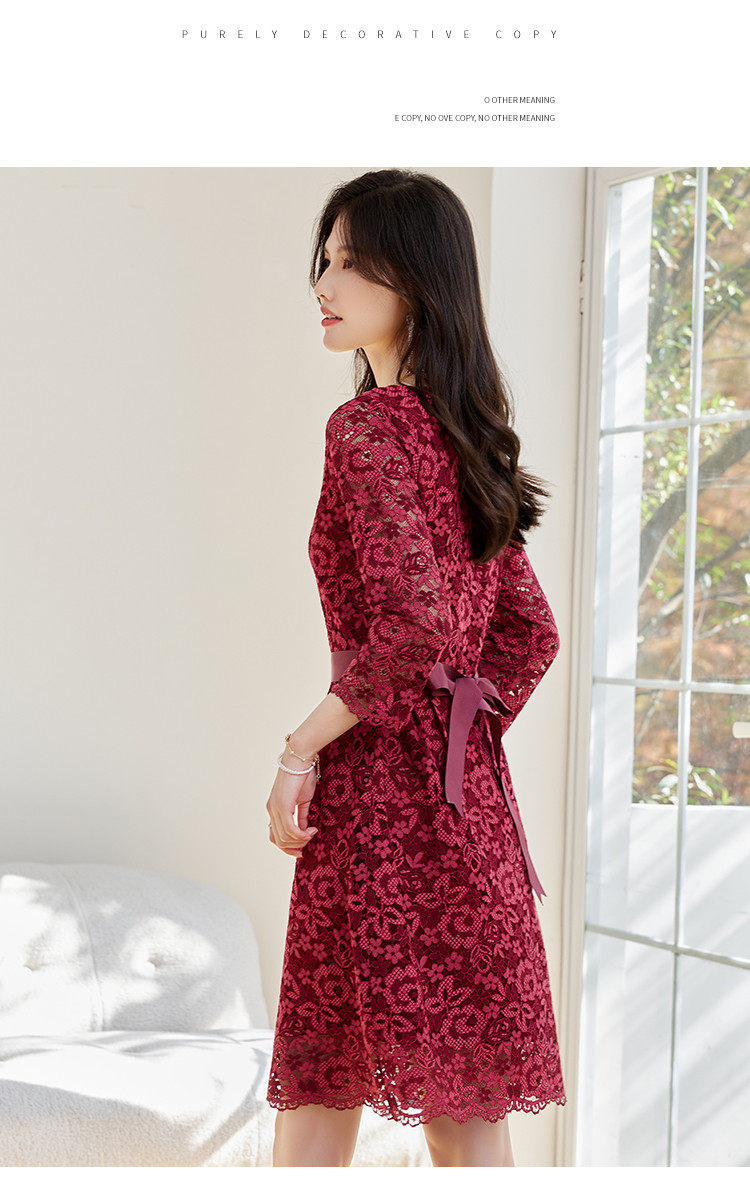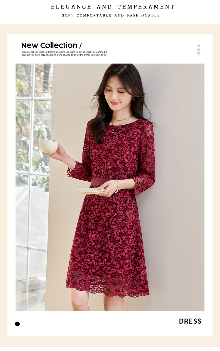 商品名称:春装女装时尚复古花型气质修身七分袖连衣裙 414744