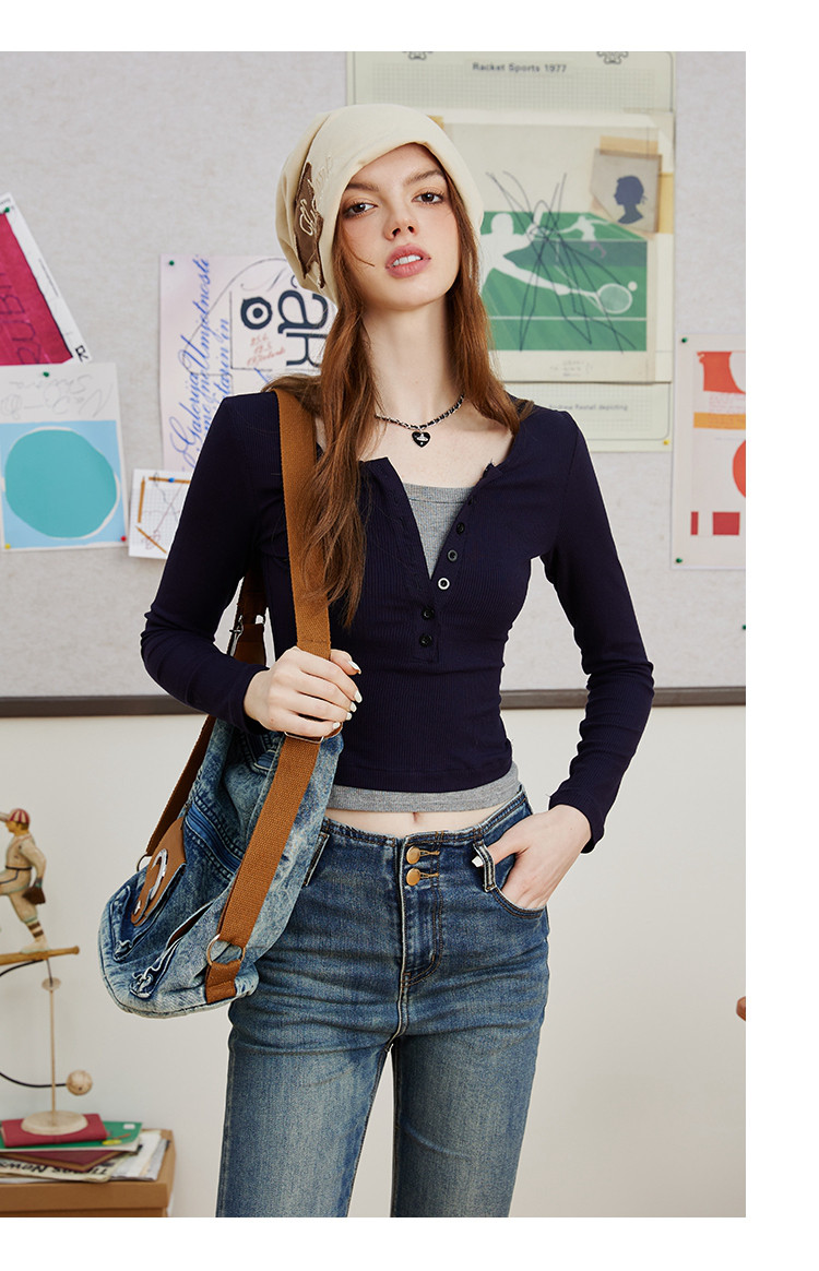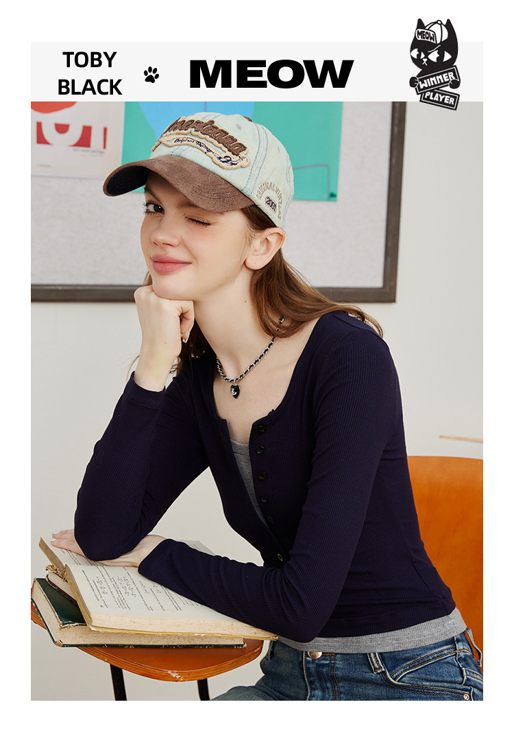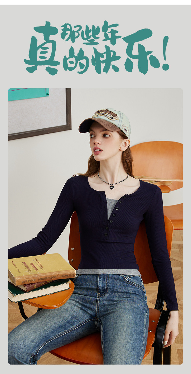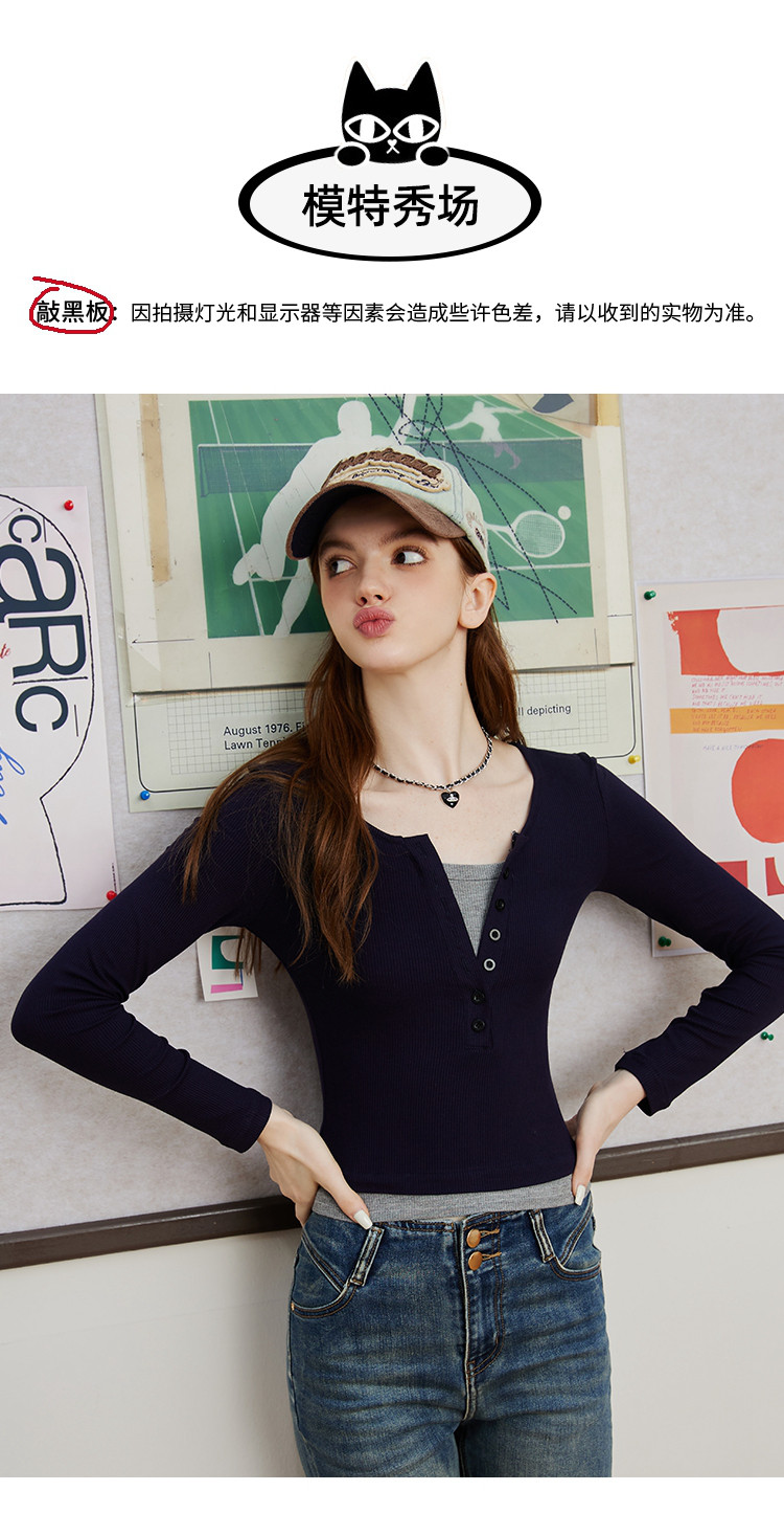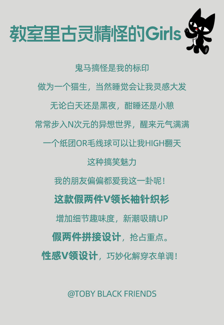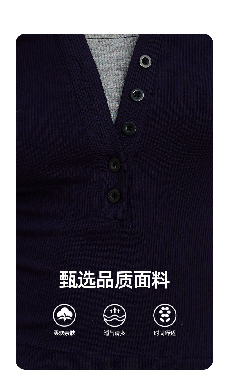 假两件修身撞色设计女式针织衫春季V领正肩长袖上衣 943069